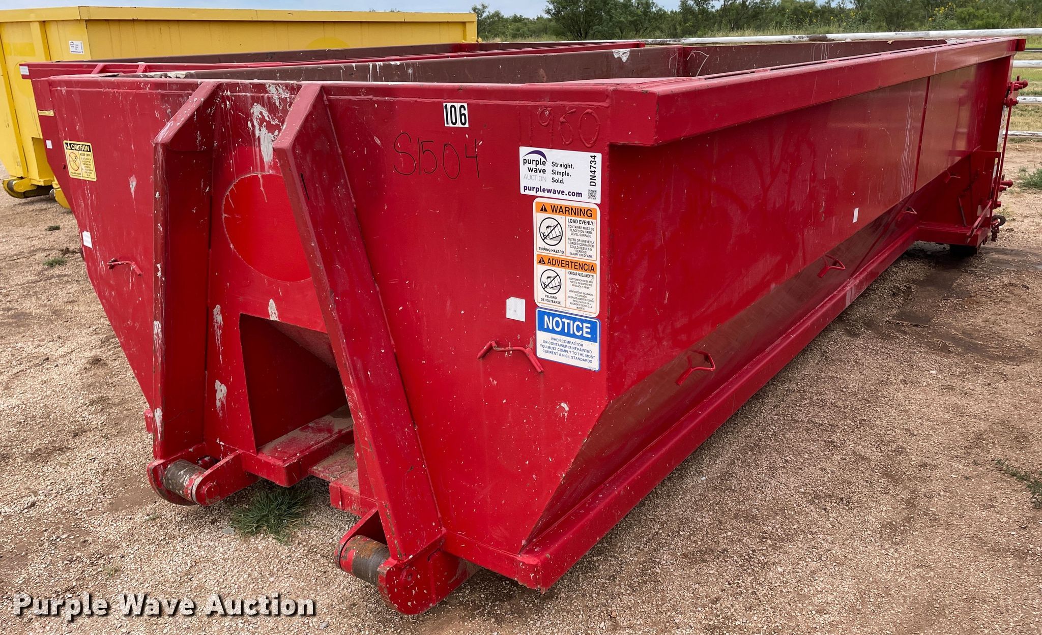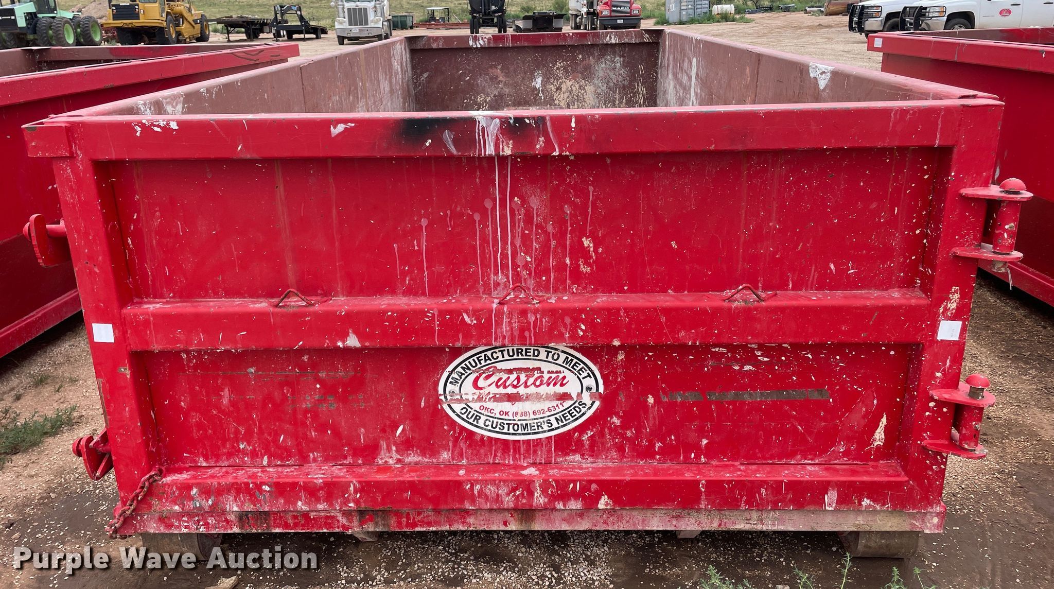 Purple Wave is selling a used Truck Part and Attach. in Texas. This item is a 2020 Custom Manufacturing, Inc. RO1615B roll-off container with the following: Dimensions: 16' L x 93" W x 44" H, Capacity: 15 cu. yd., Serial: 11960