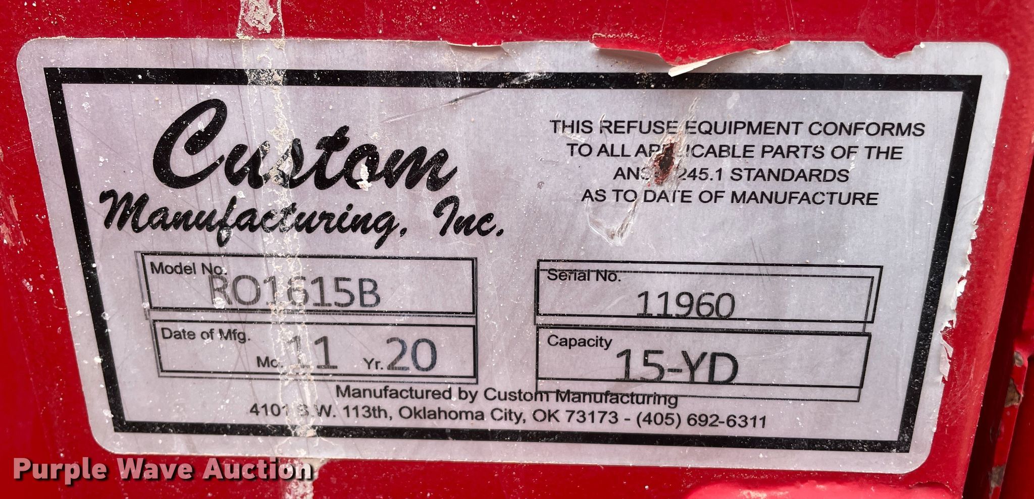 2020 Custom Manufacturing, Inc. RO1615B roll-off container