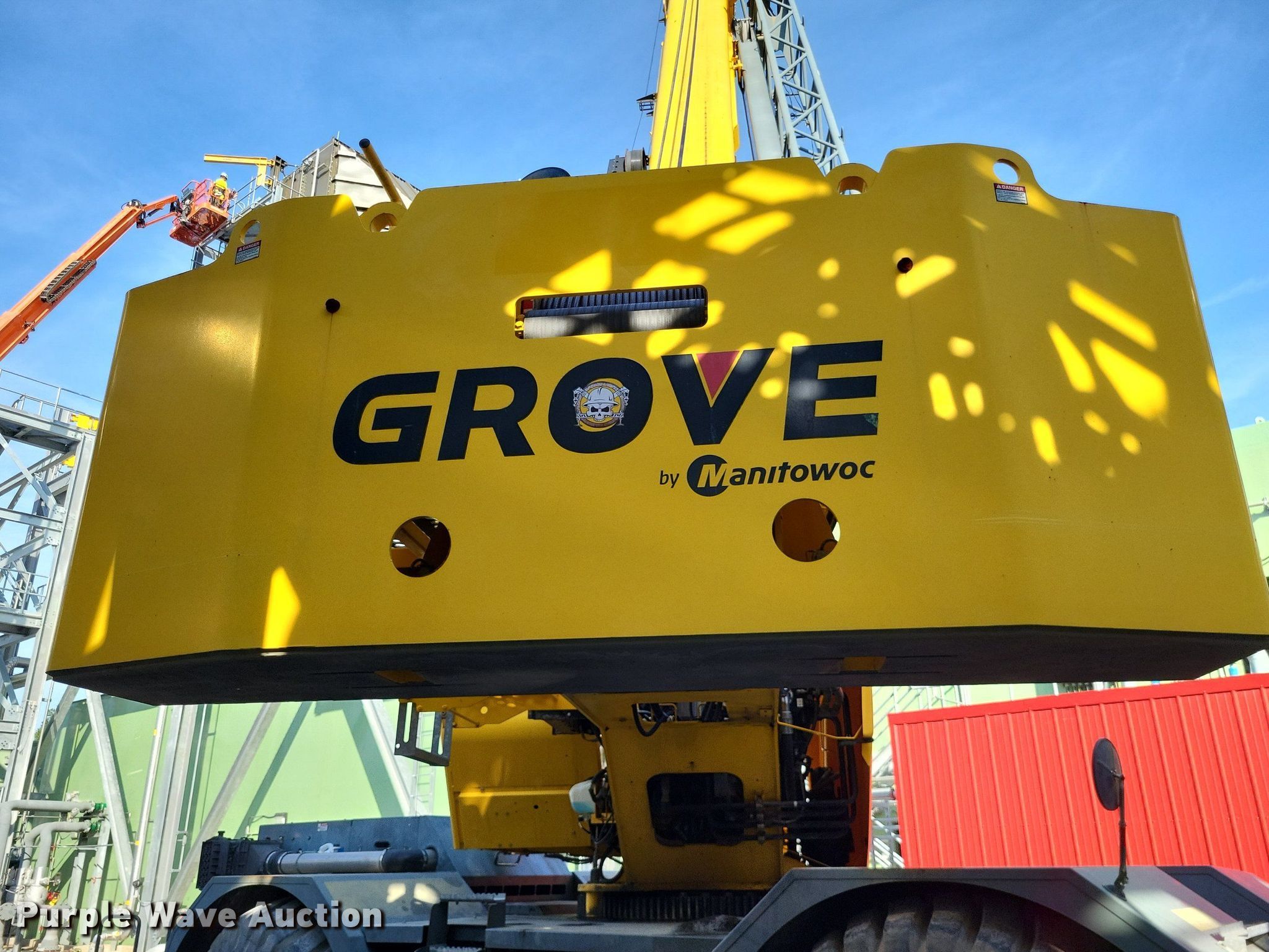 2013 Grove RT770E crane. Hours: 8,995 on meter, Miles or hours may vary, unit still in use, Serial: 234141. Engine Cummins QSB6.7L, Displacement: 6.7L, Cylinders: 6, Fuel type: Diesel. Transmission Automatic. Chassis Four wheel drive, Brakes: Hydraulic. Operators station Enclosed cab, AC, Heat, Crane controls: Stick, Upper interior Load monitor Hirschmann.. Features Boom Telescopic, Maximum boom length: 137.7' Sections: 4, Maximum lift capacity: 140,000 lbs, Maximum lift height: 205', Jib: 56', Stabilizers: 4, Boom controls In-cab, Winches: 2, Removable counter weight, Crane block Sheaves: 4, Crane ball & hook, Certification valid through: 06/2024, Manuals, Lift chart. Tires Size: 29.5-25. Black & Veatch Corp.. 15290 U.S. 43. Bucks, AL 36512