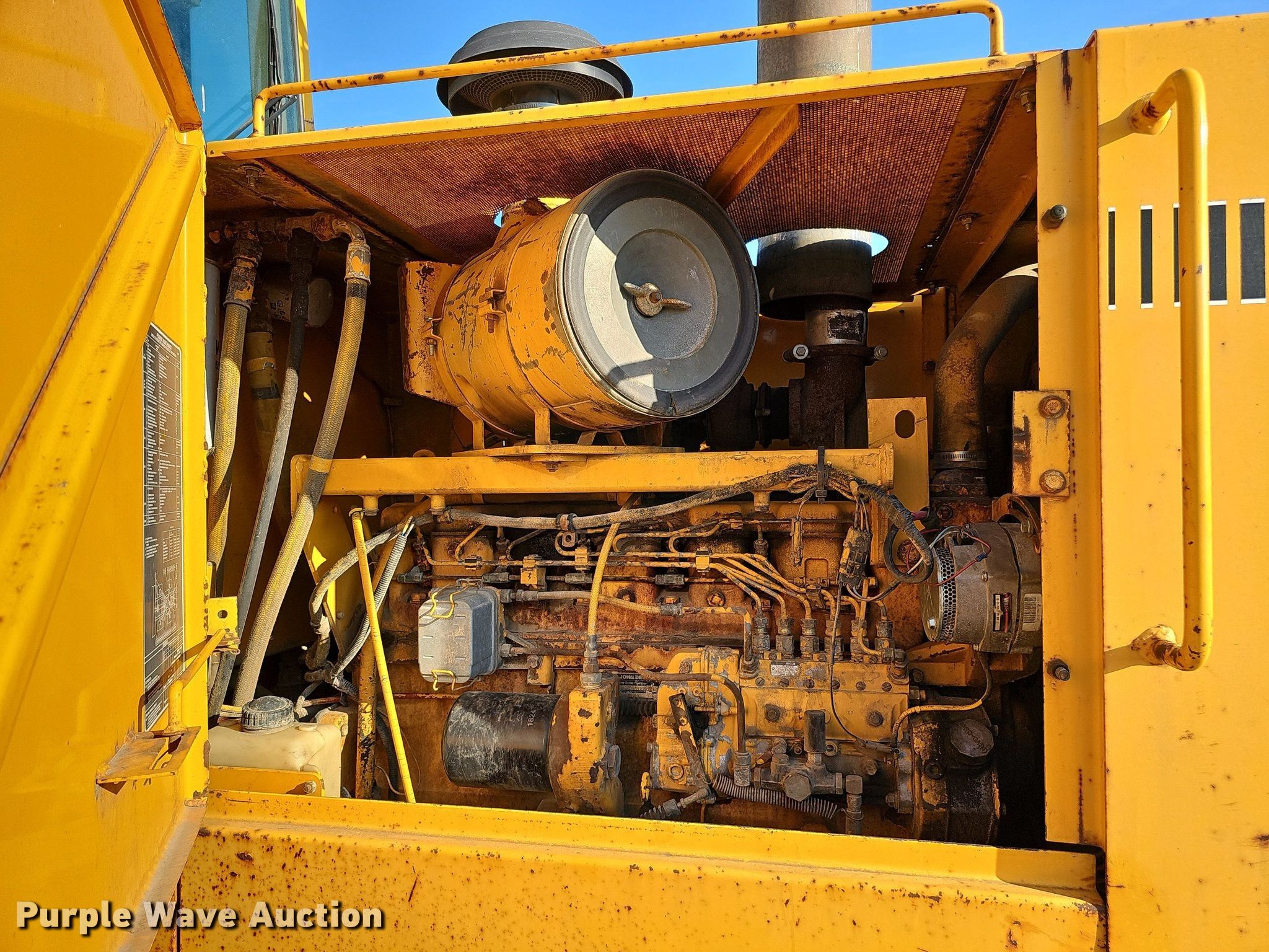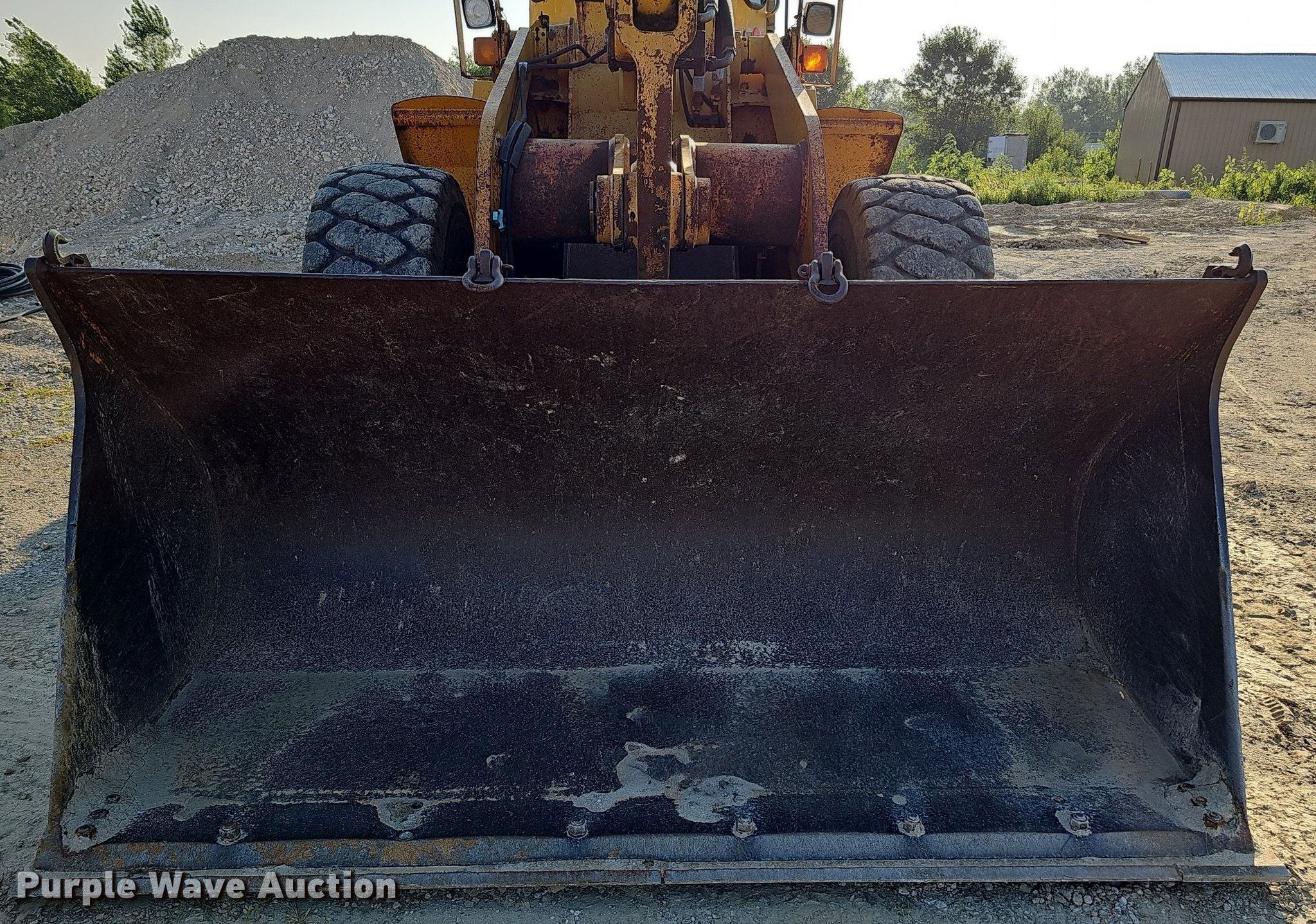 1990 John Deere 644E wheel loader. Hours: 9,639 on meter, Serial: DW644EB528281. Engine John Deere 6076TDW01, Serial: RG6076T129057, Cylinders: 6, Fuel type: Diesel. Transmission Powershift, 4F - 4R. Chassis Differential lock: Front. Operators station Enclosed cab, Heat, Bucket controls: Joystick. Features Quick coupler: Hydraulic, Bucket Capacity: 3.25 cu.yd., Width: 109", Cutting edge: Bolt-on. Tires Size: 20.5R25. Notes Possible oil leak, Possible hydraulic leak, Non-operational quick coupler hydraulic lines. Stark and Sons Construction Co. Inc.. 21803 R & R Road. Gretna, NE 68028