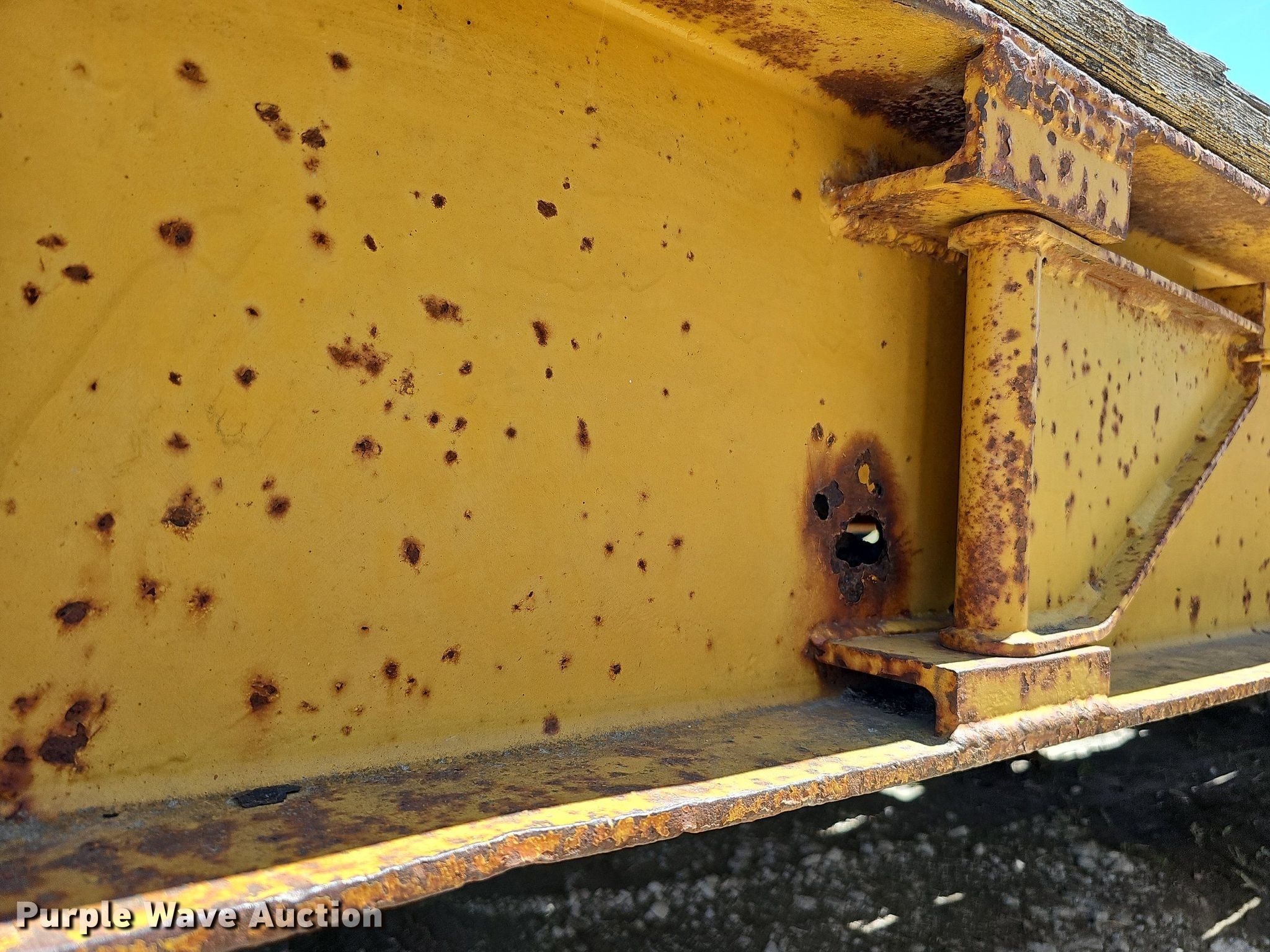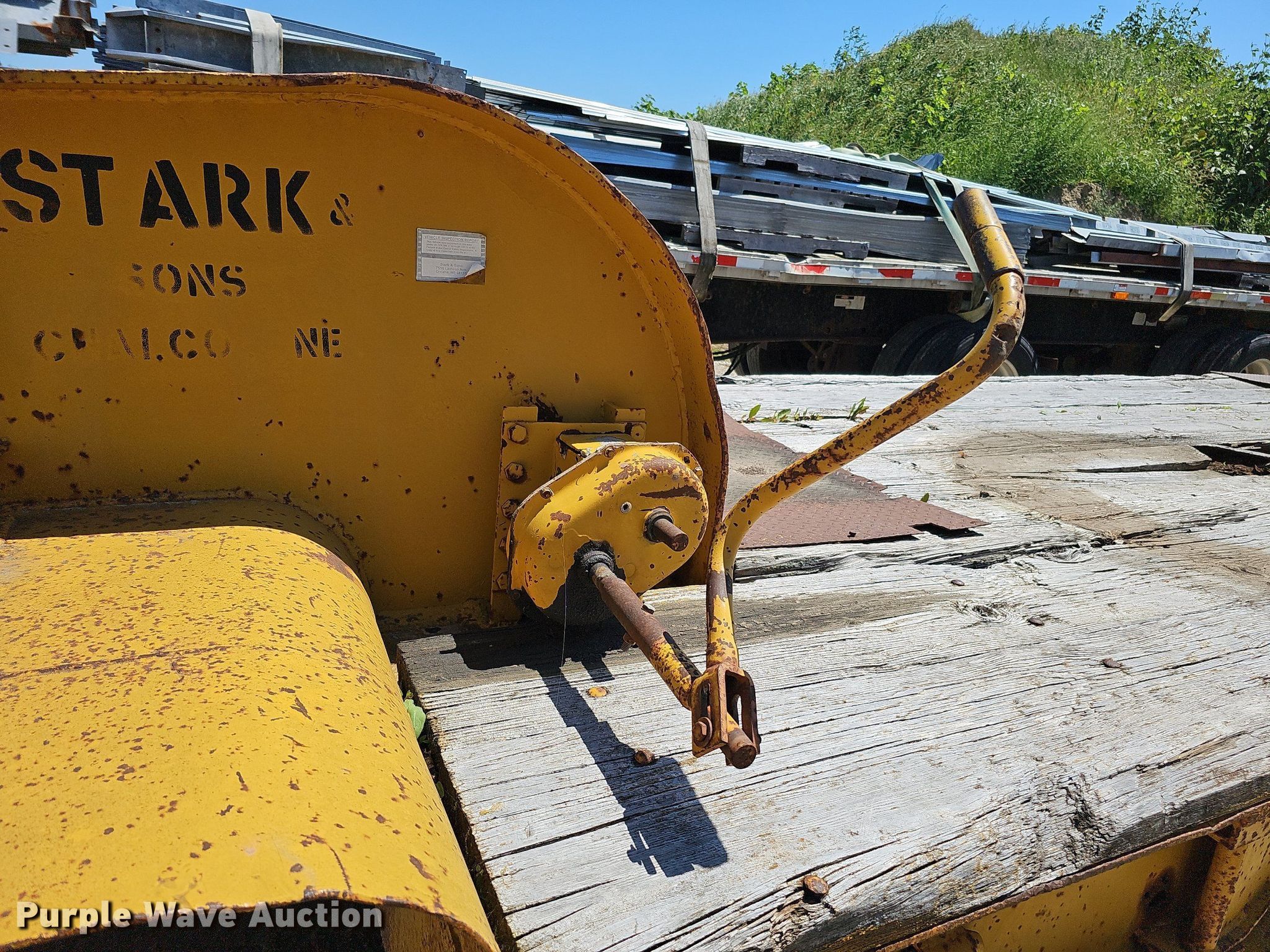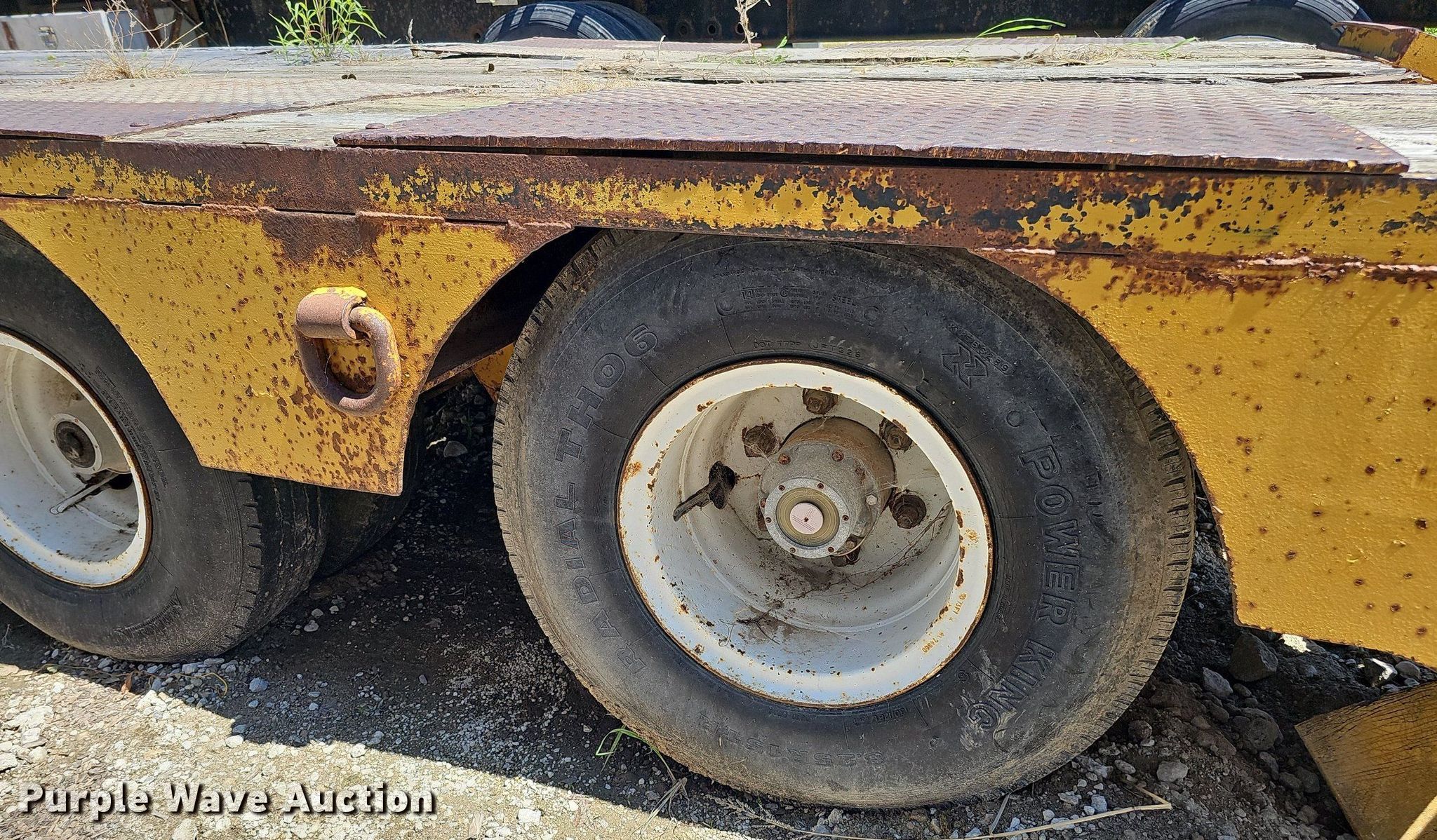 1948 PDHD LoBoy equipment trailer. VIN: 204. Dimensions Overall: 35', Deck: 22', Tail length: 4', Ramps: Manual Length: 48". Features Deck type: Wood, Outriggers: Swing-out Board size: 12". Chassis Landing gear: Dual, Suspension: Spring, Brakes: Air, Axles: Tandem. Tires Steel wheels, Size: 8.25R15TR. Notes Deck boards need replaced, Rust damage. Nebraska title. Title distribution may be delayed up to 14 days from verification of funds. Stark and Sons Construction Co. Inc.. 21803 R & R Road. Gretna, NE 68028