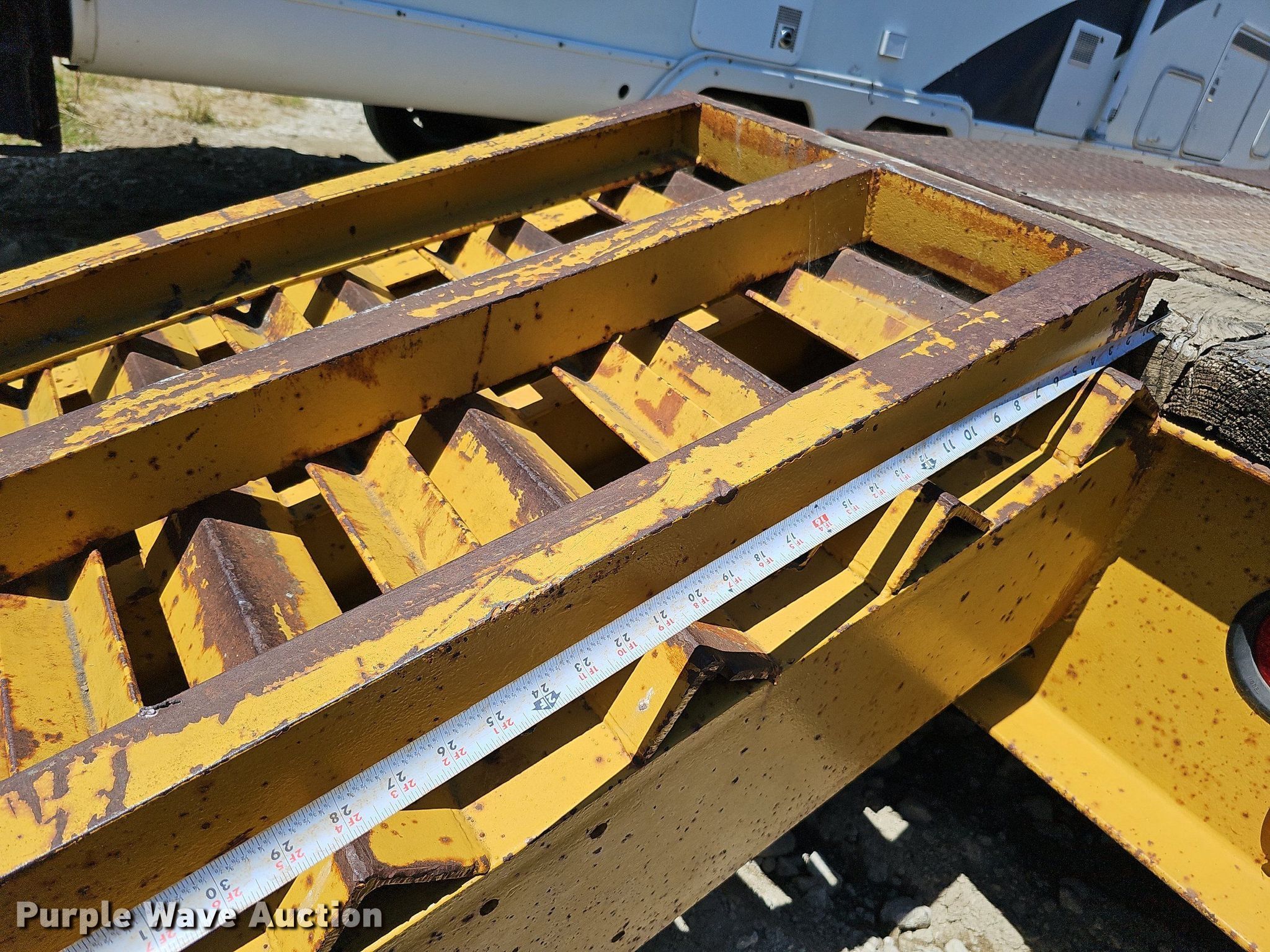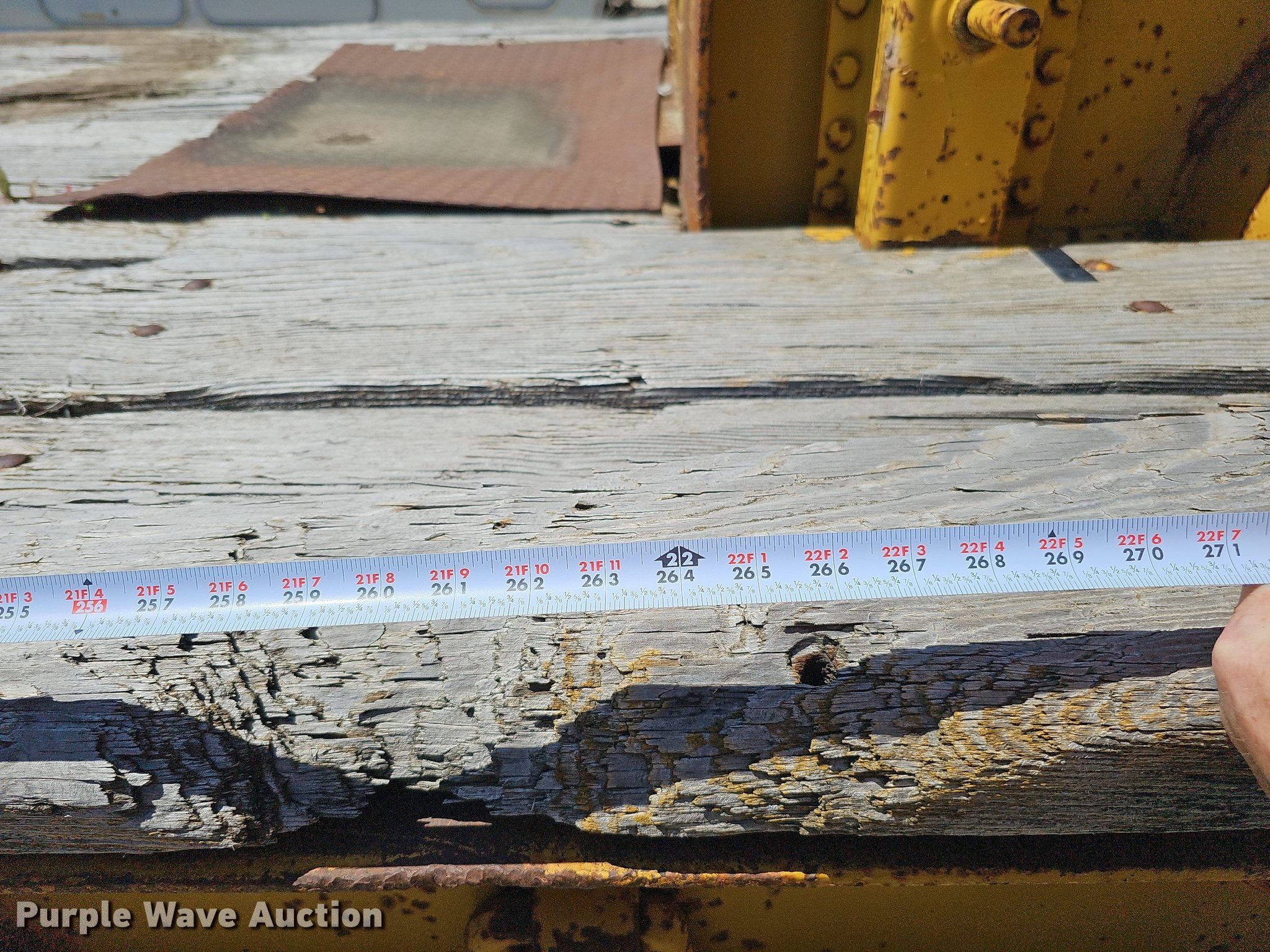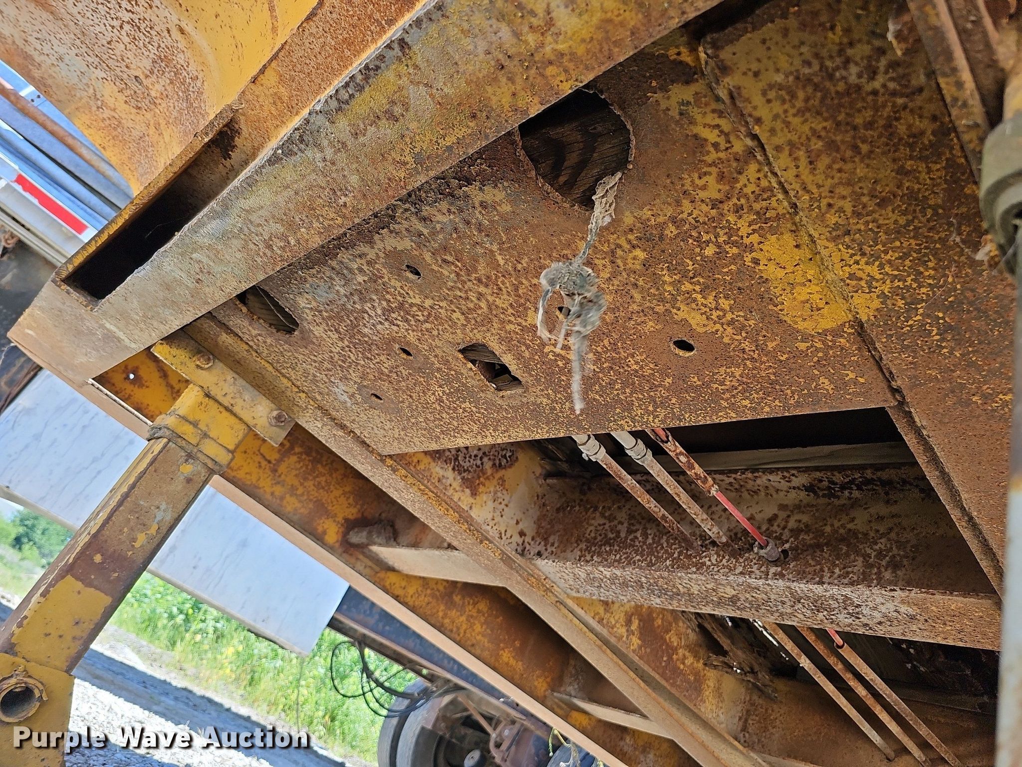 1948 PDHD LoBoy equipment trailer. VIN: 204. Dimensions Overall: 35', Deck: 22', Tail length: 4', Ramps: Manual Length: 48". Features Deck type: Wood, Outriggers: Swing-out Board size: 12". Chassis Landing gear: Dual, Suspension: Spring, Brakes: Air, Axles: Tandem. Tires Steel wheels, Size: 8.25R15TR. Notes Deck boards need replaced, Rust damage. Nebraska title. Title distribution may be delayed up to 14 days from verification of funds. Stark and Sons Construction Co. Inc.. 21803 R & R Road. Gretna, NE 68028