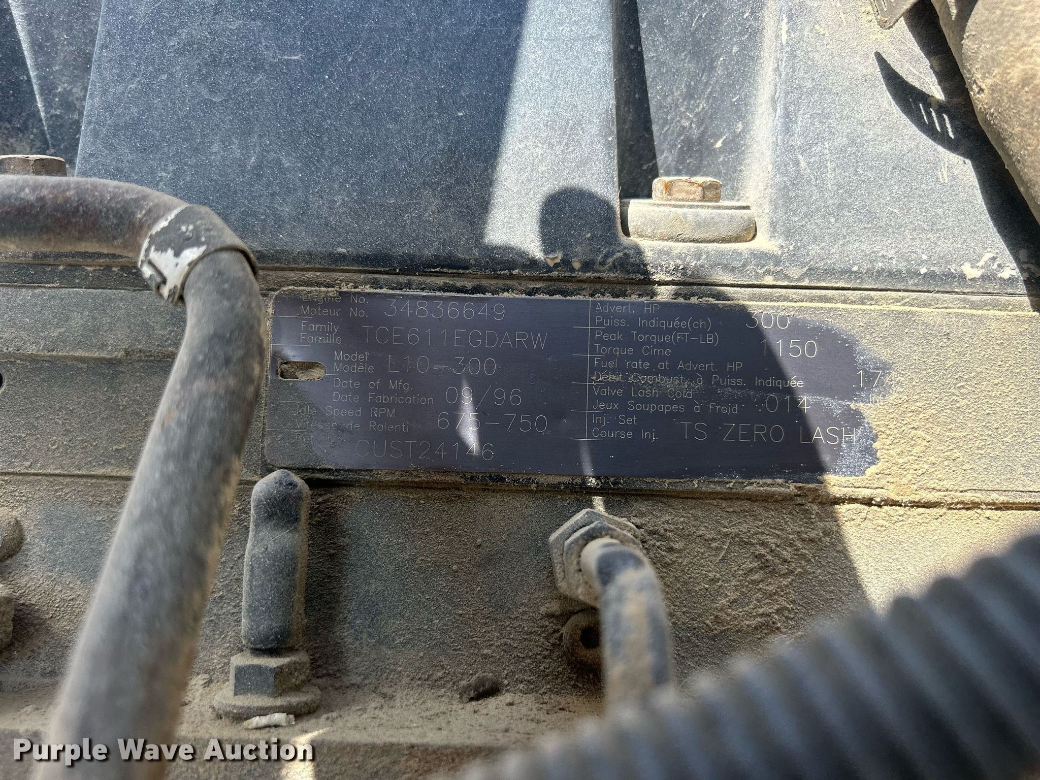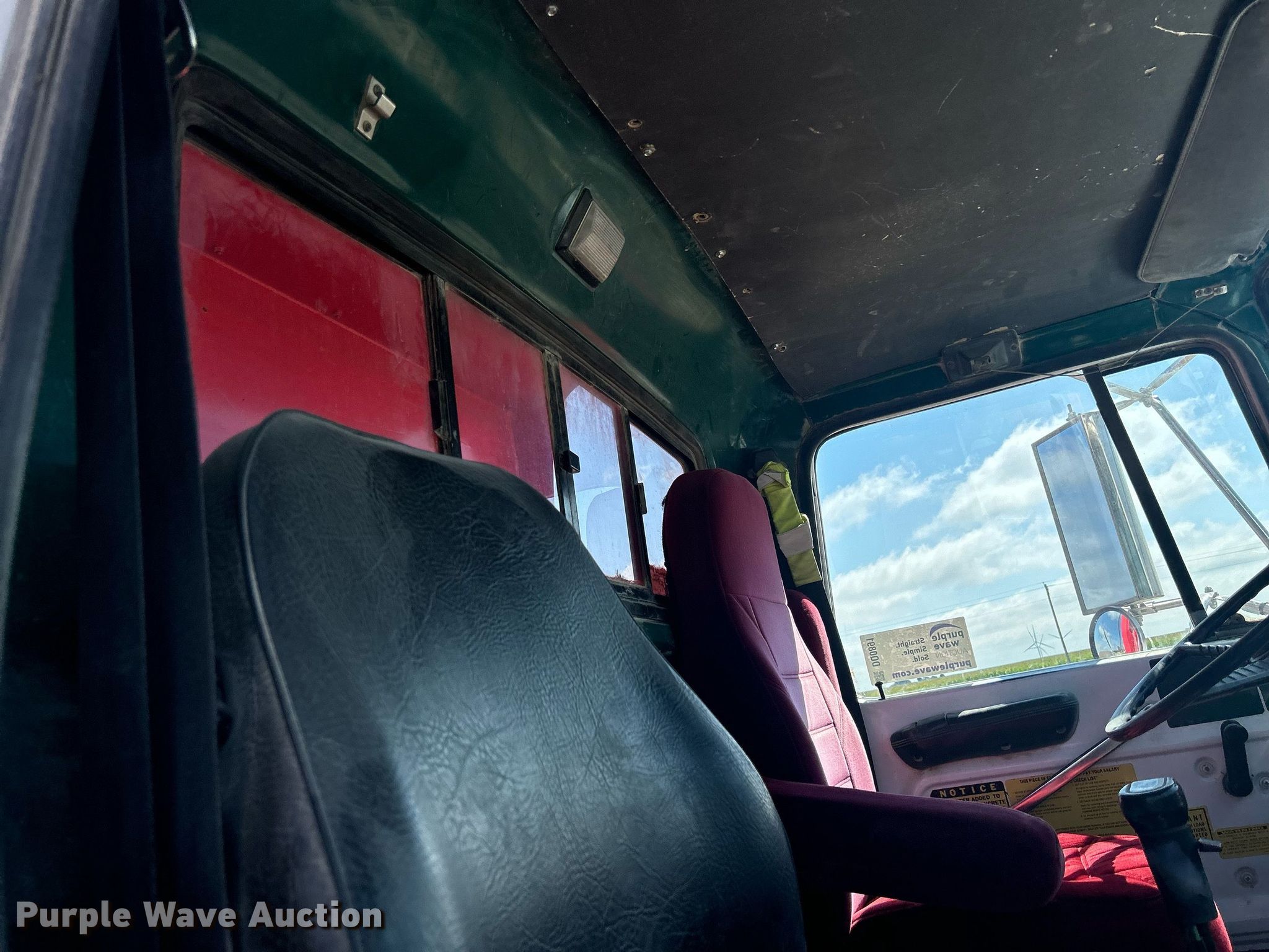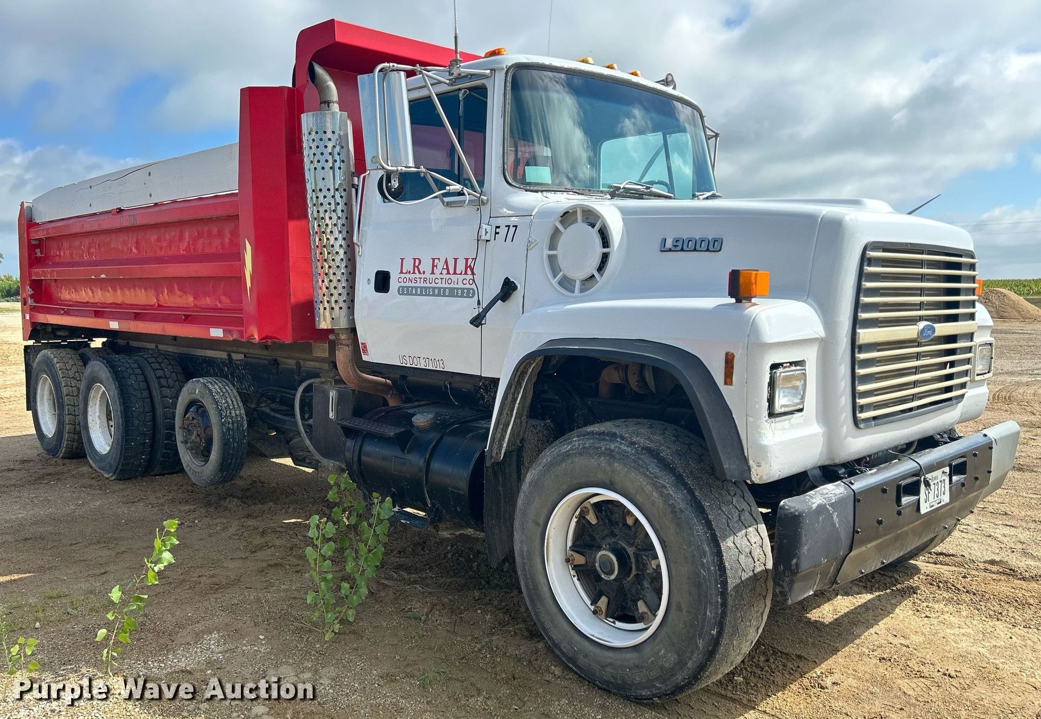1997 Ford LT9000 dump truck. Miles: 178,213 on odometer, VIN: 1FDZU90L3VVA28505, Unit #: F77. Engine Cummins L10, Displacement: 10.0L, Cylinders: 6, Fuel type: Diesel. Transmission Eaton Fuller, Manual, Speed: 11. Chassis Axles: Triple, Pusher axle Steerable, Differential lock: Inter-axle, Suspension: Spring over walking beam, Brakes: Air, PTO, GVWR: 60,000 lbs, Wheelbase: 240". Interior Heat. Features Dump bed 15' 10" L x 96" W, Side height: 36", Side board height: 12", Bed type: Steel, Ram: Dual, End gate: Air operated. Tires Front: 385/65R22.5, Rear: 11R22.5, Lift axle: 215/75R17.5. Iowa title. Title distribution may be delayed up to 14 days from verification of funds. L. R. Falk Construction. 4439 Indigo Avenue. Saint Ansgar, IA 50472