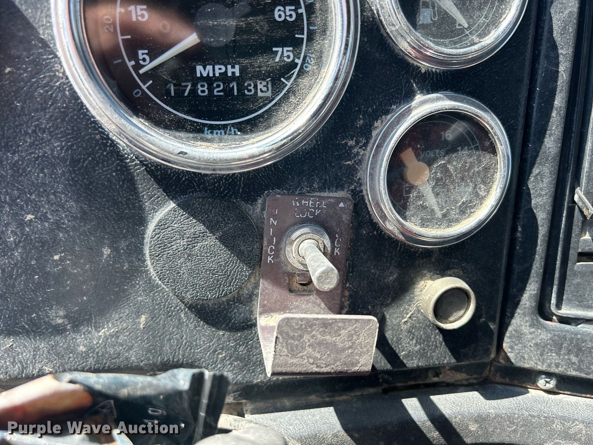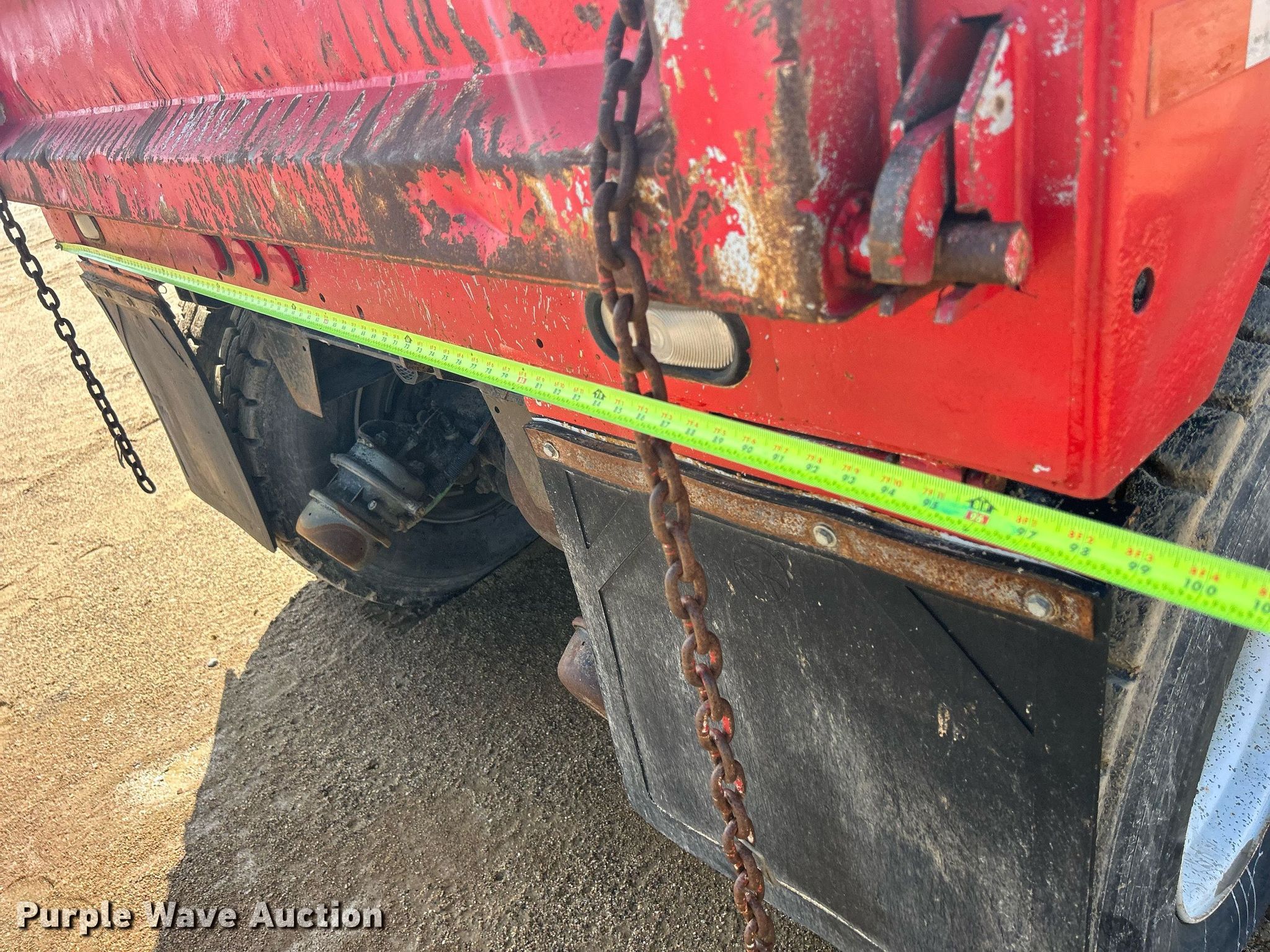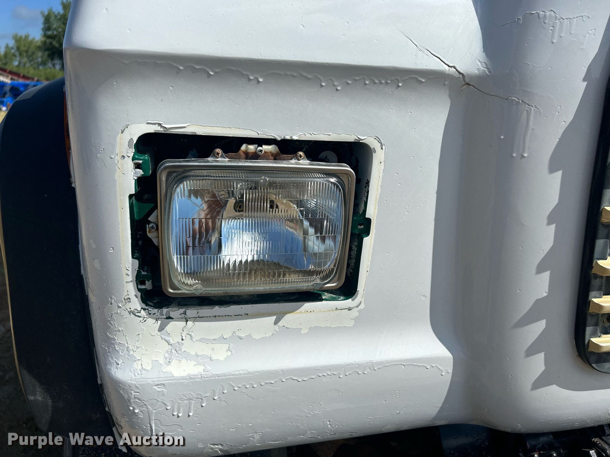 1997 Ford LT9000 dump truck. Miles: 178,213 on odometer, VIN: 1FDZU90L3VVA28505, Unit #: F77. Engine Cummins L10, Displacement: 10.0L, Cylinders: 6, Fuel type: Diesel. Transmission Eaton Fuller, Manual, Speed: 11. Chassis Axles: Triple, Pusher axle Steerable, Differential lock: Inter-axle, Suspension: Spring over walking beam, Brakes: Air, PTO, GVWR: 60,000 lbs, Wheelbase: 240". Interior Heat. Features Dump bed 15' 10" L x 96" W, Side height: 36", Side board height: 12", Bed type: Steel, Ram: Dual, End gate: Air operated. Tires Front: 385/65R22.5, Rear: 11R22.5, Lift axle: 215/75R17.5. Iowa title. Title distribution may be delayed up to 14 days from verification of funds. L. R. Falk Construction. 4439 Indigo Avenue. Saint Ansgar, IA 50472