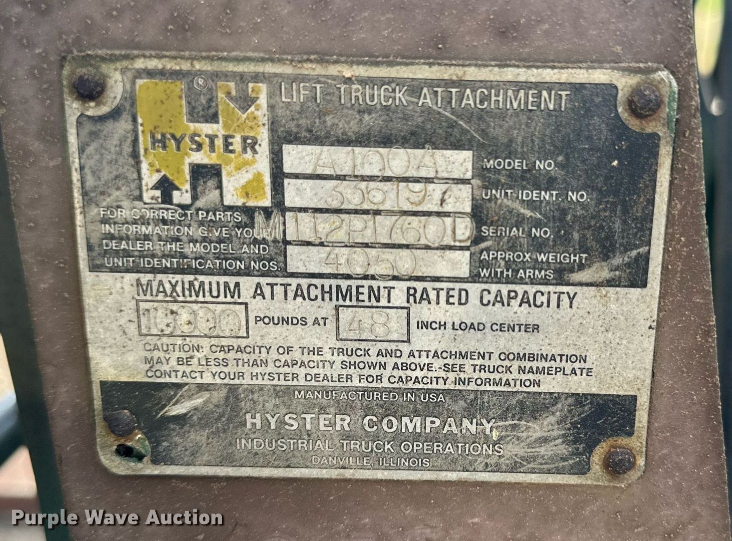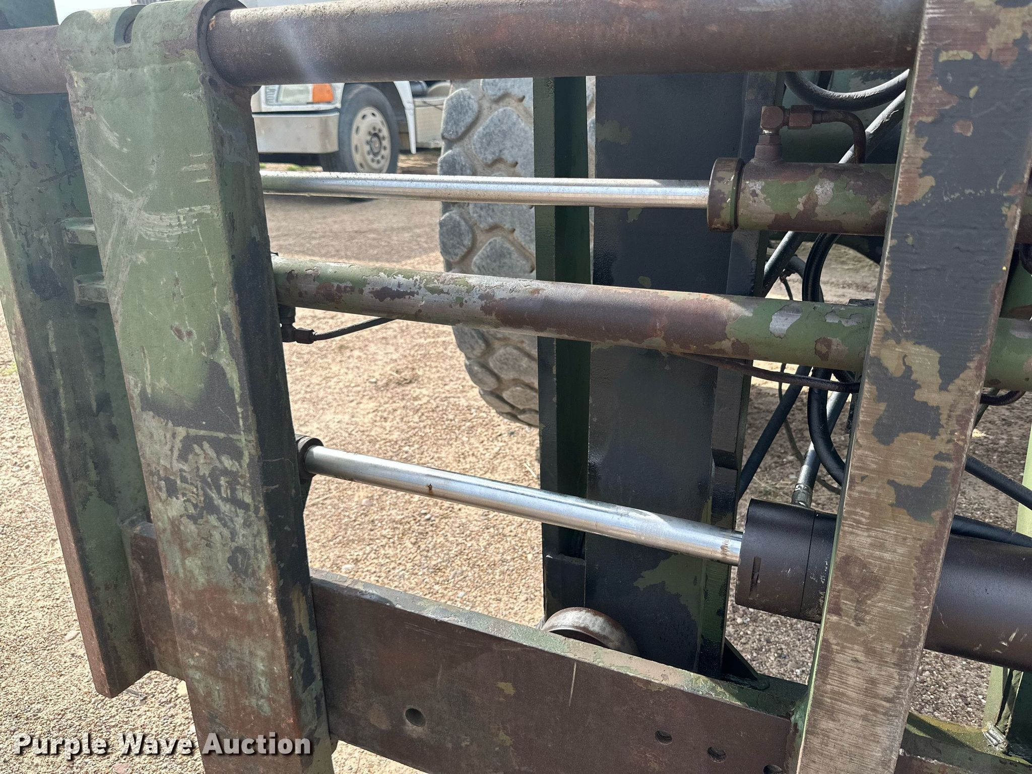1983 International M100A wheel loader. Hours: 792 on meter, Serial: 3930-01-054-3833. Engine International , Cylinders: 6, Fuel type: Diesel. Transmission Powershift, 3F - 3R. Operators station Enclosed cab, Heat, Bucket controls: Two-lever. Features Counter weights, Forks Hyster A100A, Length: 72". Tires Size: 20.5R25. Notes Fuel tank issues, auxiliary fuel tank installed. LD Concrete. 14724 County Road 15. Perryton, TX 79070