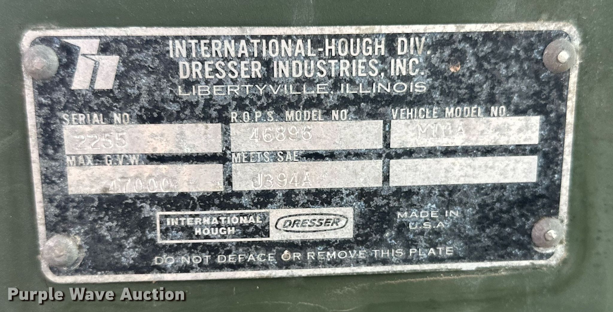 Purple Wave is selling a used Wheel Loader in Texas. This item is a 1983 International M100A wheel loader with the following: Hours: 792 on meter, Serial: 3930-01-054-3833