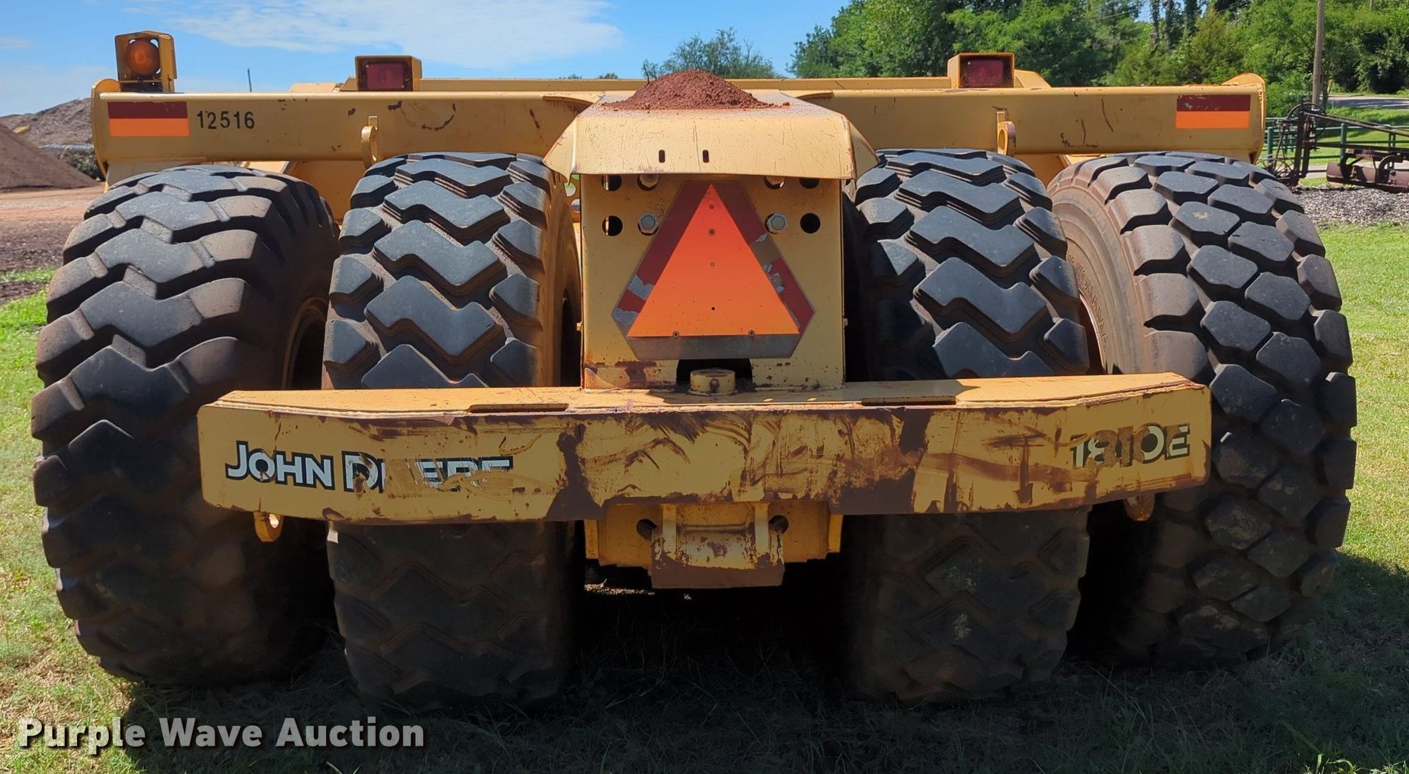 2012 John Deere 1810E scraper. Serial: 1T81810ELC0120810. Features Bowl capacity: 18.3 cu.yd., Hydraulic lift. Tires Size: 20.5R25. Gallion Excavating LLC. 5150 East Sorghum Mill Road. Edmond, OK 73034