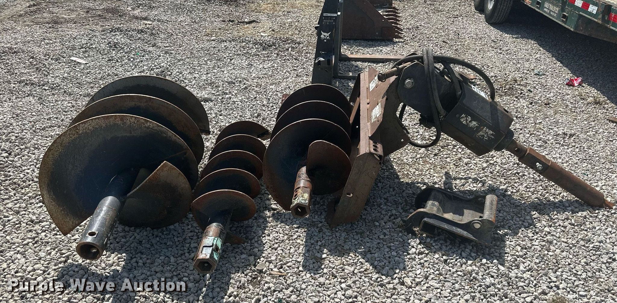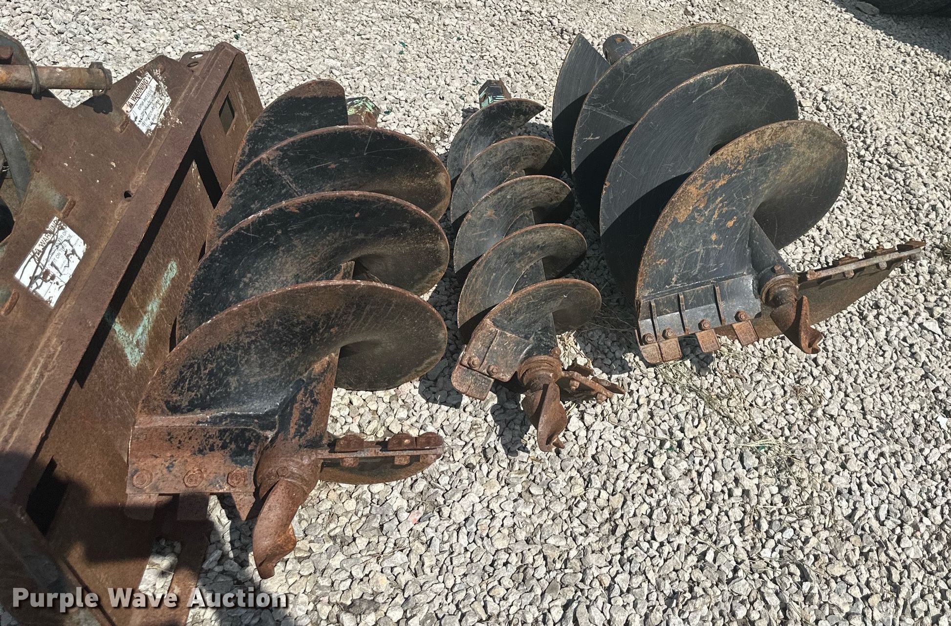 Purple Wave is selling a used Skid Steer Attach. in Kansas. This item is a Bobcat skid steer auger with the following: (3) bits, Diameter: 12", Diameter: 18", Diameter: 24"