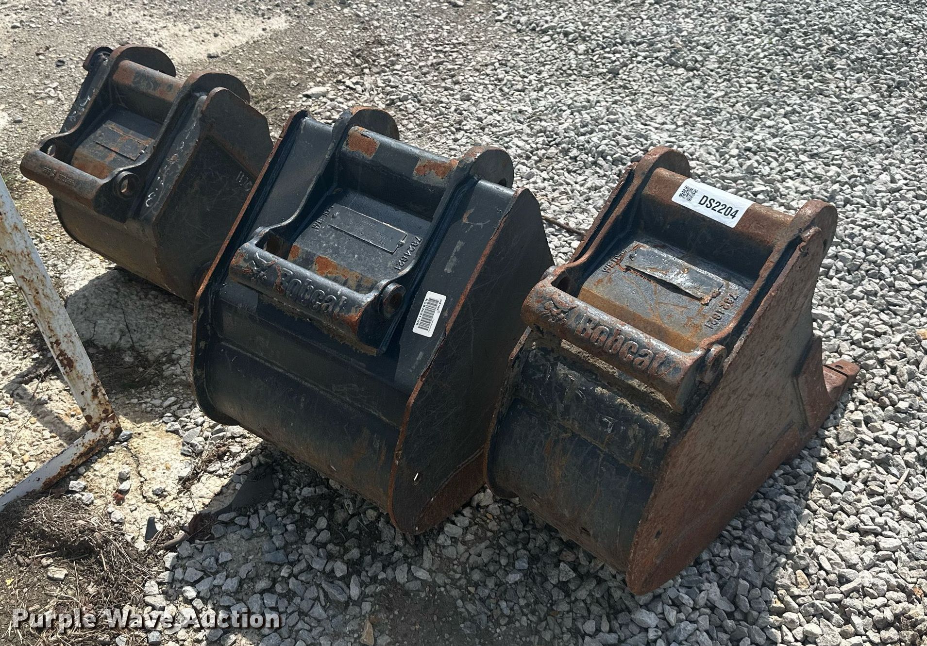 (3) Bobcat excavator buckets has sold in Lawrence, Kansas for $2255. Item DS2204 sold on September 14th, 2023.
