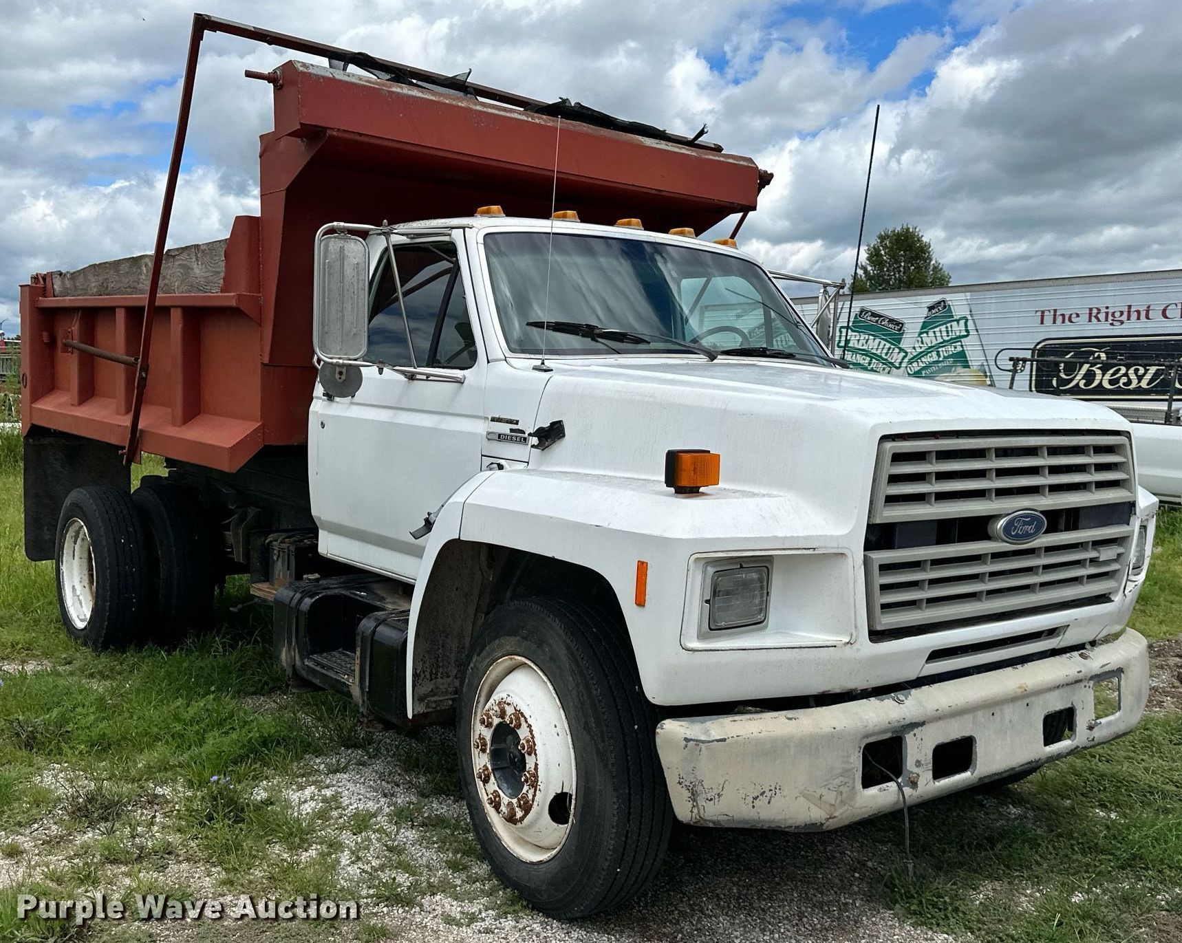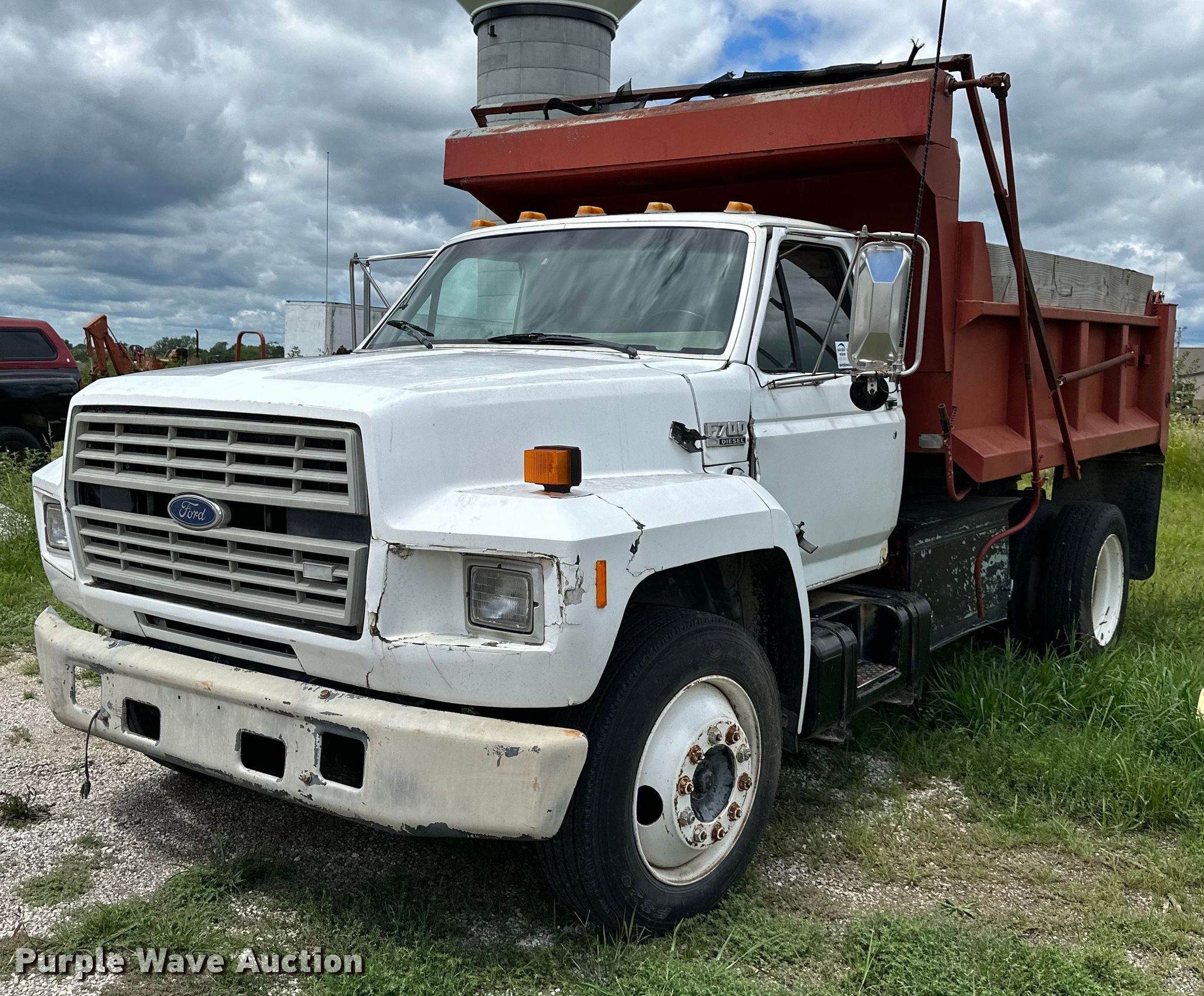 Purple Wave is selling a used Construction Dump Truck in Kansas. This item is a 1990 Ford F700 dump truck with the following: Miles: 491,629 on odometer, VIN: 1FDNK74P9LVA02929