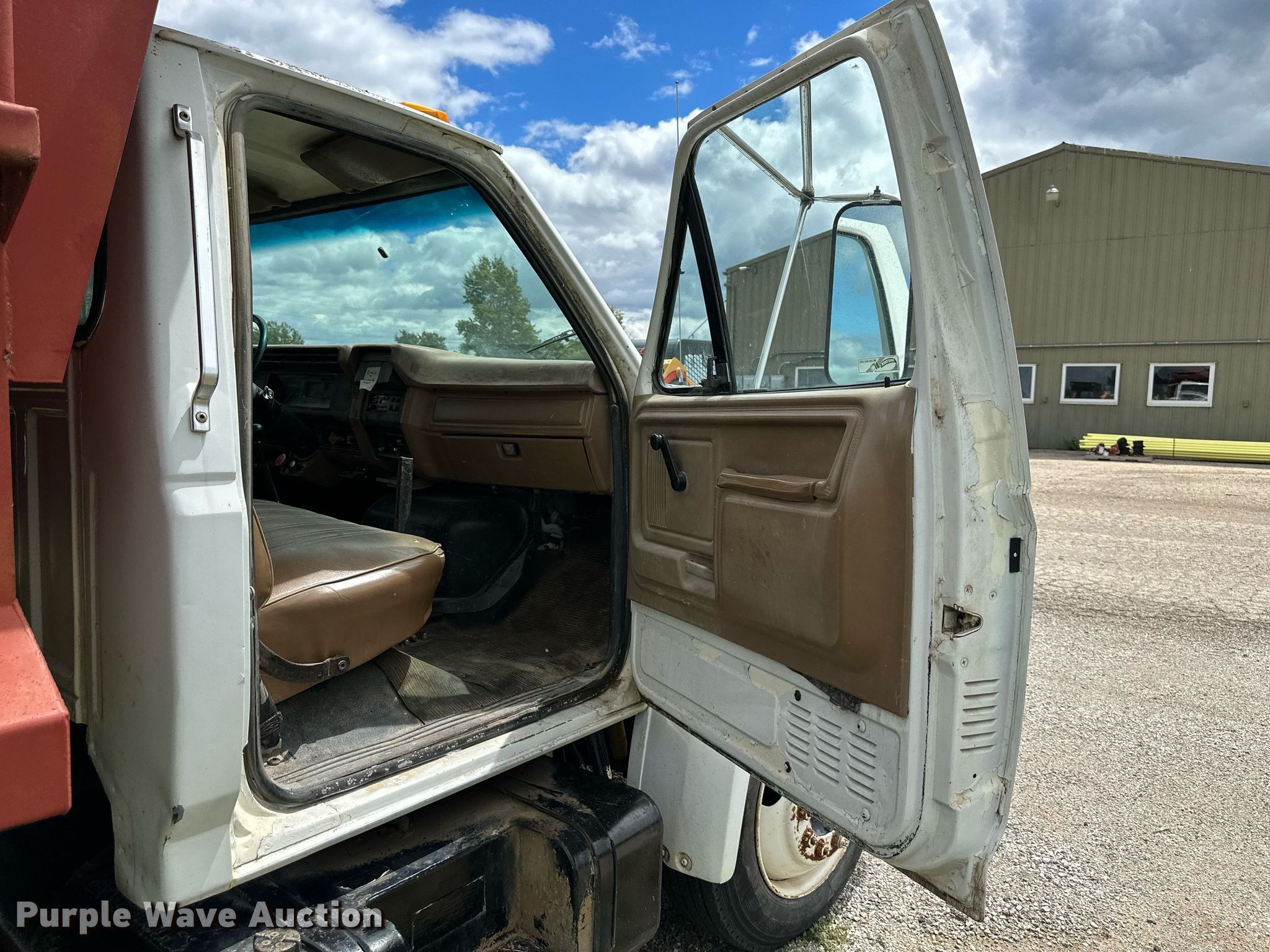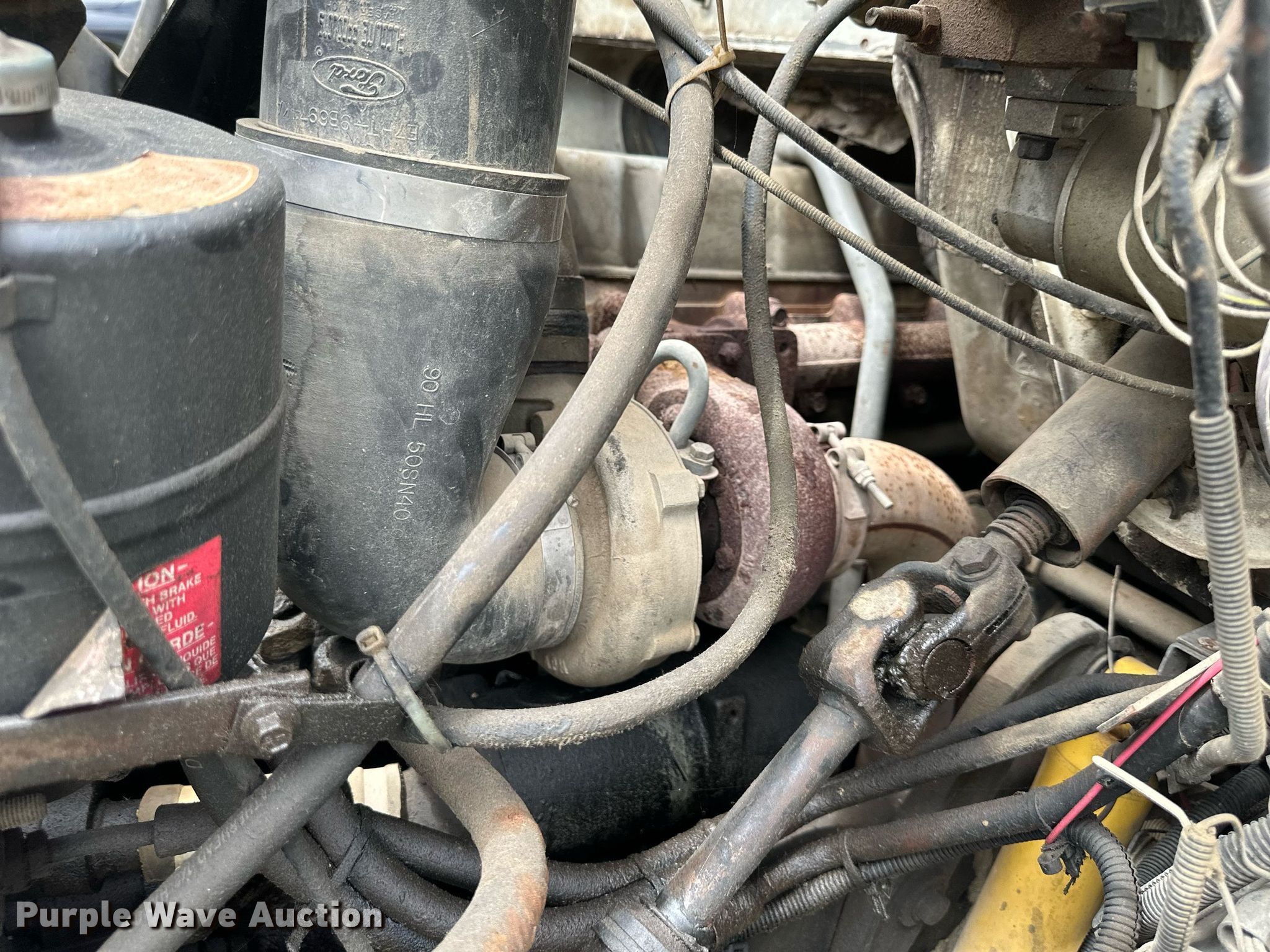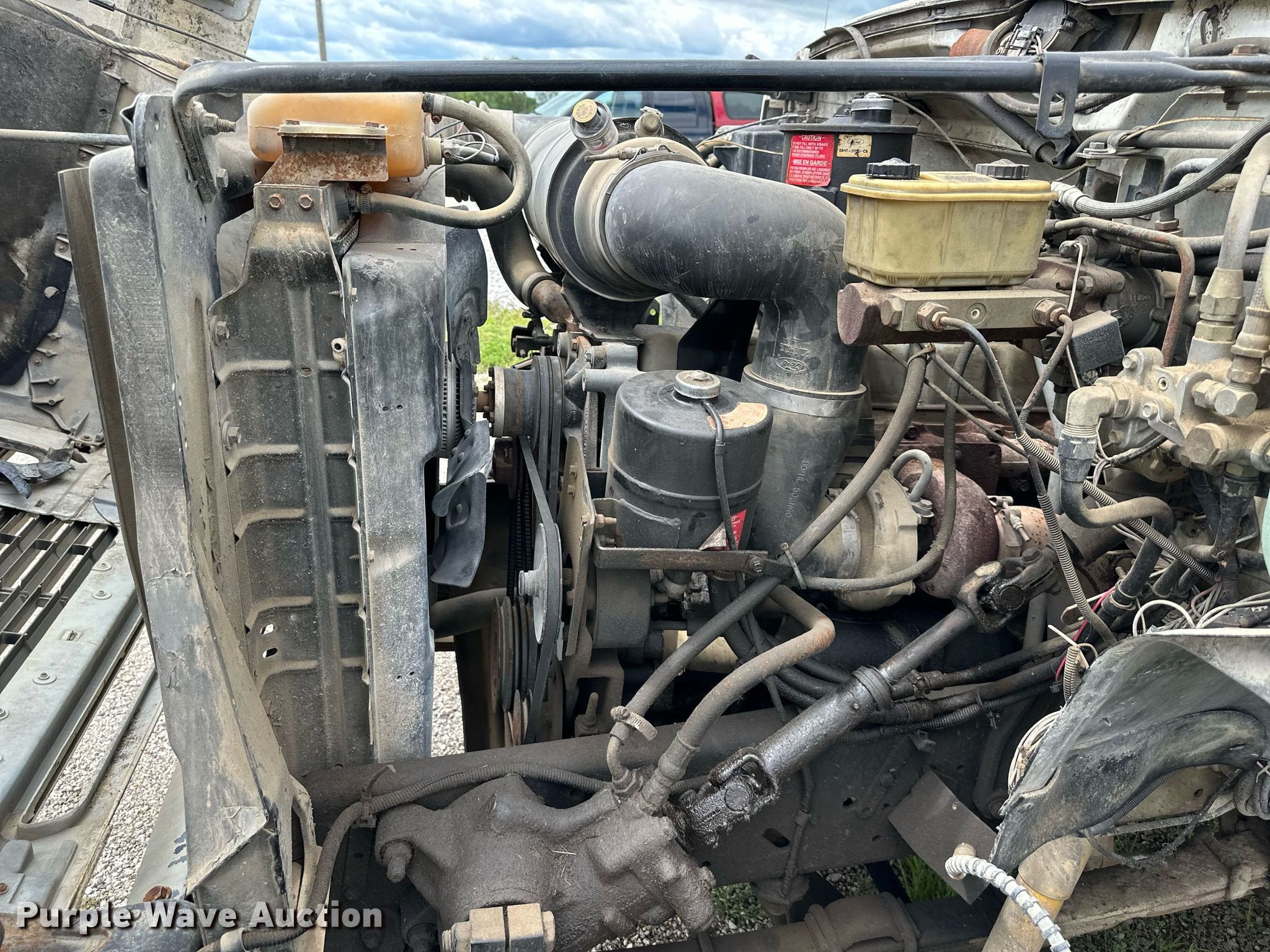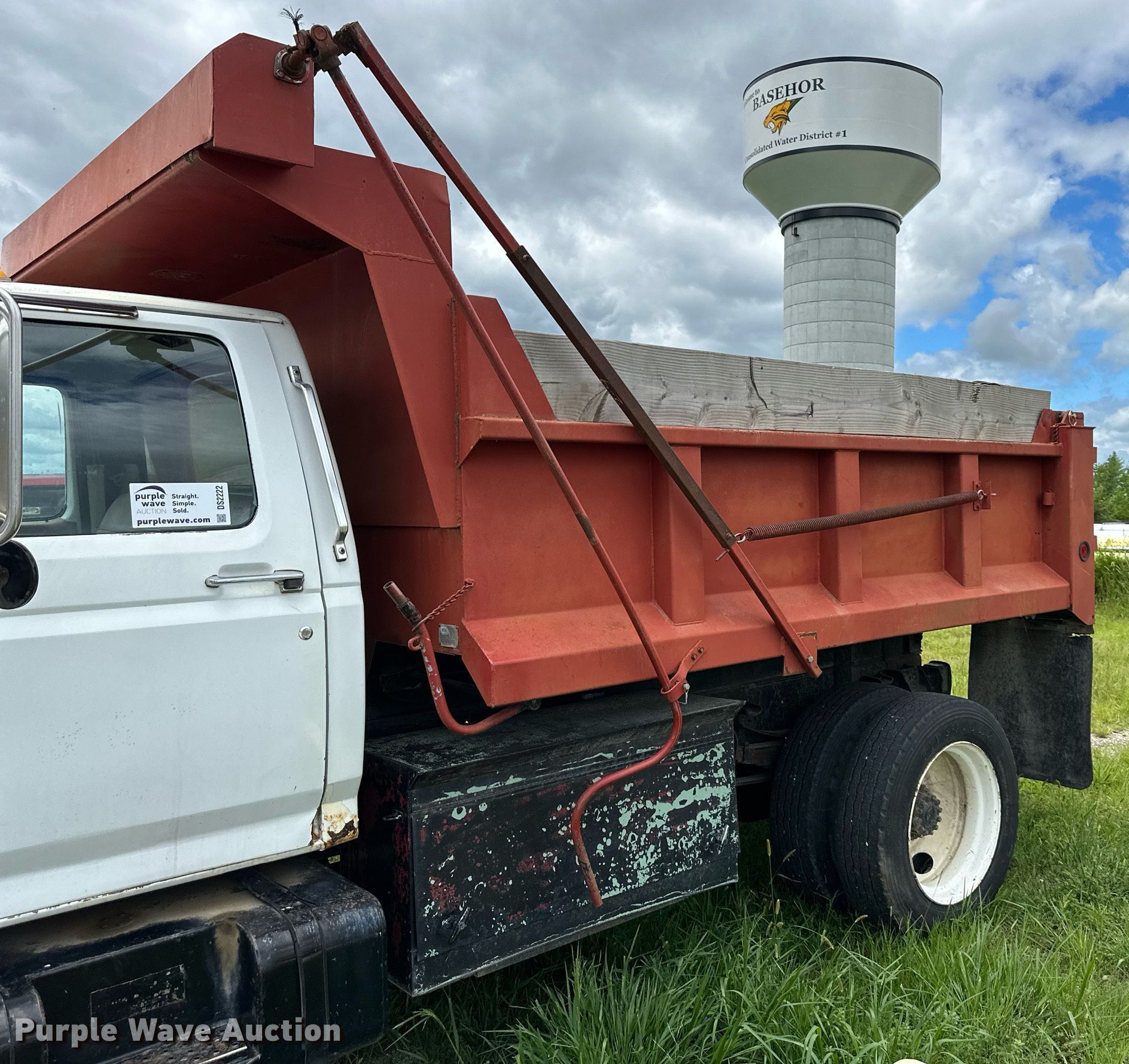 1990 Ford F700 dump truck. Miles: 491,629 on odometer, VIN: 1FDNK74P9LVA02929. Engine Displacement: 6.6L , Cylinders: 6, Fuel type: Diesel. Transmission Manual, Speed: 6. Chassis Axles: Single, Suspension: Spring, Brakes: Hydraulic, PTO. Interior Heat, Brake controller. Features Dump bed Heil, 10' L x 96" W, Side height: 28", Side board height: 10", Bed type: Steel, Roll tarp, Ram: Single , End gate: Manual. Tires Size: 255/70R22.5. Kansas title. Title distribution may be delayed up to 14 days from verification of funds. James Breuer. 1216 155th Street. Basehor, KS 66007