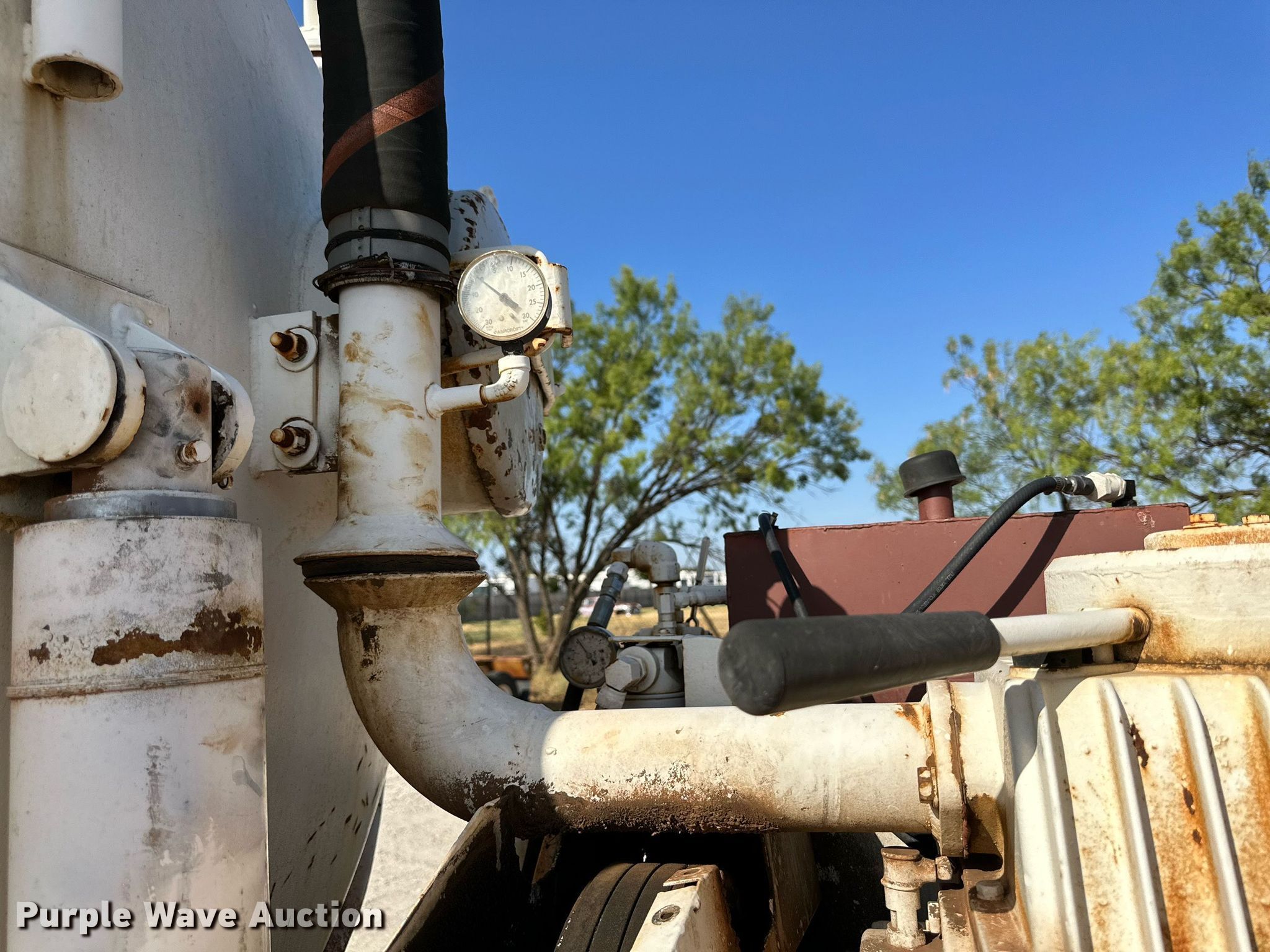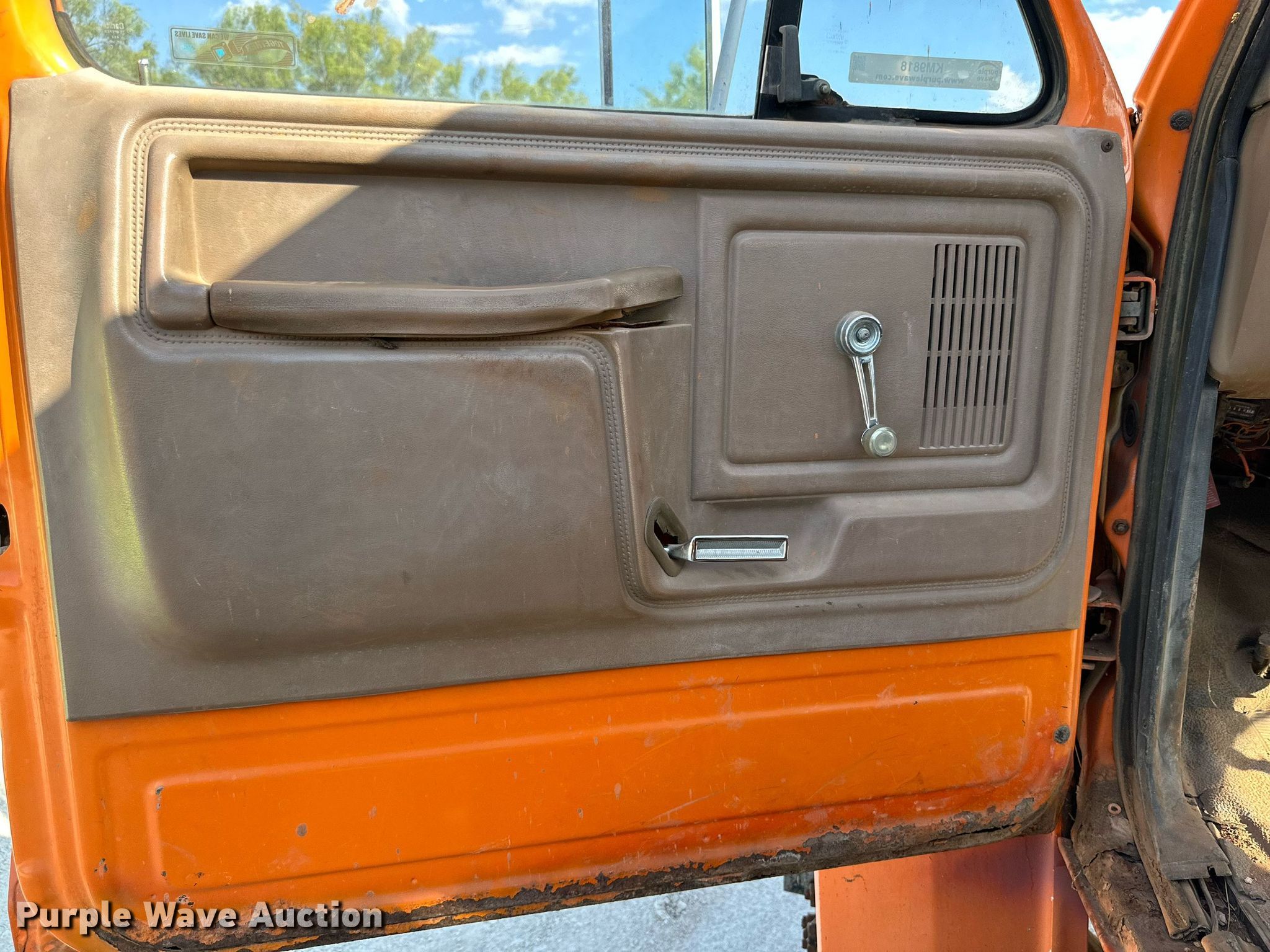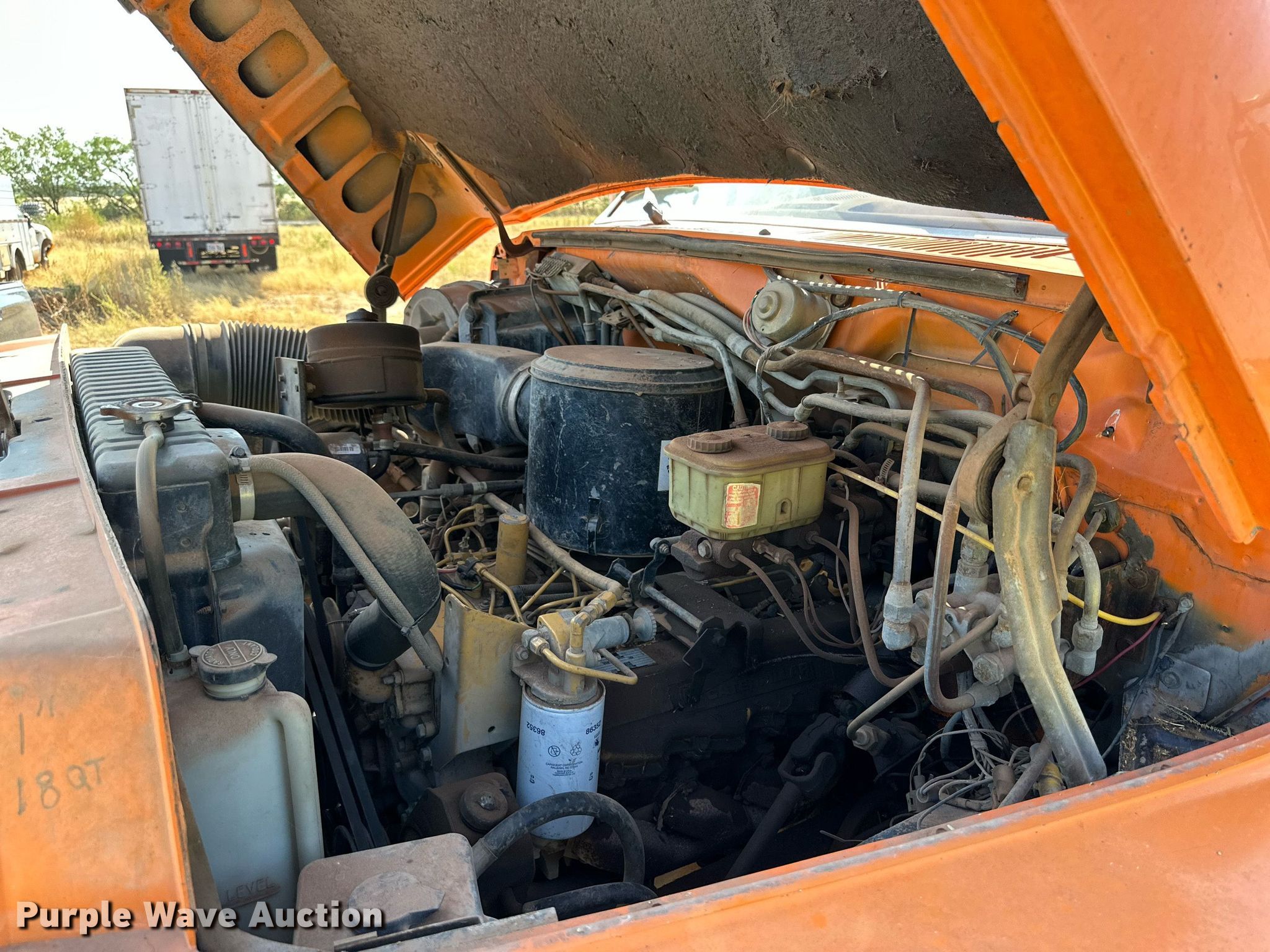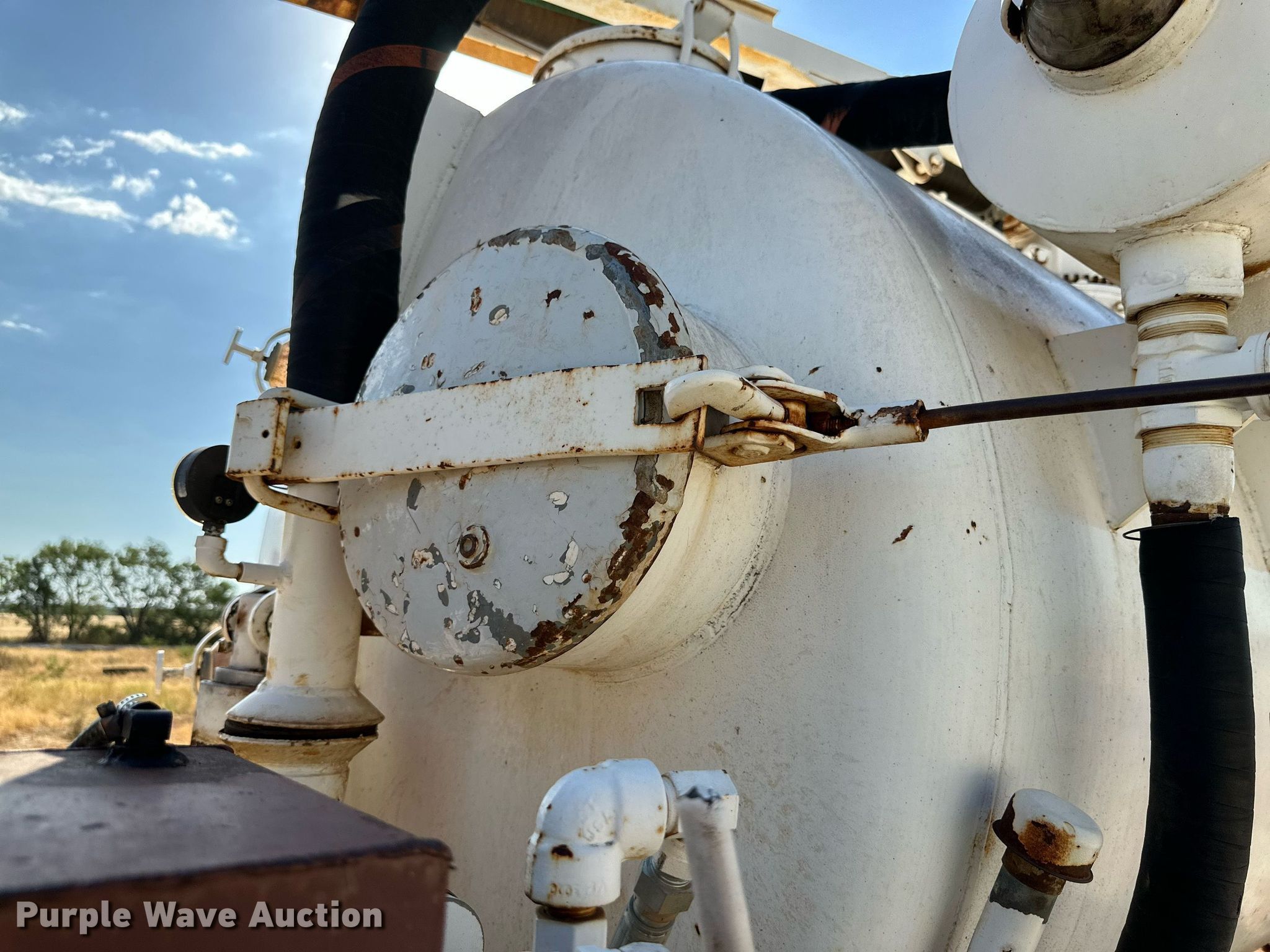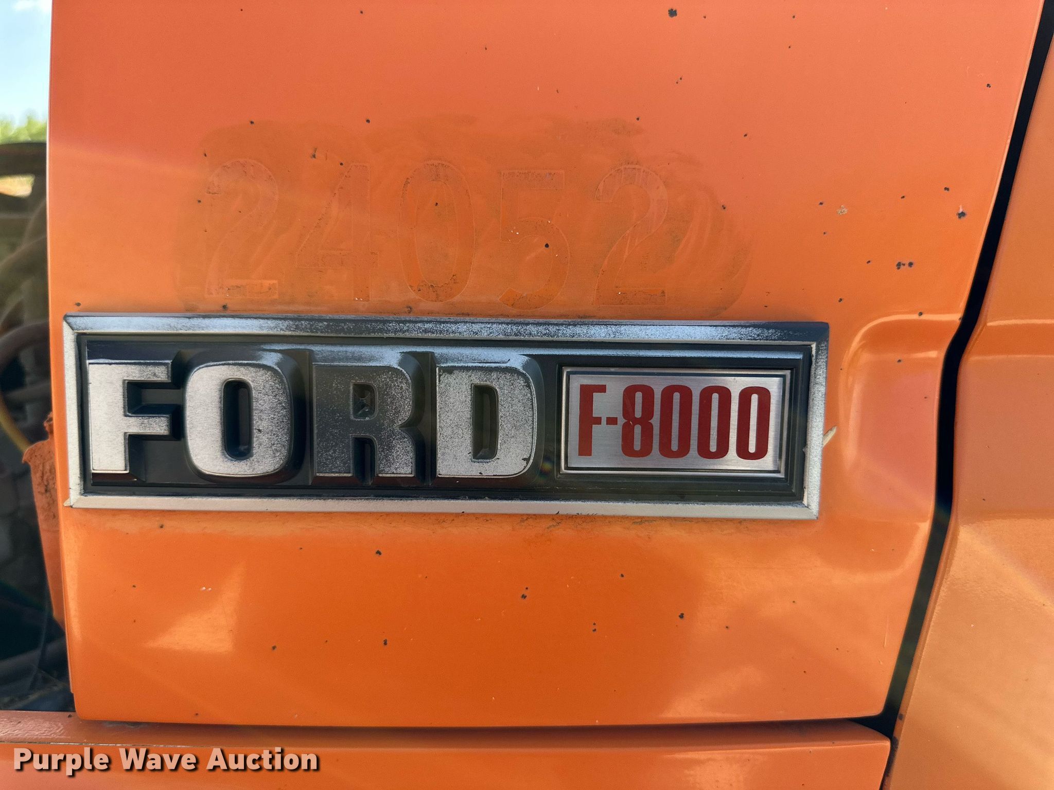 1986 Ford F8000 vacuum truck. Miles: 46,398 on odometer, VIN: 1FDPK87U9GVA49917. Engine Caterpillar 3208, Displacement: 10.4L, Cylinders: 8, Fuel type: Diesel. Transmission Manual, Speed: 5, plus 2. Chassis Axles: Single, Suspension: Spring, Brakes: Hydraulic. Interior AC, Heat. Features Tank bed Top hatches: 1, Rear outlet: 4", Telescopic boom. Tires Size: 11R22.5. Notes Pump engine missing. Texas title. Title distribution may be delayed up to 14 days from verification of funds. Kingdom Electric. 6633 Hwy 277 S. Abilene, TX 79606