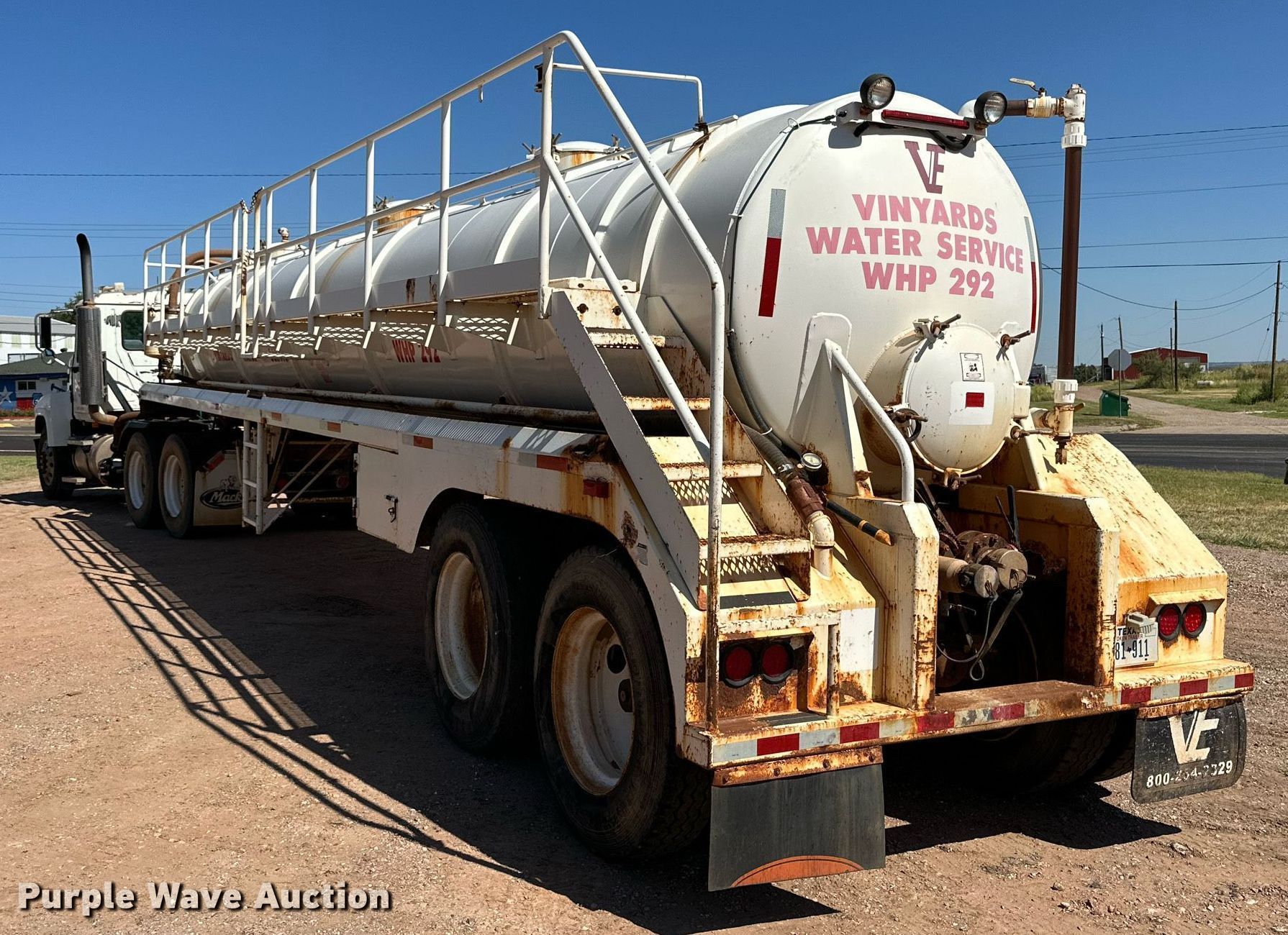 2007 Mack CHN613 semi truck. Miles: 486,928 on odometer, Hours: 26,454 on meter, VIN: 1M1AJ06Y37N007200. Engine Mack, Displacement: 12.0L, Cylinders: 6, Fuel type: Diesel. Transmission Eaton Fuller, Manual, Speed: 13. Chassis Axles: Tandem, Differential lock: Inter-axle, Suspension: Air Dump valves, Brakes: Air, PTO. Interior AC, Heat, Heated mirrors, Cruise control, Air ride cab. Features Fifth wheel type: Air operated, Sliding, Fuel tank: Dual. Tires Size: 11R24.5. Notes Dash warning indicator: ABS, Brake, Electrical fault, Windshield chipped or cracked. 2009 V.E. Enterprises EV-130 vacuum trailer VIN: 5AGEV42219S591301. Dimensions Overall: 42' L x 96" W. Features Tank type: Steel, Tank coating, Outlet valves: 2 Size: 5", Relief valve size: 4", No. of manways/manholes: 3 Width: 20", Full length walkway, Pump Challenger 807P-FD, Outlet size: 4". Chassis Landing gear: Dual, Suspension: Spring, Brakes: Air, Axles: Tandem, GVWR: 78,000 lbs, GAWR: 34,000 lbs. Tires Steel wheels, Size: 11R24.5. Truck - Texas title. Trailer - Texas title. Title distribution may be delayed up to 14 days from verification of funds. Vinyard Water Service, Inc.. 708 East 11th Street. Shamrock, TX 79079