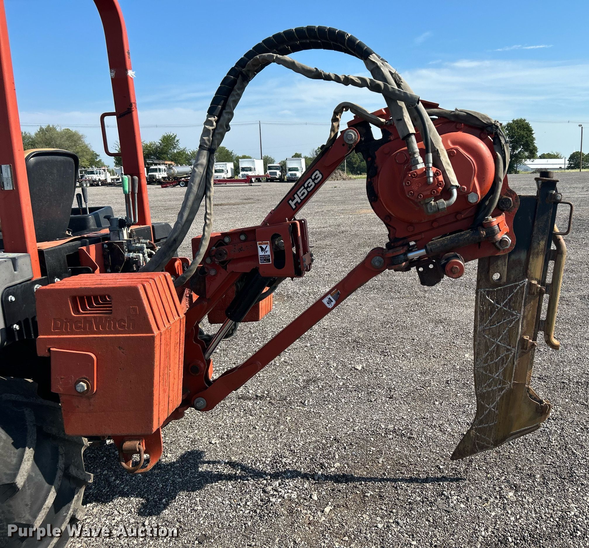 2005 Ditch Witch RT55H cable plow. Hours: 2,331 on meter, Serial: 5Z0918. Engine Cylinders: 4, Fuel type: Diesel. Transmission Hydrostatic, Four wheel drive. Operators station OROPS. Features Vibratory plow Model: H533, Serial: CMWH533XC50000004, Depth: 30", Backhoe Model: A523, Serial: CMWA523XL50000021, Bucket width: 12", Backfill blade Width: 71". Tires Size: 35x19.00-16.1 NHS. 15107 North 137th East Avenue. Collinsville, OK 74021