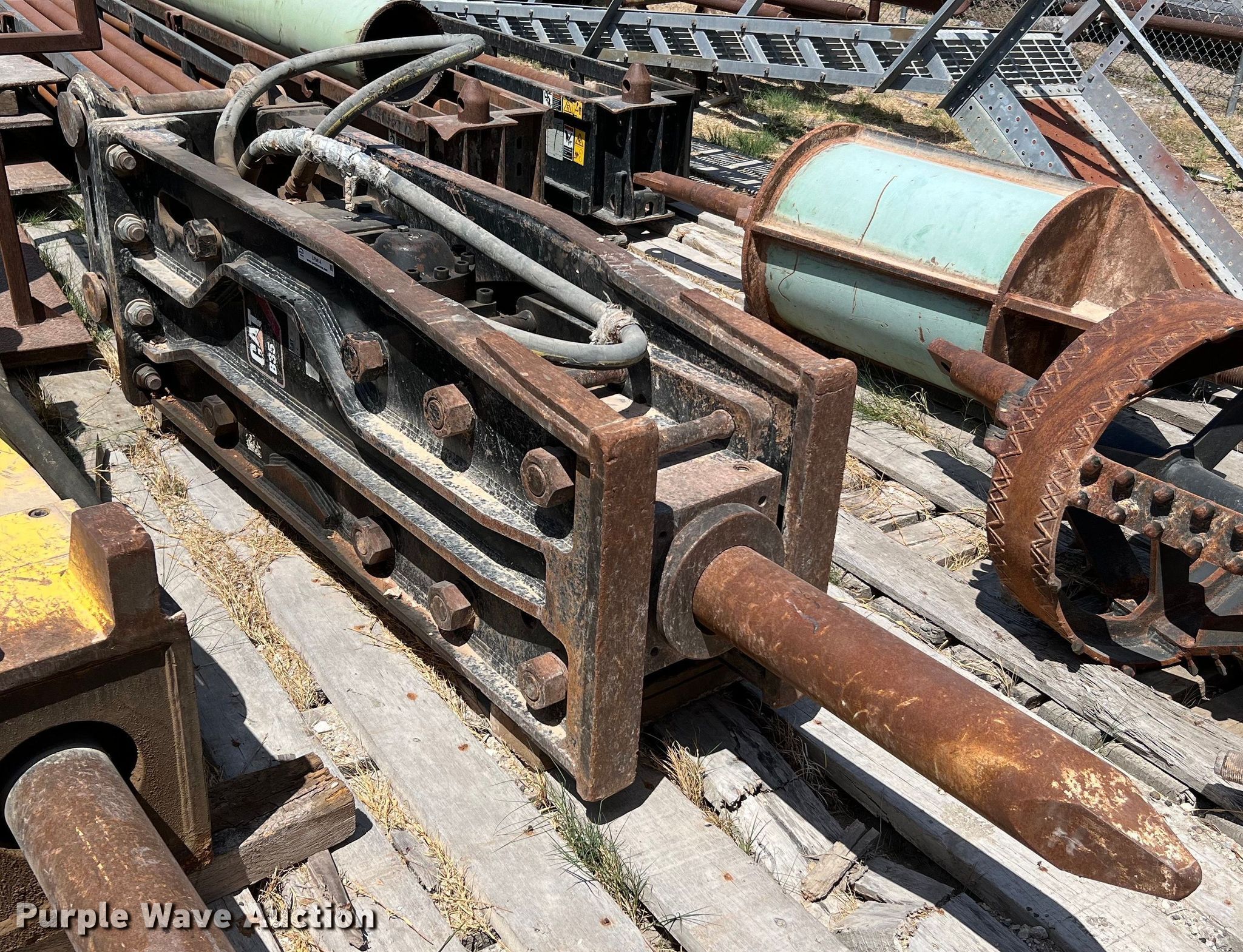 Purple Wave is selling a used Breaker or Hammer in Texas. This item is a Caterpillar B35 breaker with the following: Bit: 6" diameter, Serial: MXE 00330