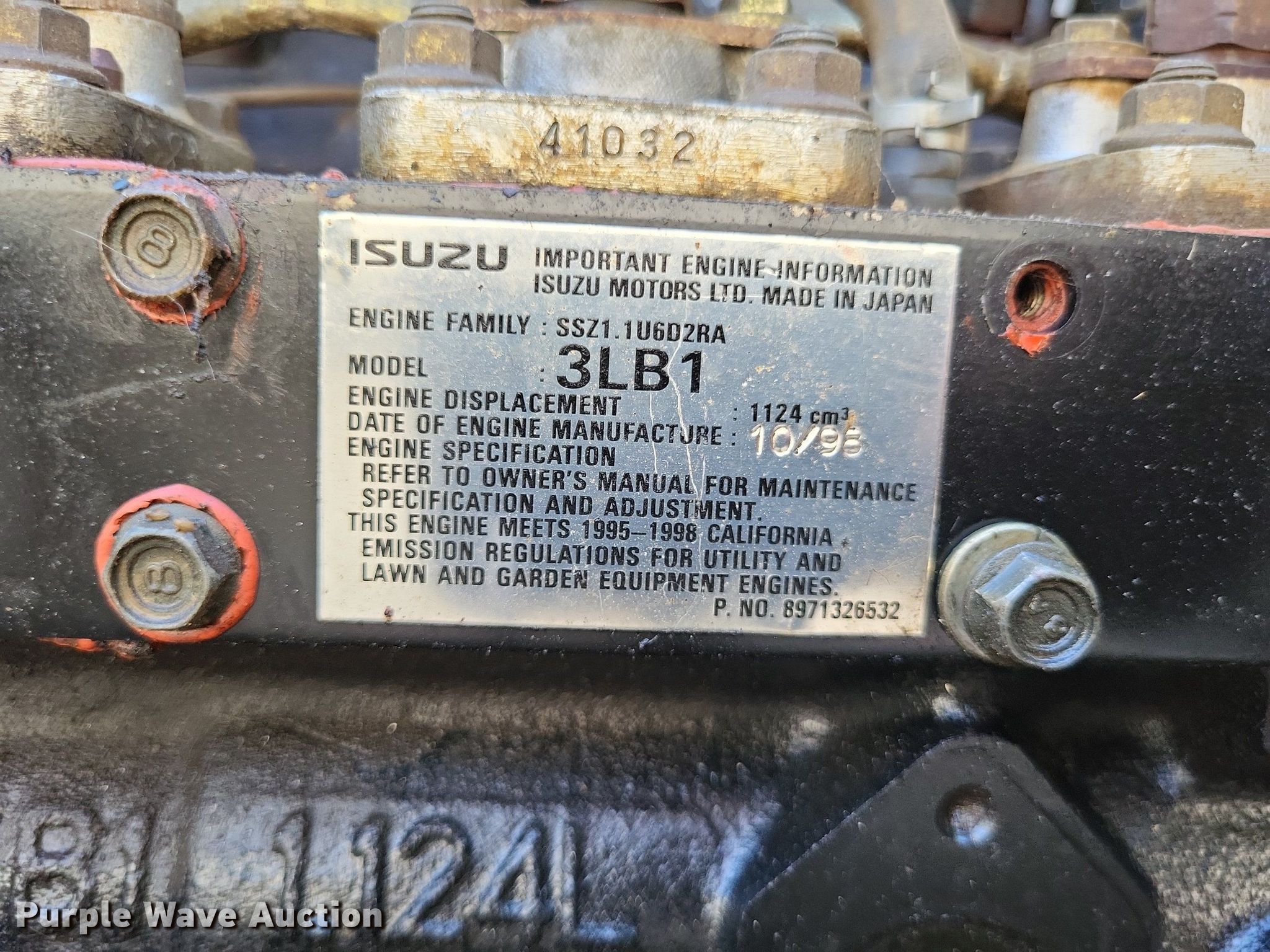 1998 Night Buster 4000 light plant. Hours: 3,305 on meter, VIN: 5AJLS1612WB001094. Engine Isuzu 3LB1, Cylinders: 3, Fuel type: Diesel. Features Generator Pancake Synchronous AC Generator , Electric start, Fuel tank, Light plant Bulbs: 4, Hoist: Manual, Stabilizers. Trailer 9' L x 70" W, Ball hitch size: 2", Suspension: Spring, Axles: Single, Tire size: 205/75R15. Notes Dead battery. Transfer of ownership documentation will be a bill of sale. HeavyRig Equipment Sales & Rental. 840 Fleetwood Drive. Hot Springs, AR 71913