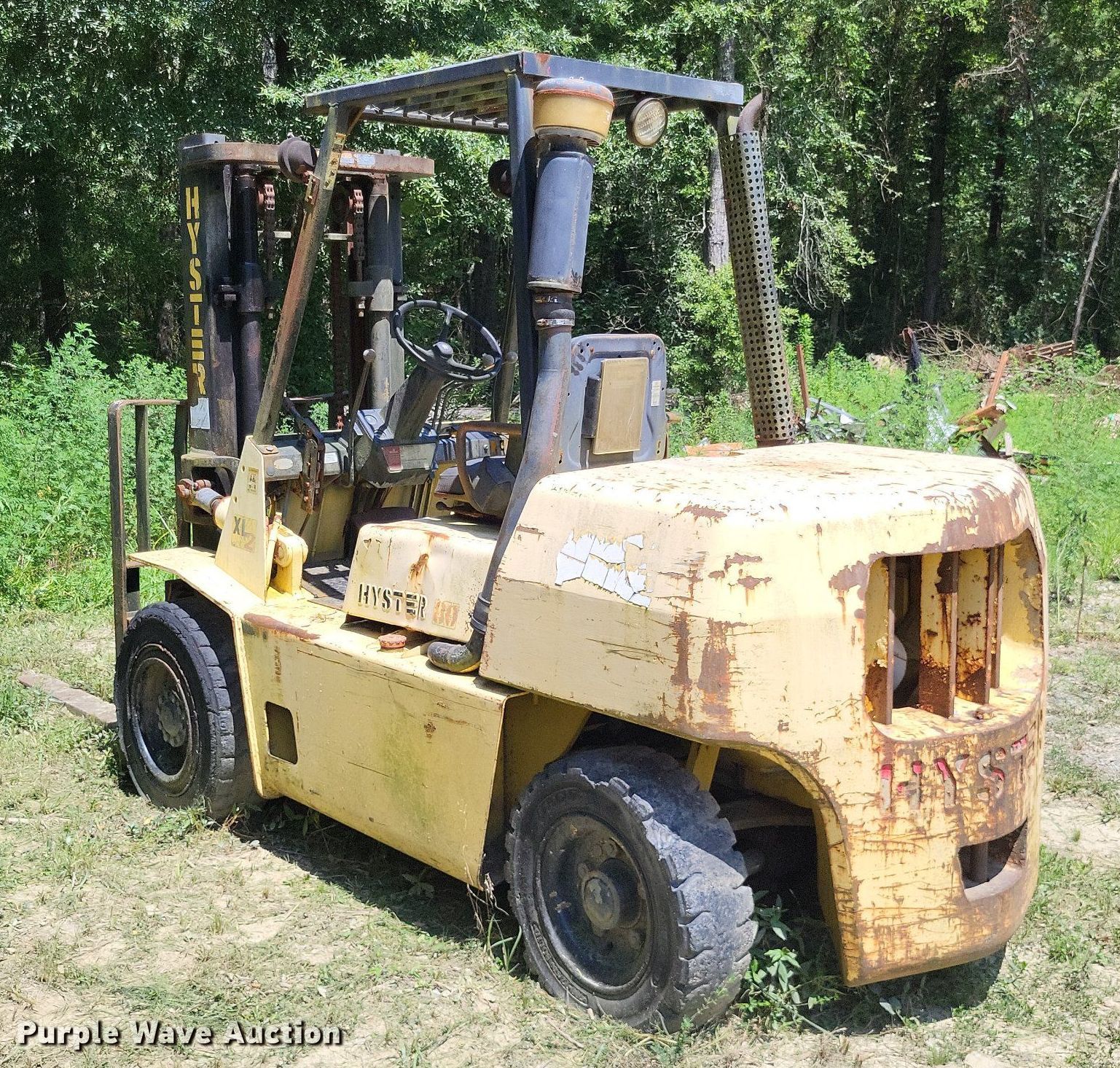 Purple Wave is selling a used Warehouse Forklift in Arkansas. This item is a Hyster H80XL forklift with the following: Hours: 3,495 on meter, Serial: GC05D02530P