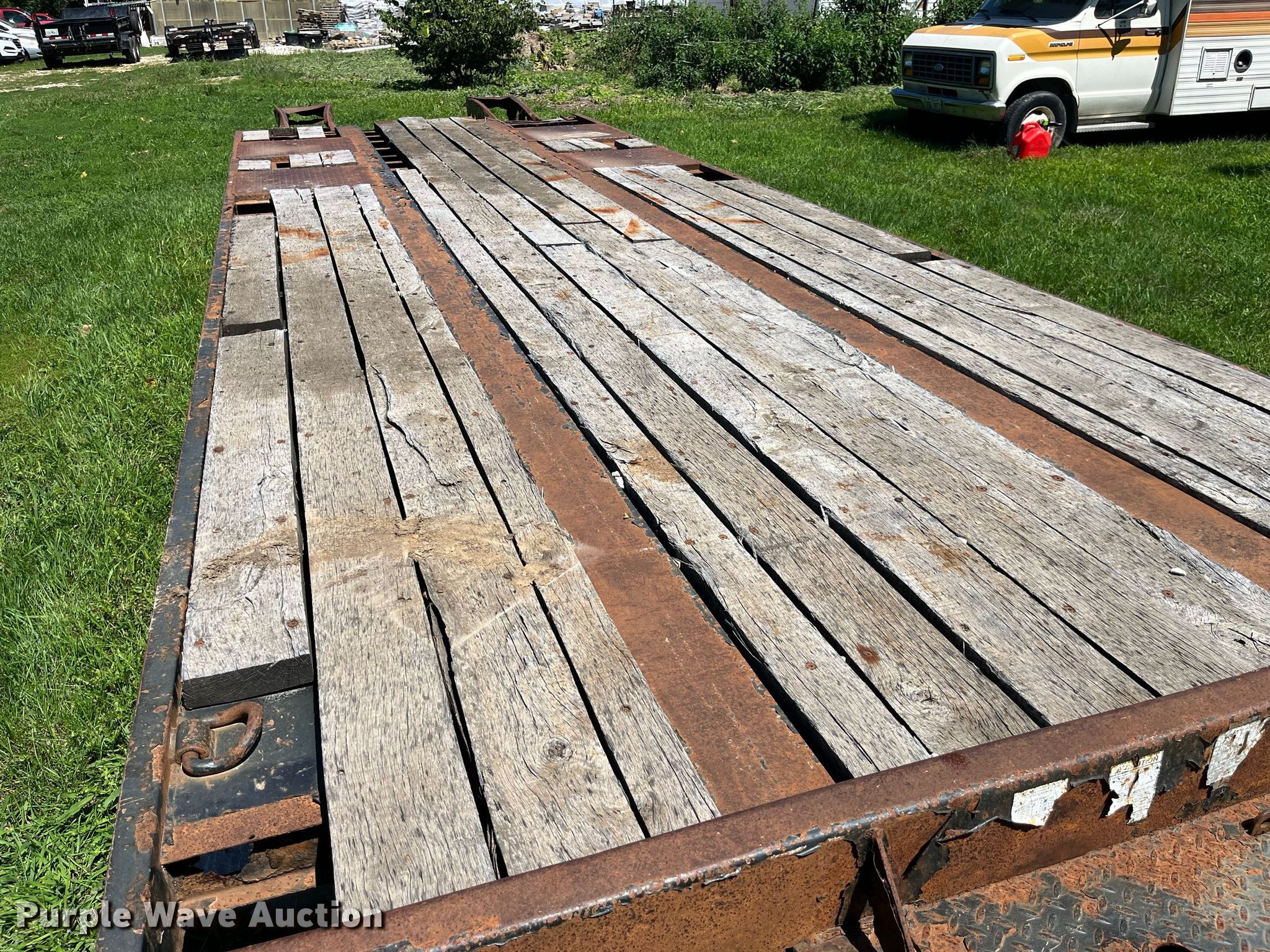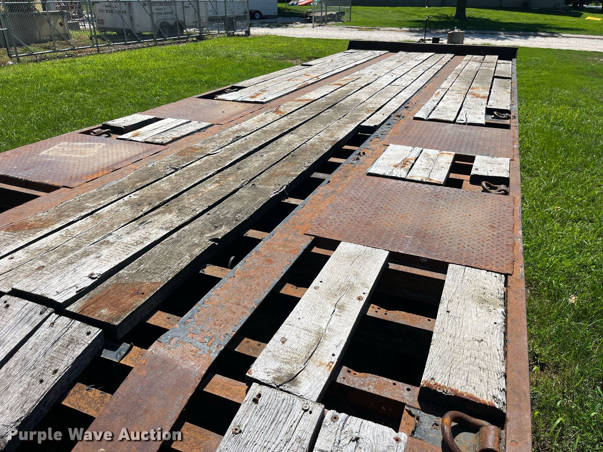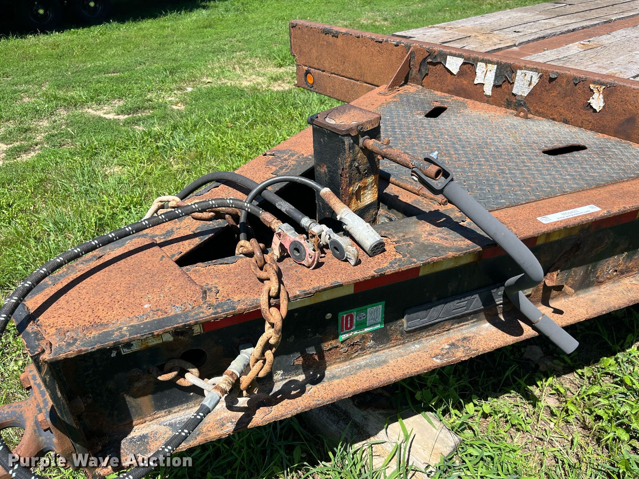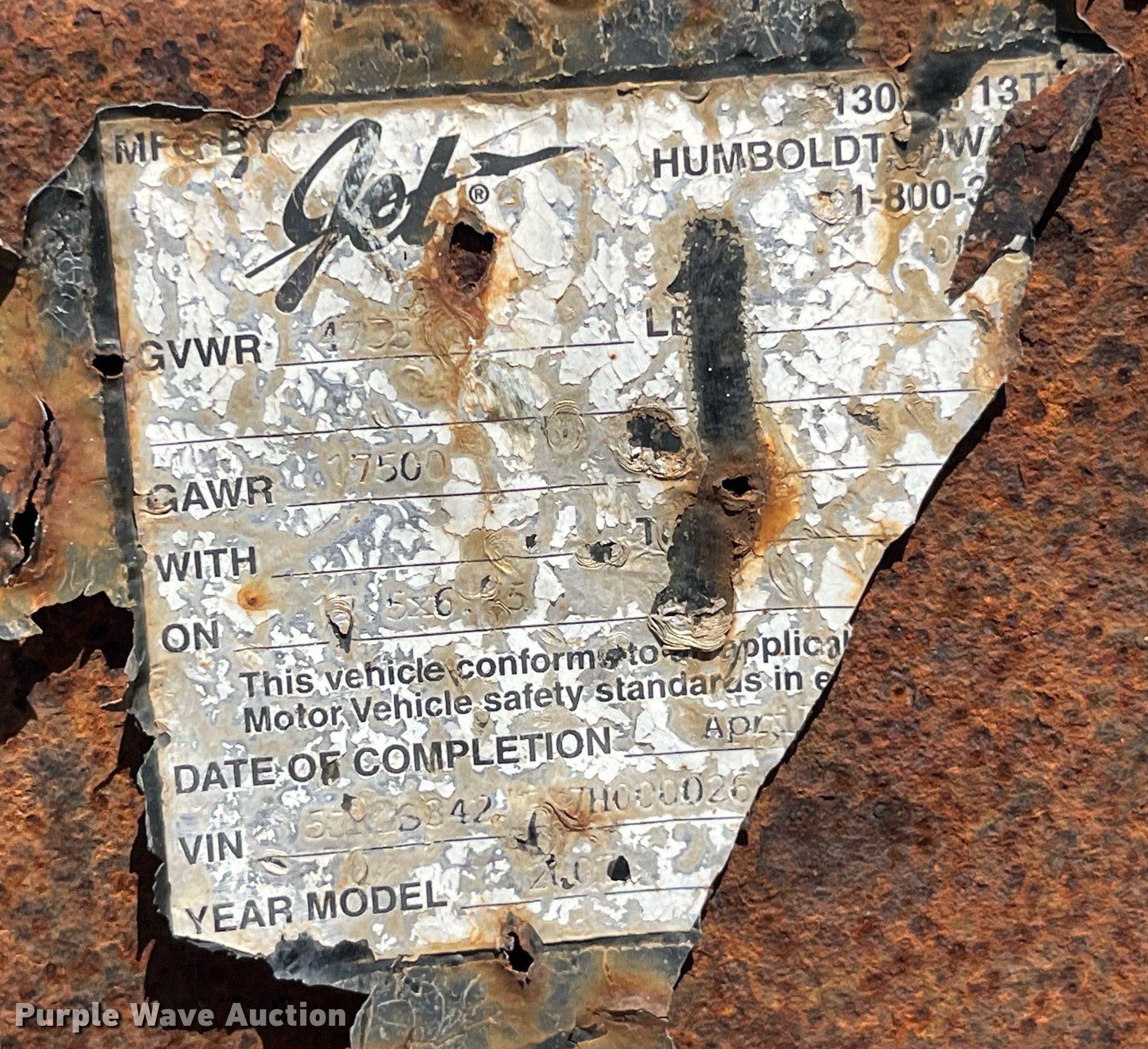 2007 Jet Co equipment trailer. VIN: 5JNTS34277H000026. Dimensions Overall: 35' L x 101.75" W, Deck: 24' L x 101.75" W, Tail length: 57.5", Ramps: Manual Length: 53". Features Deck type: Steel, Wood. Chassis Hitch: Pintle, Landing gear: Single, Suspension: Spring, Brakes: Air, Axles: Tandem. Tires Steel wheels, Size: 215/75R17.5. Illinois title. Title distribution may be delayed up to 14 days from verification of funds. JH Concrete. 2505 South 12th Street. Quincy, IL 62301