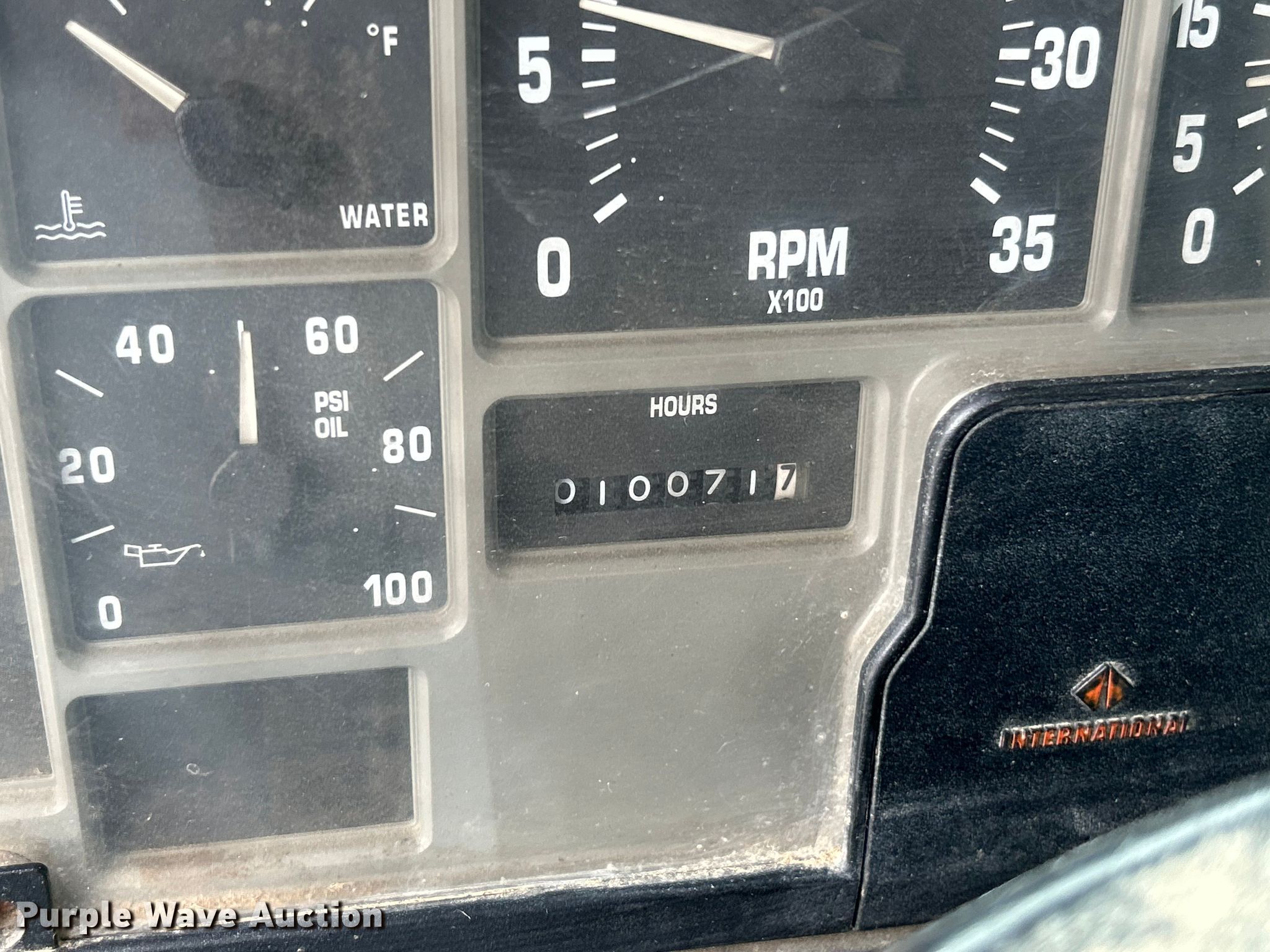 1997 International 4700 dump truck. Miles: 103,836 on odometer, Hours: 10,071 on meter, VIN: 1HTSCAAN7VH442026. Engine International, Displacement: 7.6L, Cylinders: 6, Fuel type: Diesel. Transmission Allison, Automatic. Chassis Axles: Single, Suspension: Spring, Brakes: Air, PTO, GVWR: 29,000 lbs FAWR: 10,000 lbs, RAWR: 19,000 lbs, Wheelbase: 152". Interior AC, Heat, Heated mirrors. Features Dump bed 10' x 96" W, Side height: 30", Side board height: 9", Bed type: Steel, Roll tarp, Ram: Single , End gate: Manual. Tires Size: 11R22/5. Notes Air leak , Non operational AC. Missouri title. Title distribution may be delayed up to 14 days from verification of funds. Turfmasters, Inc.. Moscow Mills, MO 63362