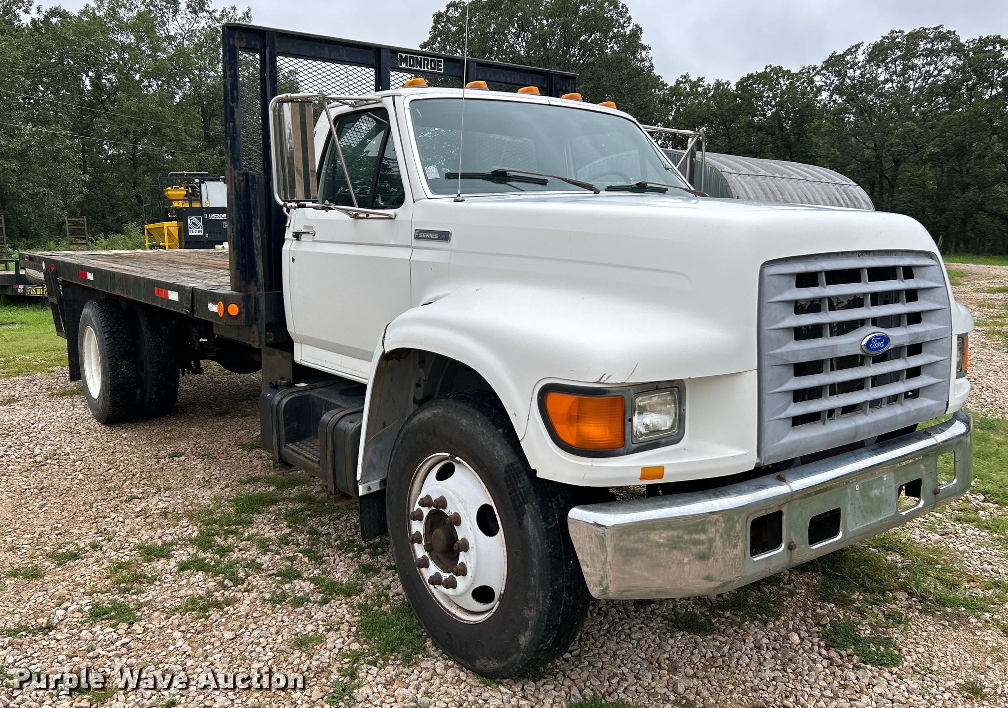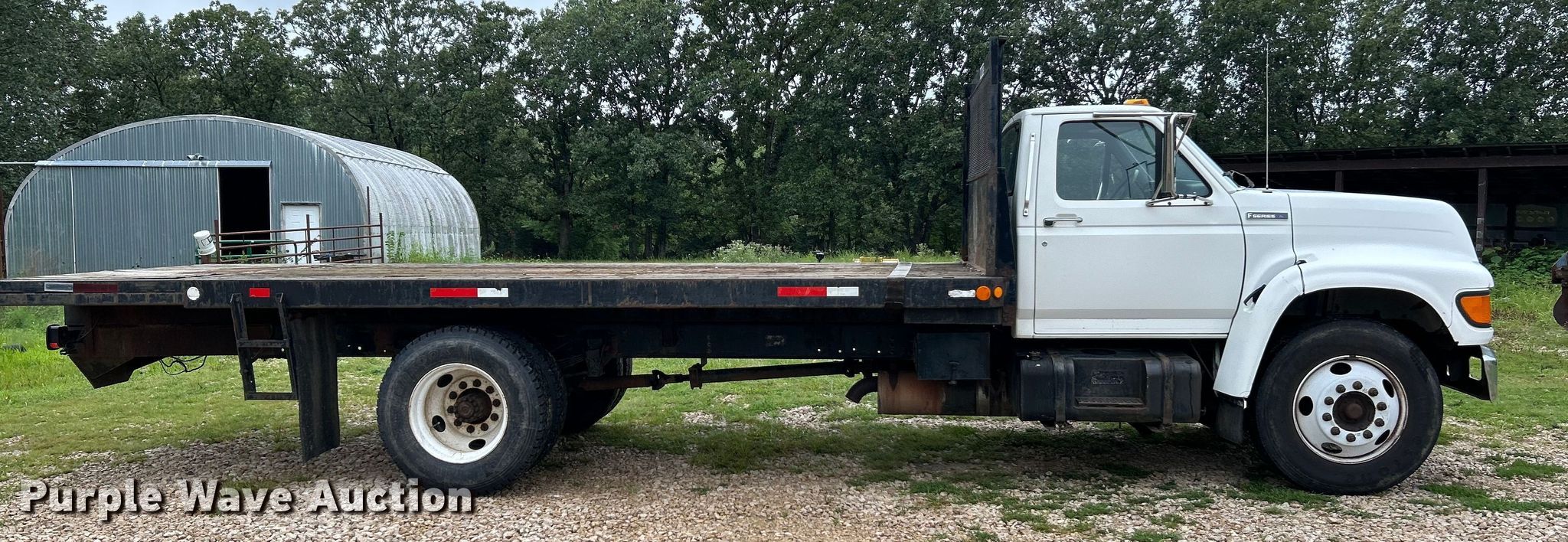 This 1997 Ford F800 flatbed truck will sell to the highest bidder regardless of price.