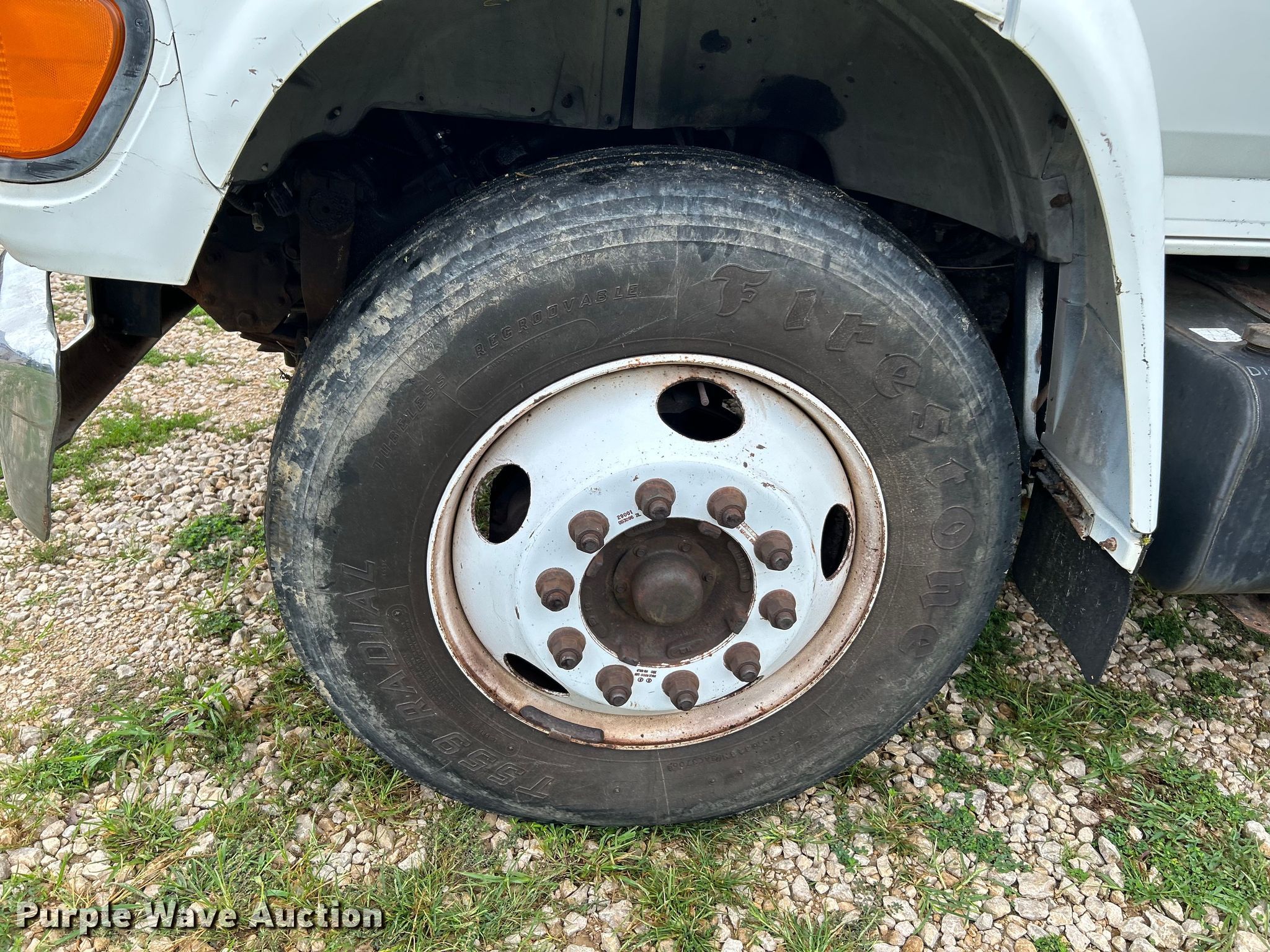 1997 Ford F800 flatbed truck. Miles: 126,238 on odometer, VIN: 1FDNF80C8VVA31970. Engine Cummins, Displacement: 5.9L, Cylinders: 6, Fuel type: Diesel. Transmission Automatic. Chassis Axles: Single, Suspension: Spring, Brakes: Hydraulic, GVWR: 26,000 lbs, Wheelbase: 225". Interior AC, Heat, Brake controller. Features Flatbed Monroe, 20' L x 96" W. Tires Size: 10R22.5. Missouri title. Title distribution may be delayed up to 14 days from verification of funds. Priority Communications, Inc.. Sullivan, MO 63080