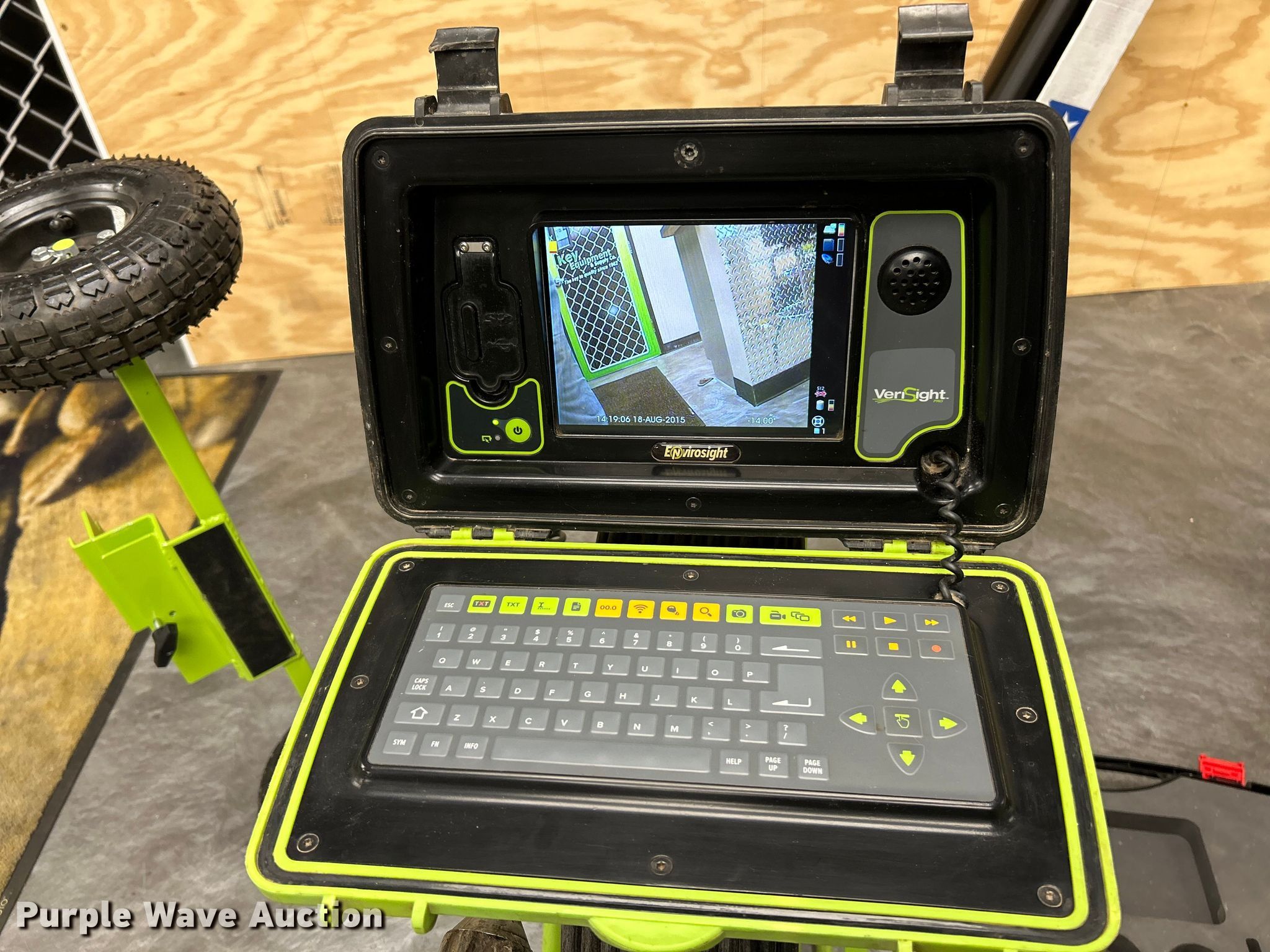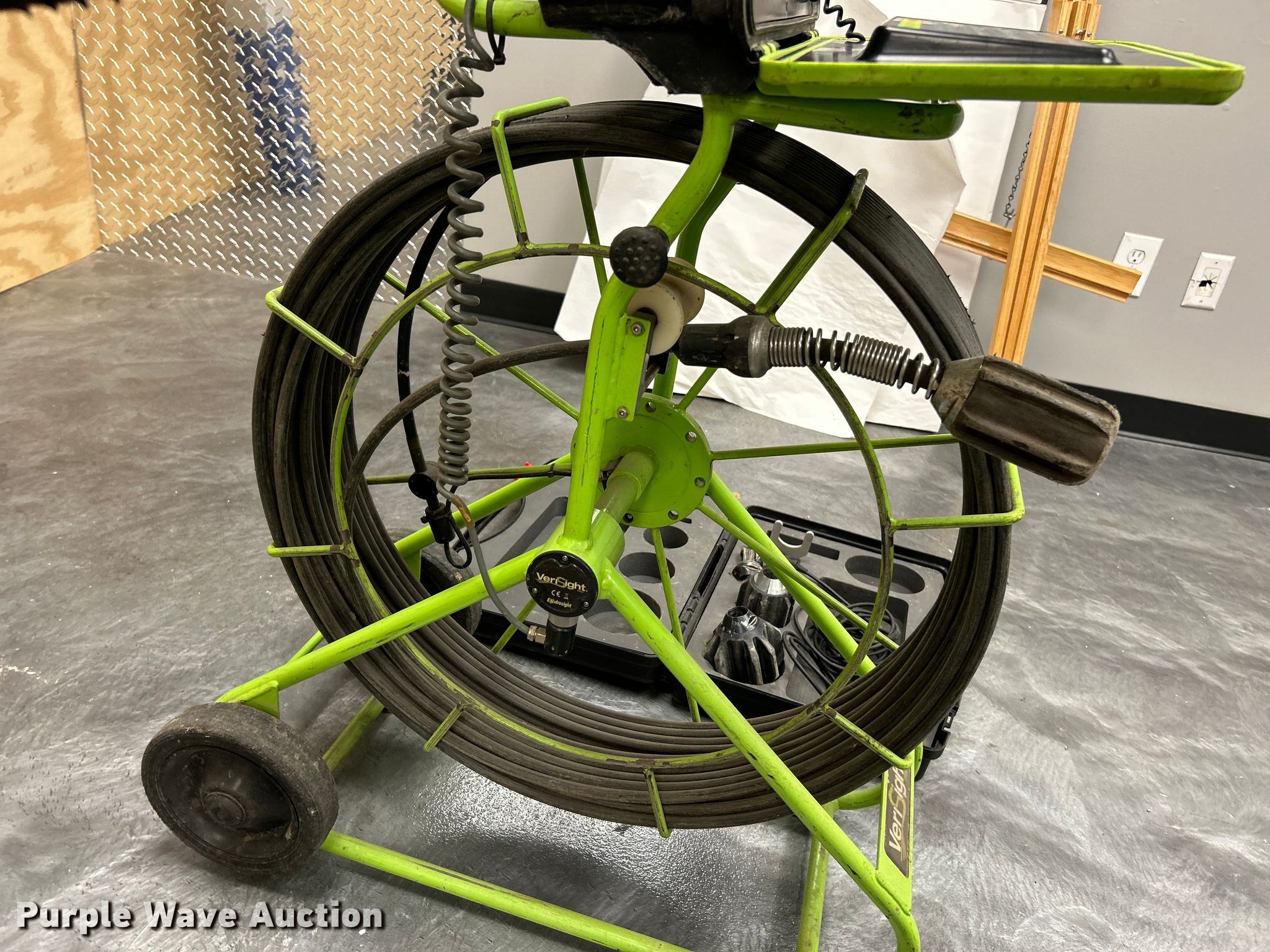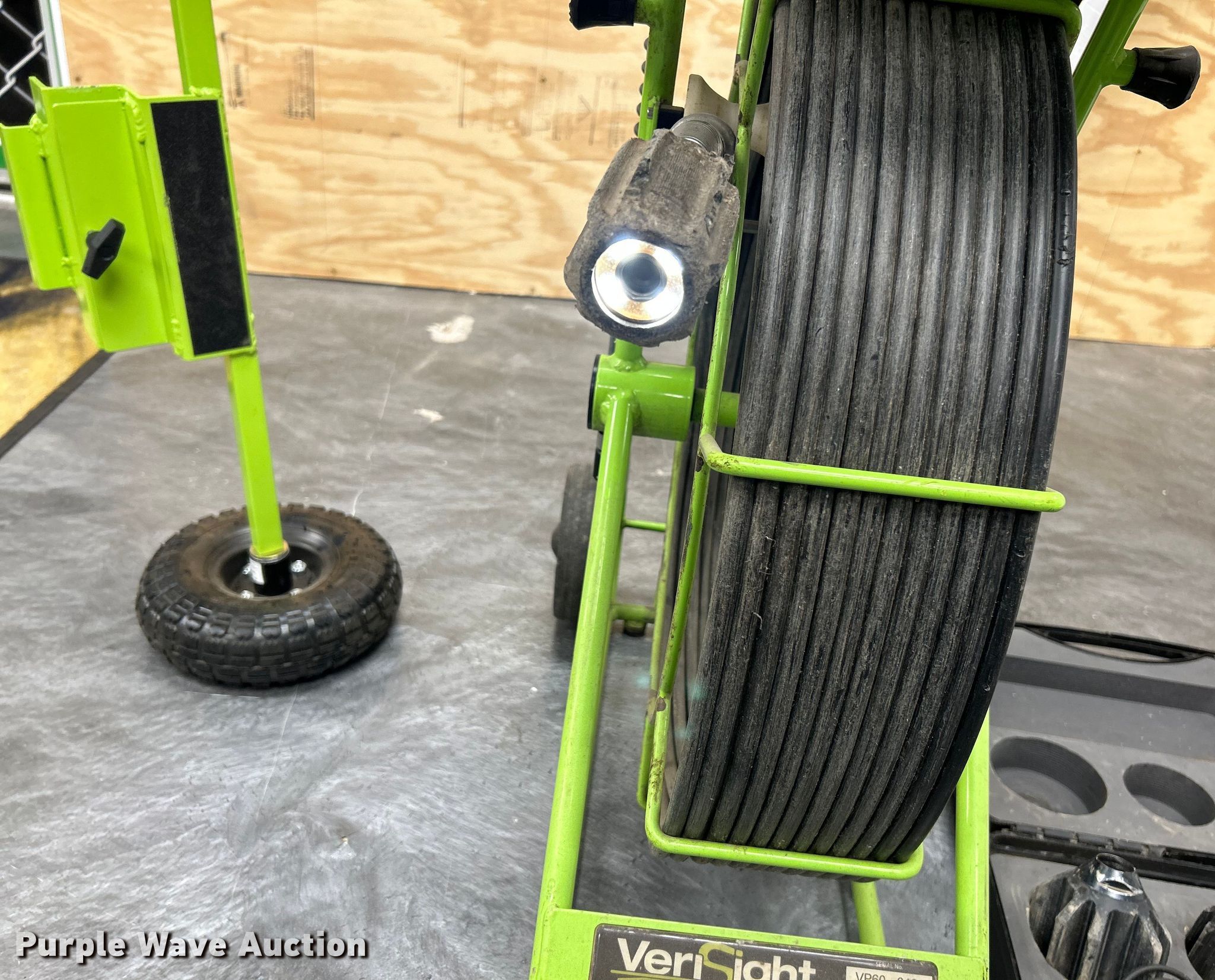 Purple Wave is selling a used Tools in Missouri. This item is a Envirosight Verisight Pro pipe inspection system with the following: Display controller, Camera, 200'L cable, Kelkart, 4.10/3.50-4 tires, Serial: VP60-0401