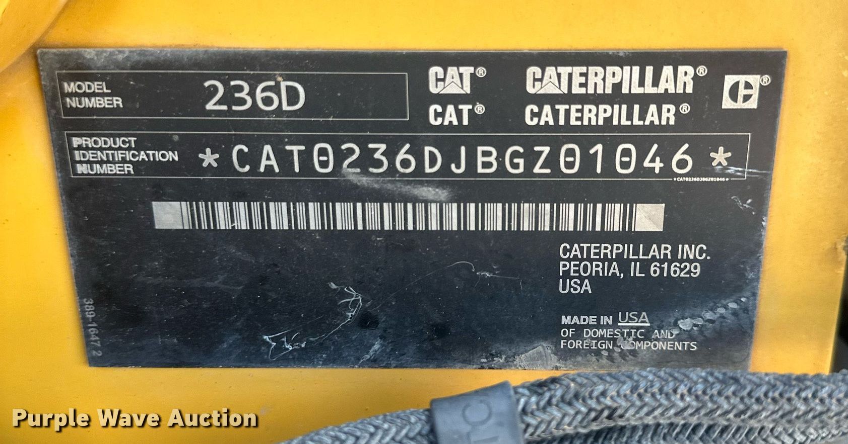 Purple Wave is selling a used Skid Steer Loader in Kansas. This item is a 2014 Caterpillar 236D skid steer loader with the following: Hours: 6,020 on meter, Serial: CAT0236DJBGZ01046