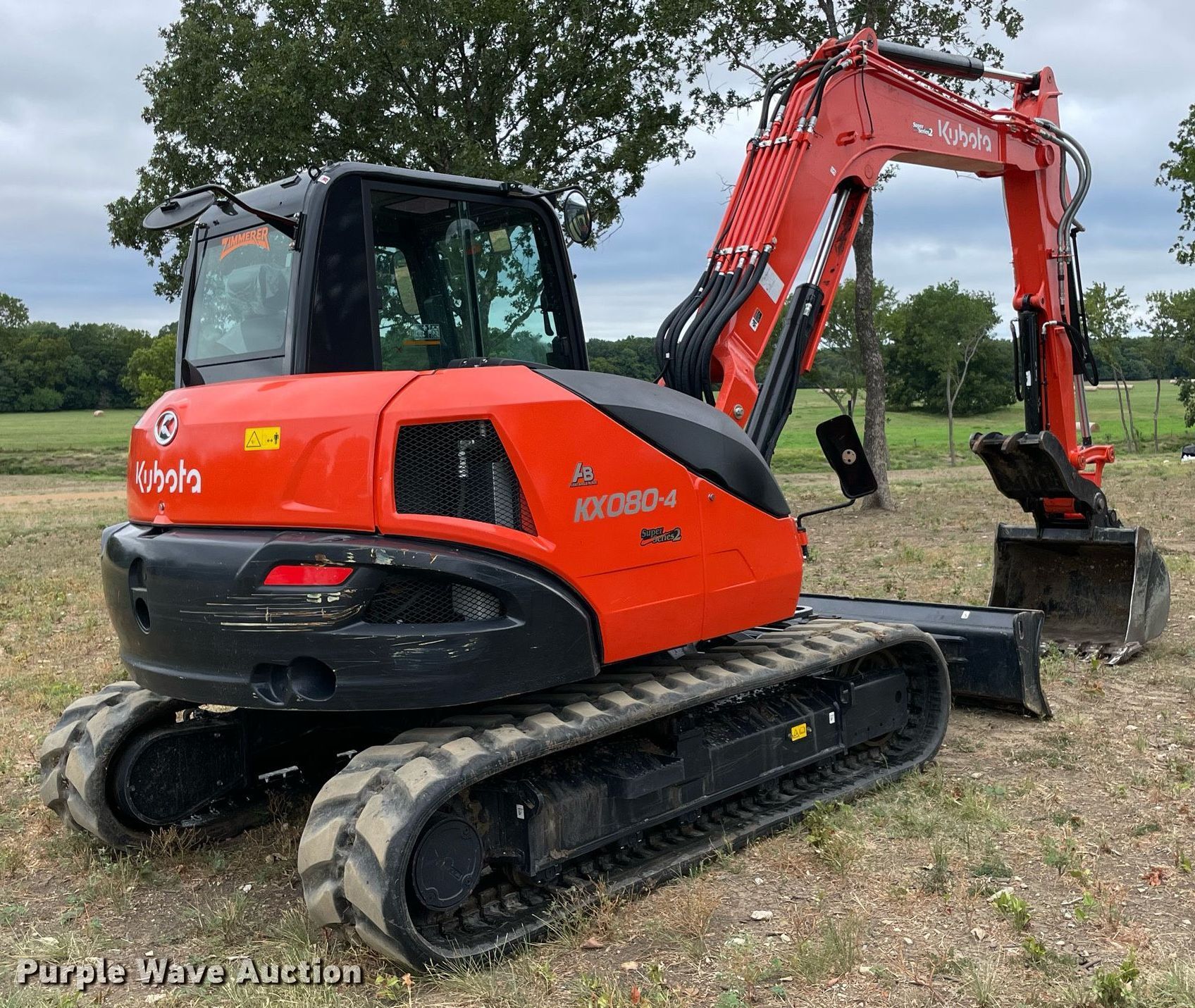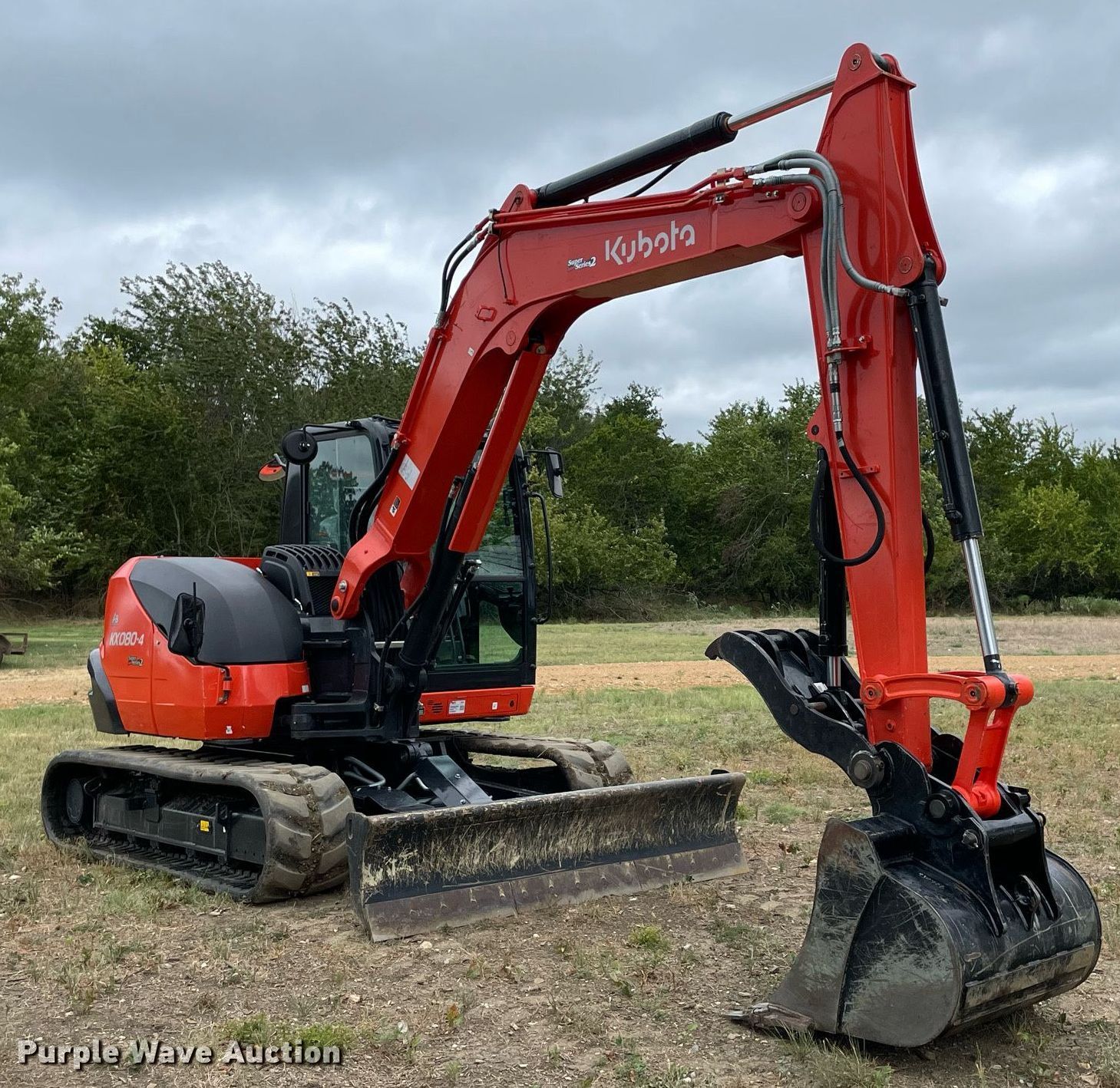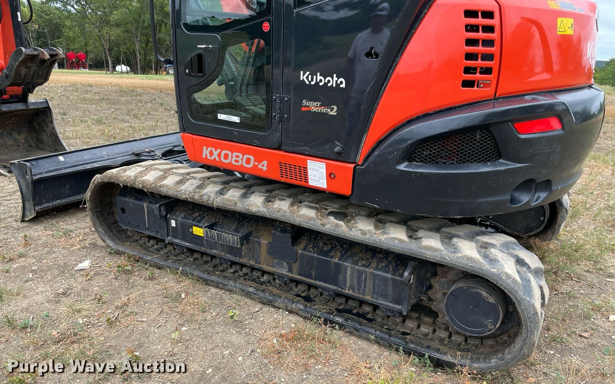 Purple Wave is selling a used Mini Excavator in Oklahoma. This item is a 2022 Kubota KX080-4S2 mini excavator with the following: Hours: 169 on meter, Serial: KBCDZ84CJN3A13117