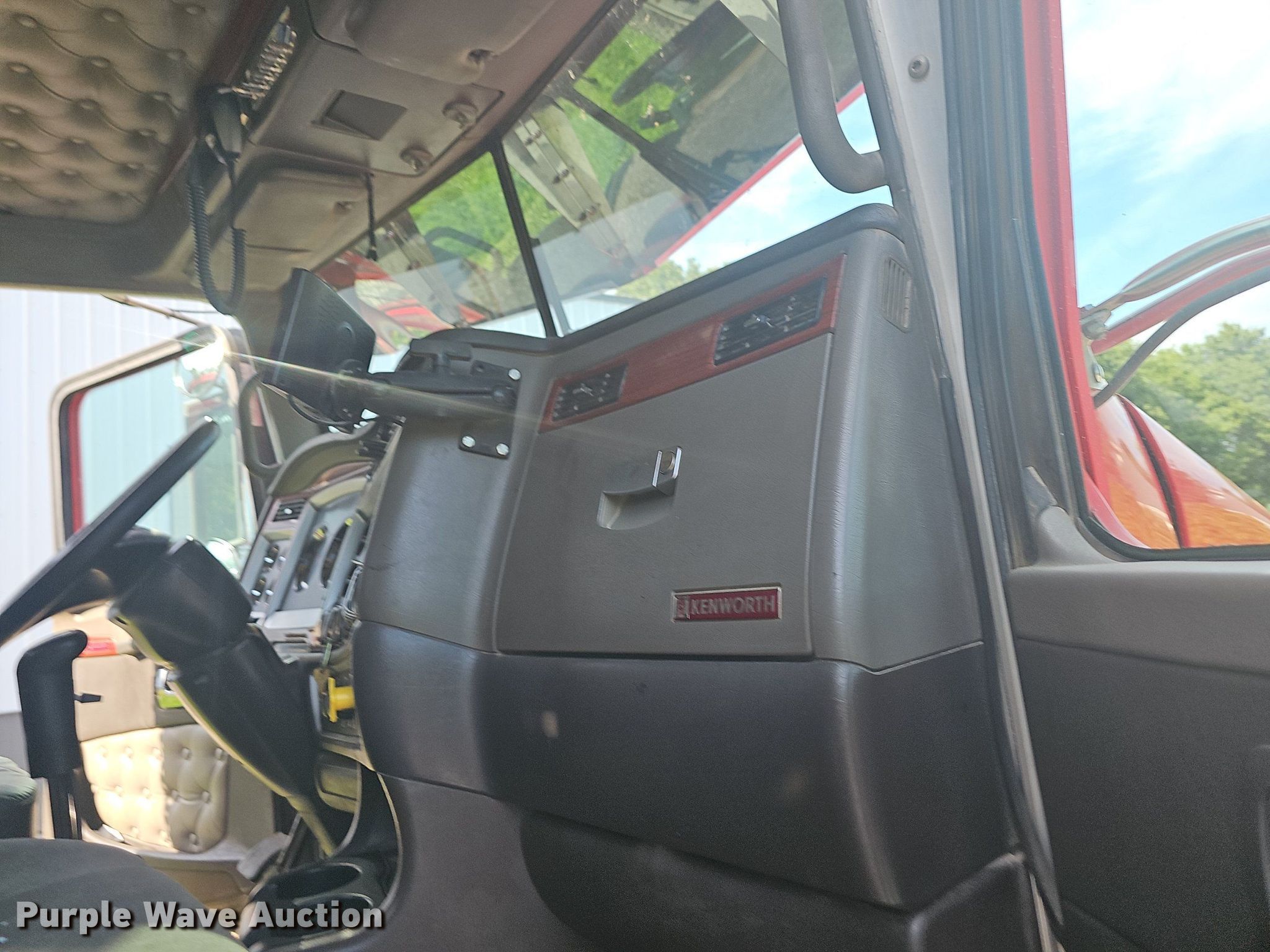 2007 Kenworth T800 dump truck. Miles: 540,001 on odometer, VIN: 1NKDXUTX87J148414. Engine Caterpillar C13, Displacement: 12.0L, Cylinders: 6, Fuel type: Diesel. Transmission Eaton Fuller 18-9-19-B, Speed: 18, Manual. Chassis Axles: 5, Pusher axle Steerable, Differential lock: Full, Suspension: Spring over walking beam, Brakes: Air, PTO. Interior AC, Heat, Heated mirrors, Cruise control. Features Dump bed Ox Bodies Inc 20FT18/23, Capacity: 23 cu.yd., 20' L x 92" W, Side height: 44", Side board height: 24", Bed type: Barrel, Liner, Roll tarp, Ram: Single , End gate: Air operated. Tires Front: 425/65R22.5, Rear: 11R24.5, Lift axle: 10R17.5. Notes Dash warning indicator: ABS. Missouri title. Title has a lien that will be released following the close of the auction. Title distribution may be delayed up to 30 days from verification of funds. 11341 US 160 South. Spokane, MO 65754