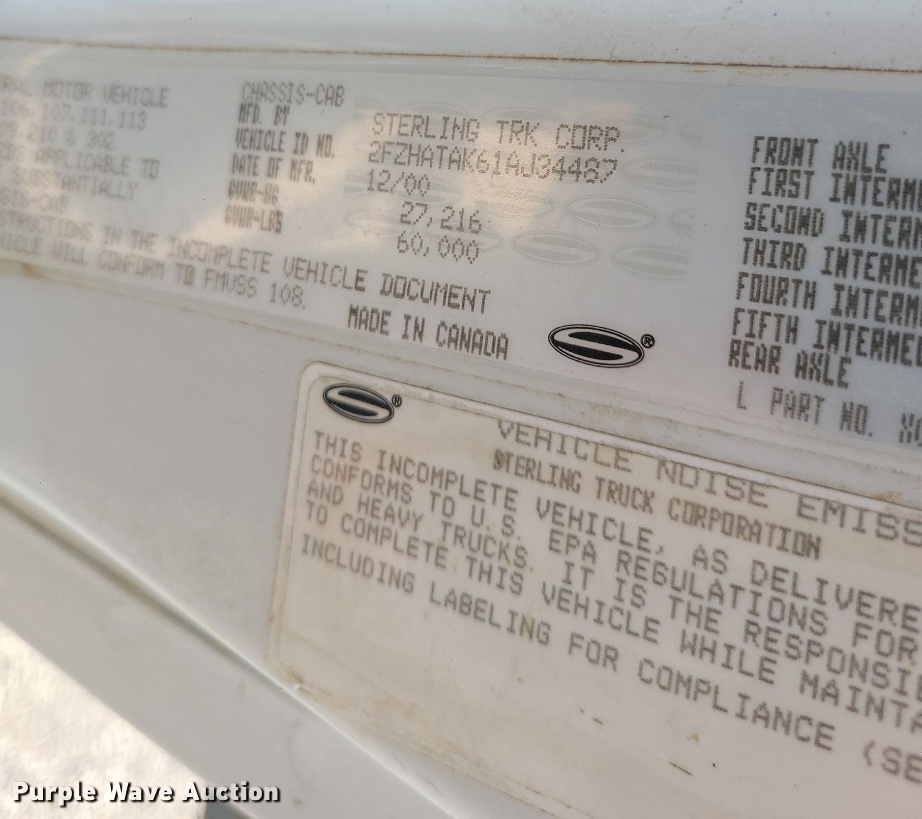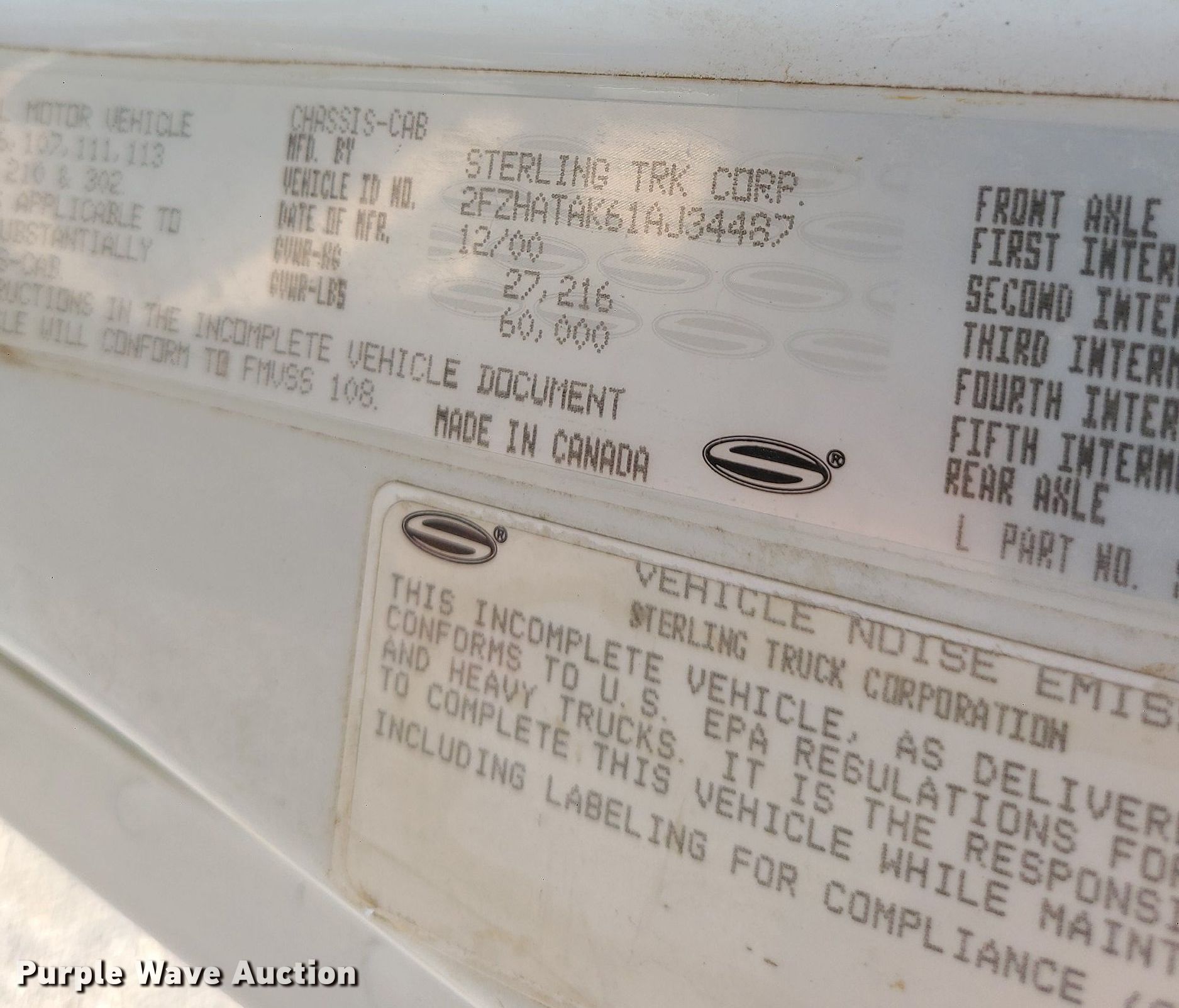Purple Wave is selling a used Crane Truck in Missouri. This item is a 2001 Sterling LT7500 crane truck with the following: Miles: 116,562 on odometer, VIN: 2FZHATAK61AJ34487