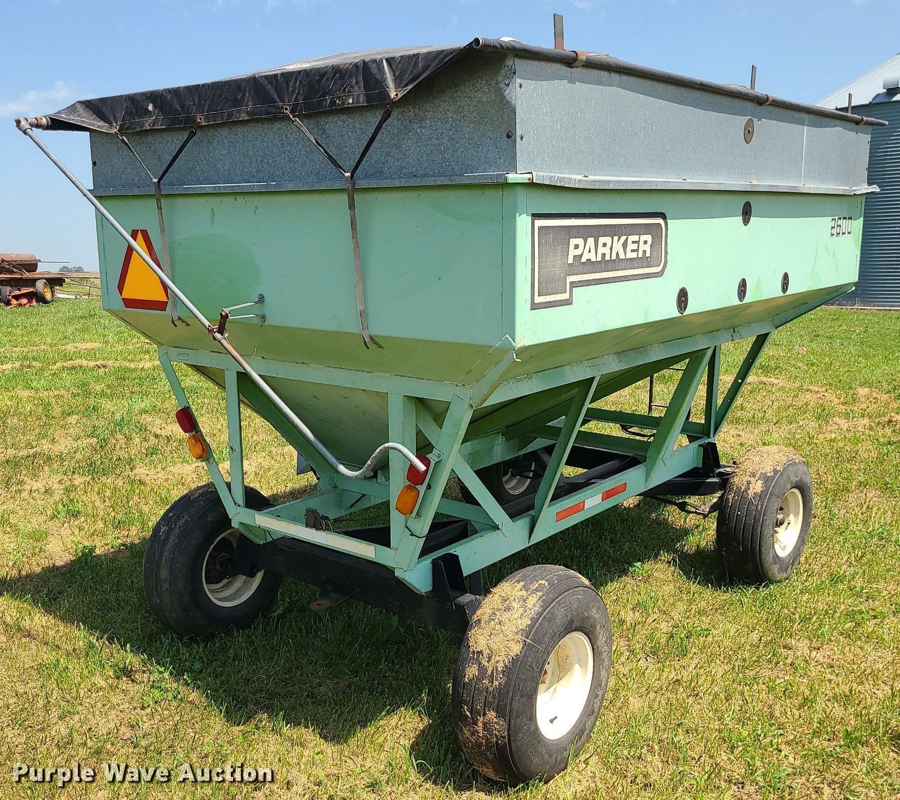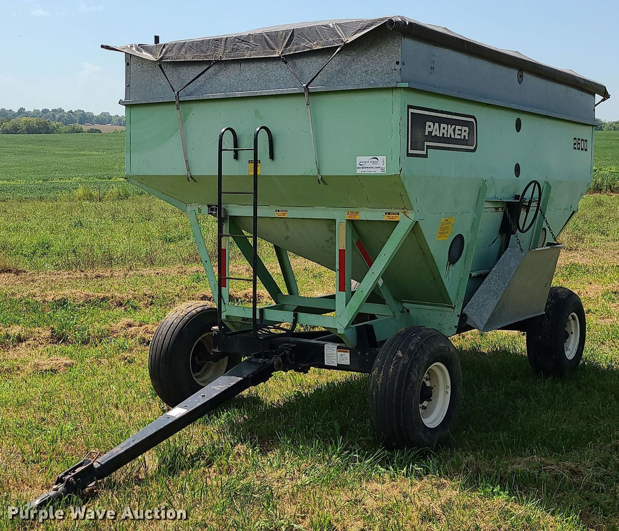 Purple Wave is selling a used Grain Cart or Gravity Wagon in Missouri. This item is a Parker 2600 gravity wagon with the following: Shut-off gate: Manual, Roll tarp