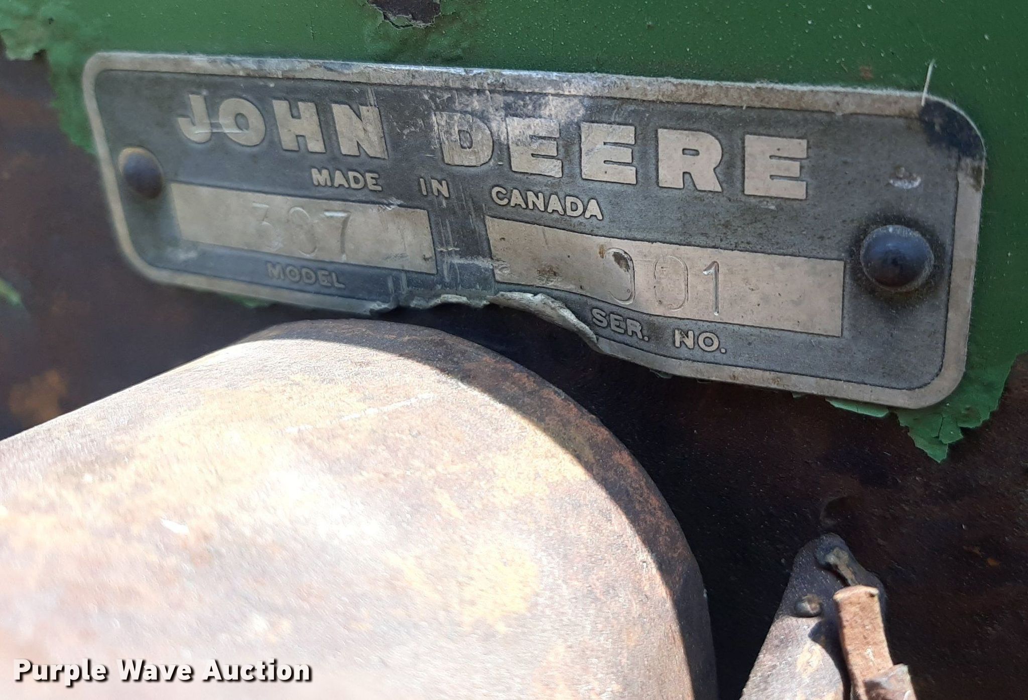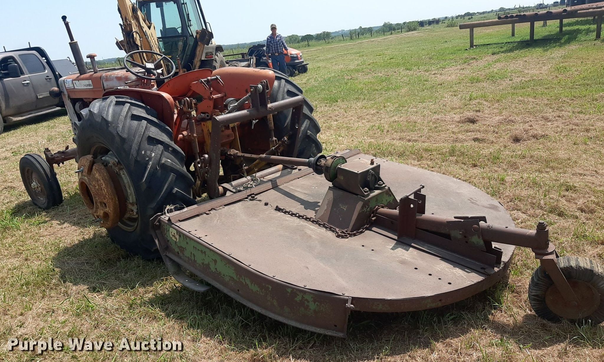 Allis Chalmers tractor. Miles or hours may vary, unit still in use. Engine Cylinders: 4, Fuel type: Gas. Transmission Manual, 4F - 1R. Features PTO: 540, Three point Top link, Hydraulic remote sets Rear: 1. Tires Front: 5.50-16, Rear: 14.9-26, Wheel weights: 2. John Deere 307 rotary mower Serial: 901. Features Width: 6', PTO: 540. Tires Size: 14", Solid. Butler Brothers Inc.. Winfield, KS 67156