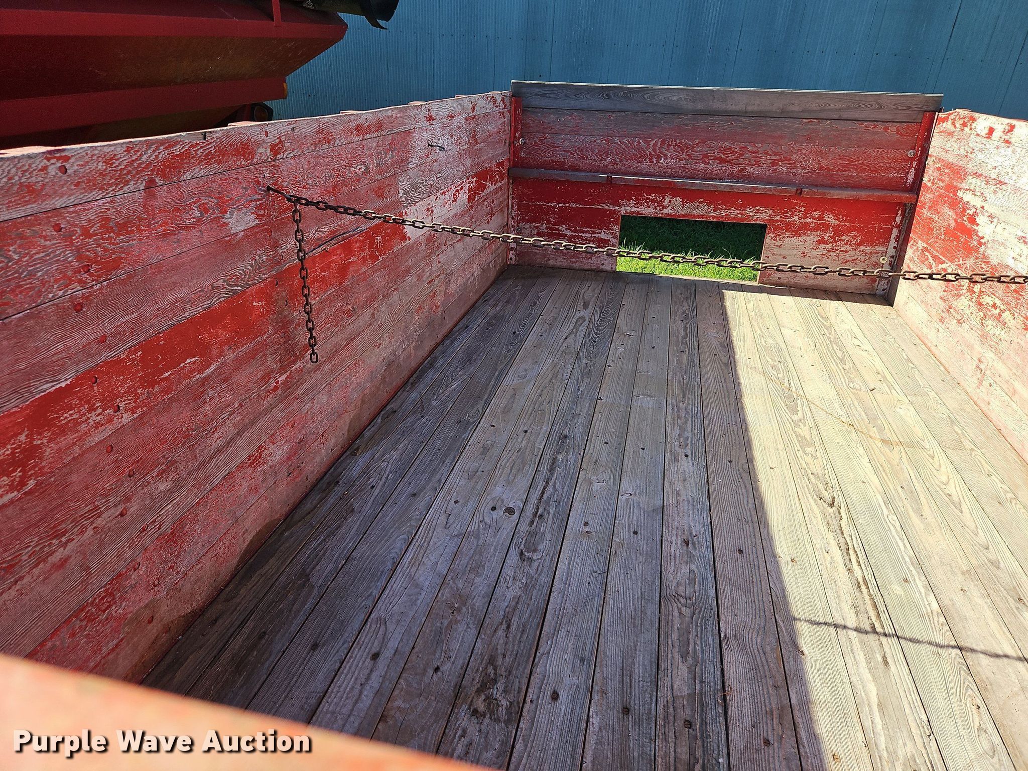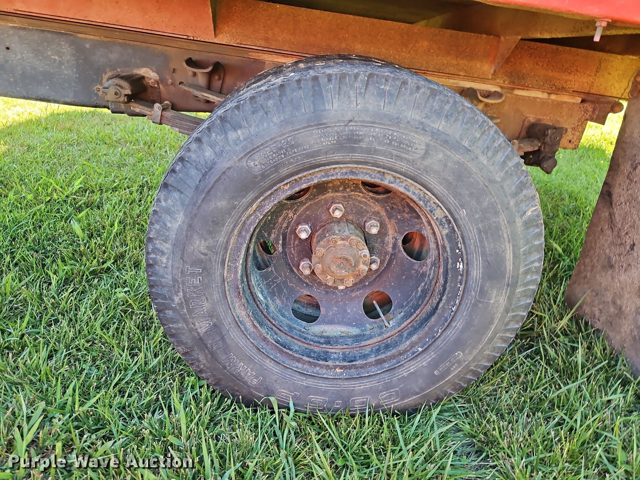 Shop built grain trailer. Dimensions. Overall: 20' 6" L x 7' 9" W, Body: 14' L x 7' 9" W, Side height: 40". Chassis Landing gear: Single, Suspension: Spring. Tires Size: 8.25-20. Transfer of ownership documentation will be a bill of sale. 4820 E Chouteau Rd. Hume, MO 64752