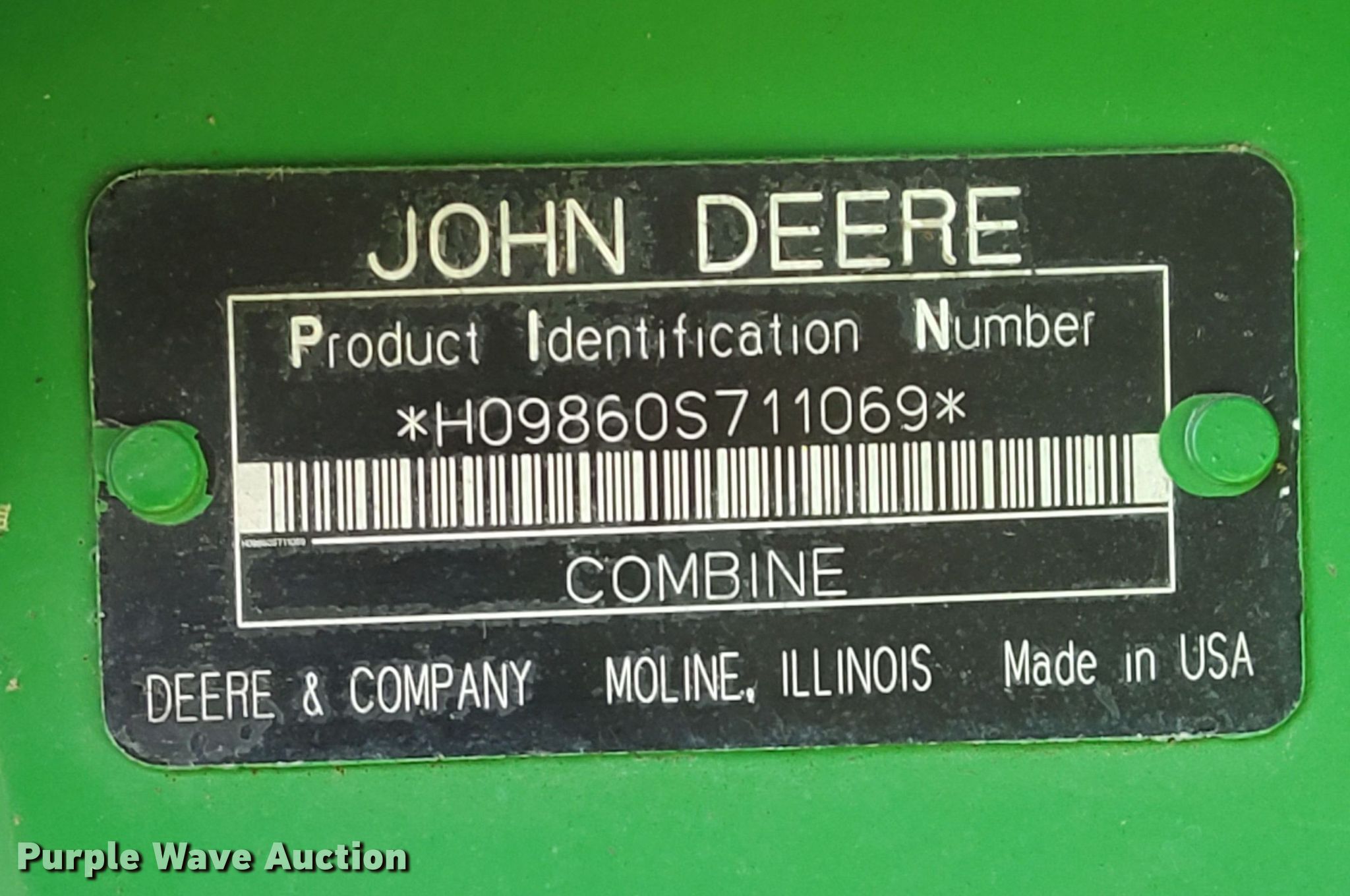 Purple Wave is selling a used Combine in Texas. This item is a 2005 John Deere 9860 STS combine with the following: Engine hours: 4,719 on meter, Separator hours: 3,390 on meter, Serial: H09860S711069