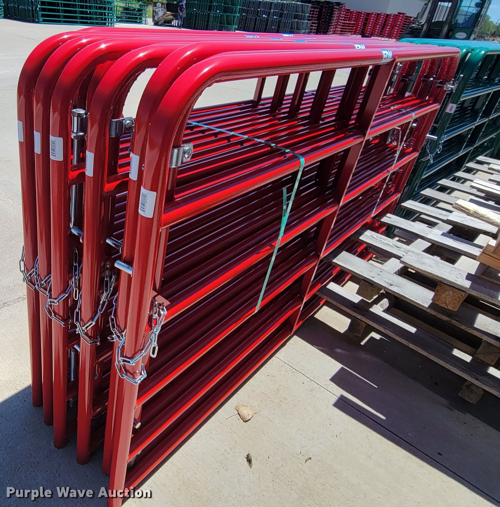 Purple Wave is selling a used Livestock Equip. in Kansas. This item is a (12) B&W PT18008R gates with the following: 8'W, 1 3/4" diameter x 18 gauge construction, Hardware