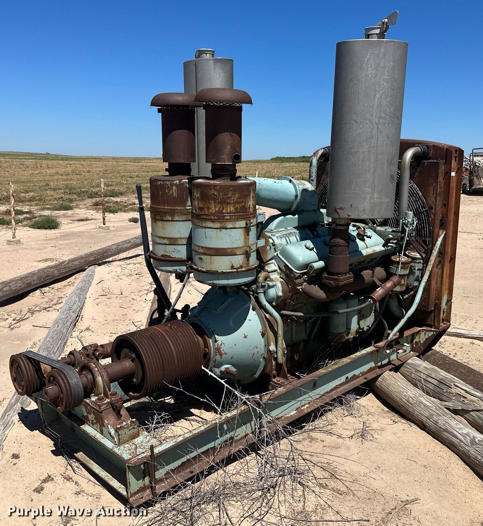 Detroit Diesel 12 cylinder diesel engine. 4' x 9' skid, Unknown operating condition. Cobalt Cattle Company. 19016 Rd I. Kismet, KS 67859