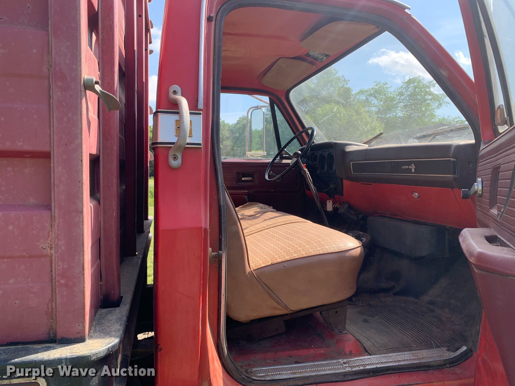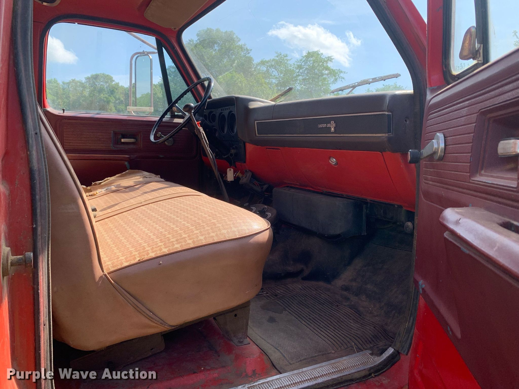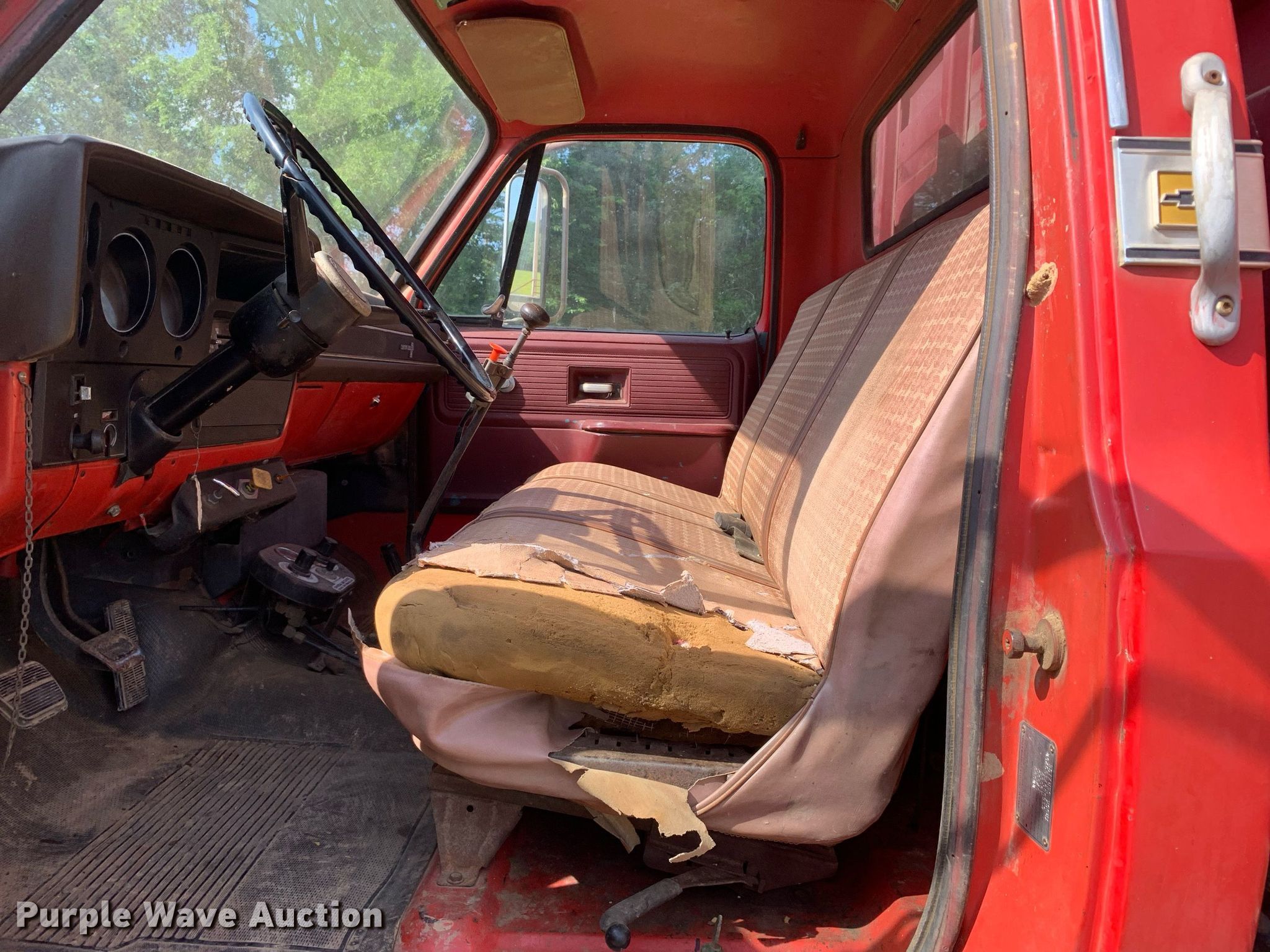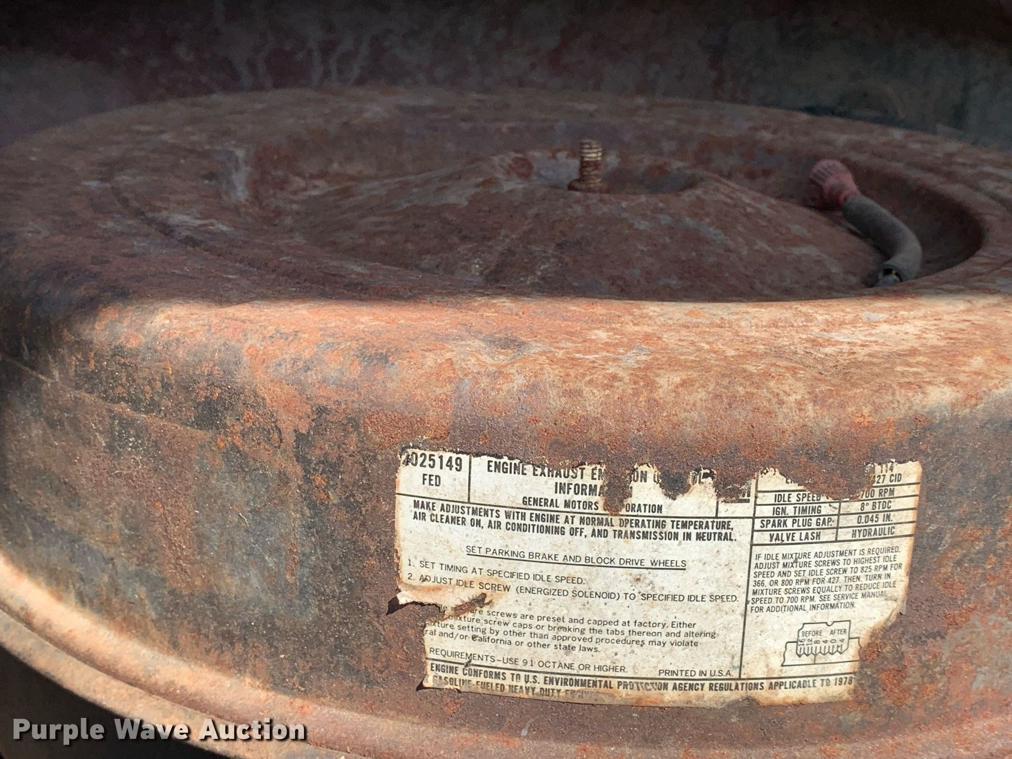 1979 Chevrolet C70 grain truck. Miles: 56,000 on odometer, VIN: C16D89V103792. Engine Displacement: 427 C.I.D., Cylinders: 8, Fuel type: Gas. Transmission Manual, Speed: 10. Chassis Axles: Tandem, Tag axle, Suspension: Spring Dump valves, Brakes: Air, GVWR: 22,000 lbs FAWR: 7,000 lbs, RAWR: 15,000 lbs. Interior AC. Features Dump bed Knapheide, 16' L x 7' 8" W, Side height: 64", Bed type: Steel, Roll tarp, Ram: Dual, End gate: Manual. Tires Size: 9.00-20. Notes Non-operational AC. Arkansas title. Title distribution may be delayed up to 14 days from verification of funds. Stover Farms. 530 State Highway 287. Morrilton, AR 72110