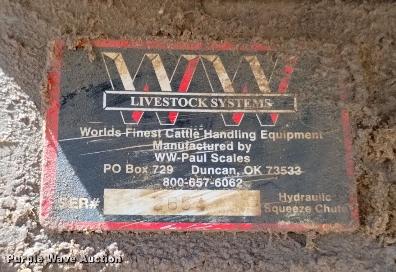 Take a look at this used WW squeeze chute being sold on September 20th, 2023 in the SOLD! September 20 Ag Equipment Auction made by WW. Take a look at all of the item information below or take a look at similar auctions for Livestock Equipment.