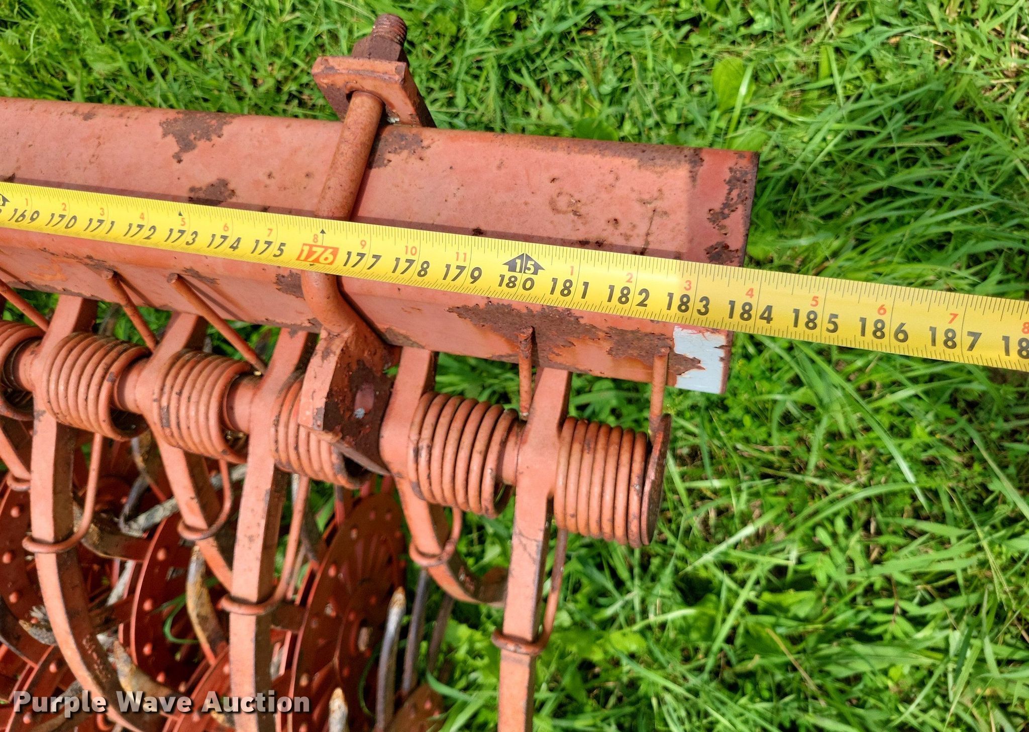 (3) pieces of tillage equipment. International 45 field cultivator. Overall width: 15' 10". Features Shanks: 32, Sweep width: 9". Tires Tire size: 15". Rotary hoe Overall width: 15'. Features Hitch: Three point. Notes Approx. 2 rotary wheels missing. International 55 chisel Overall width: 11'. Features Shanks: 11, Sweep width: 2". Tires Tire size: 205/75R14. Walker Products, Inc.. Bourbon, MO 65441