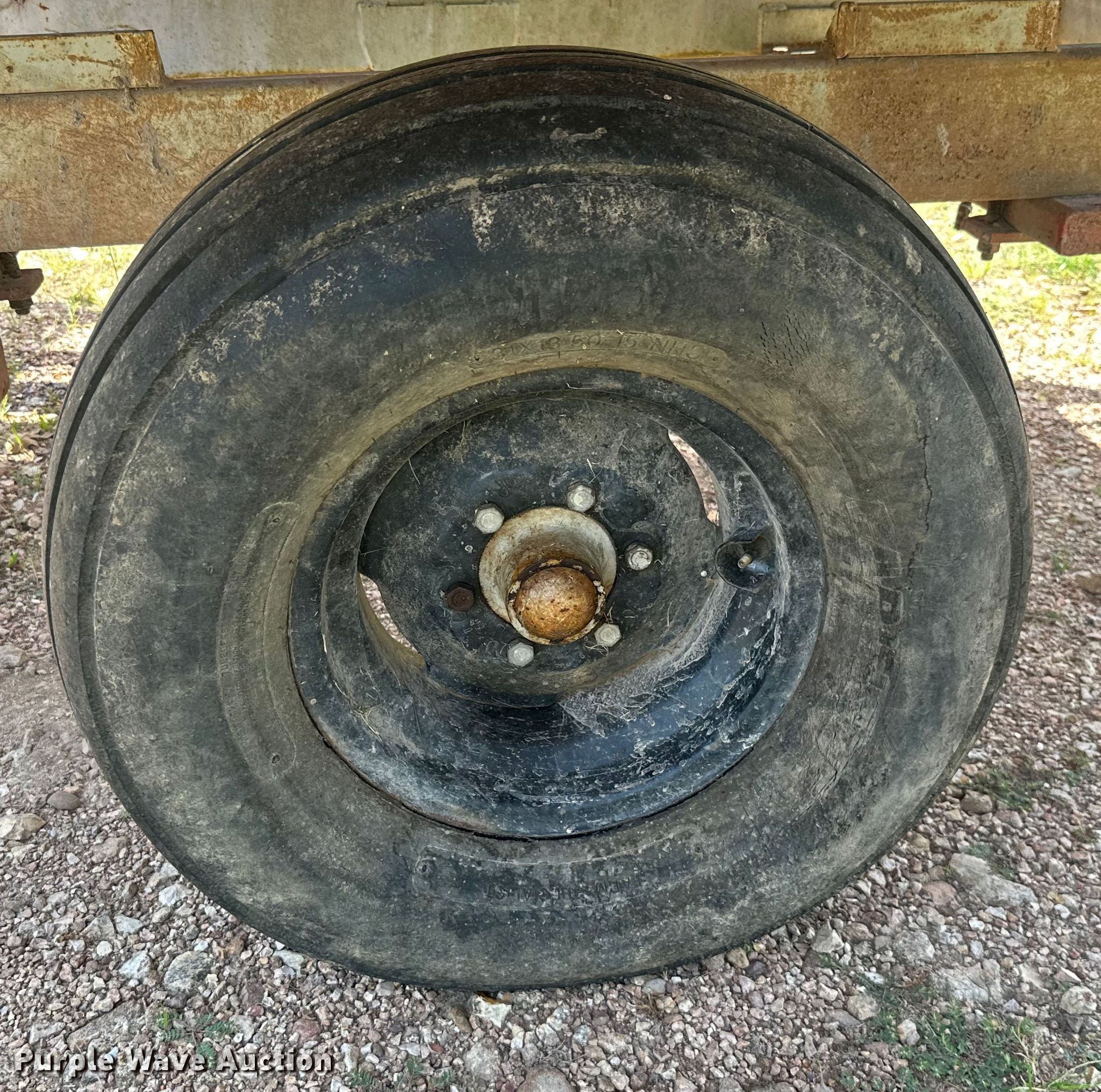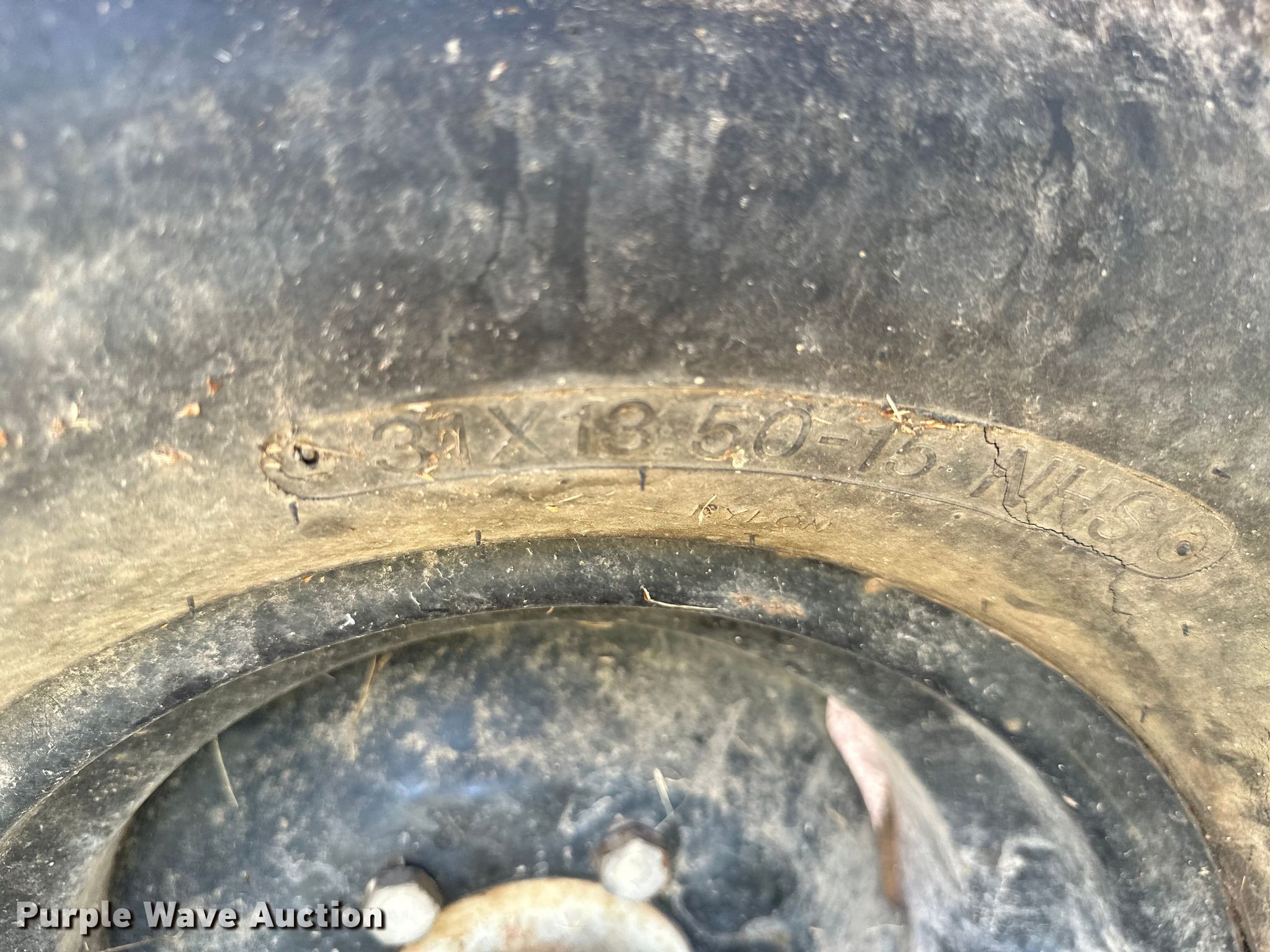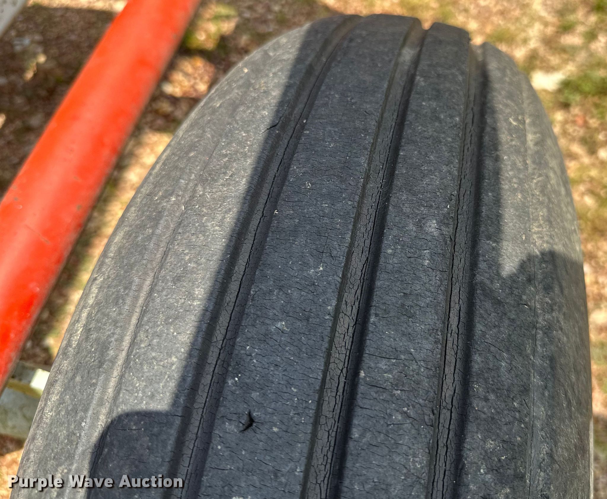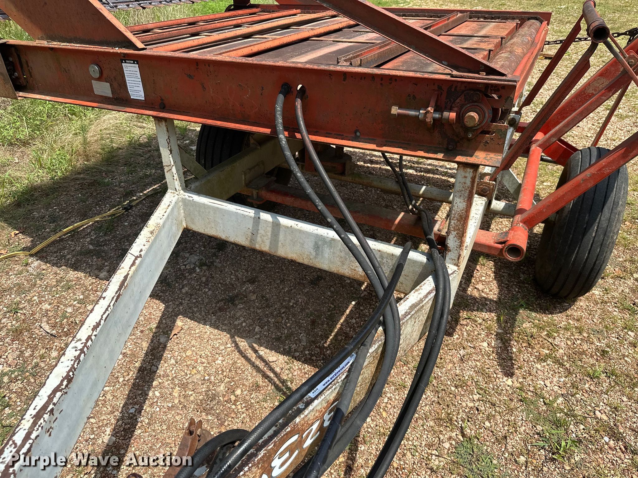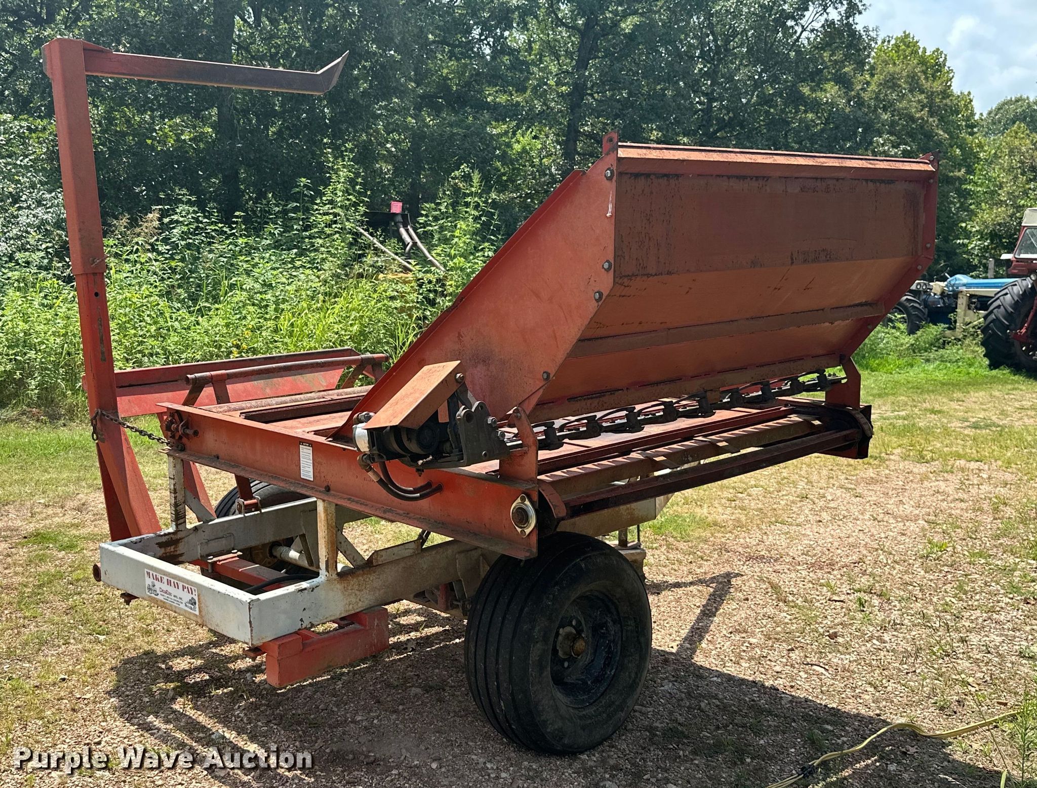 DewEze Super Slicer bale processor. Serial: SS3047. Features Discharge: Side Width: 72". Tires Size: 31x13.50-15. Notes 6' bale capacity. KAP Enterprise. Jay, OK 74346