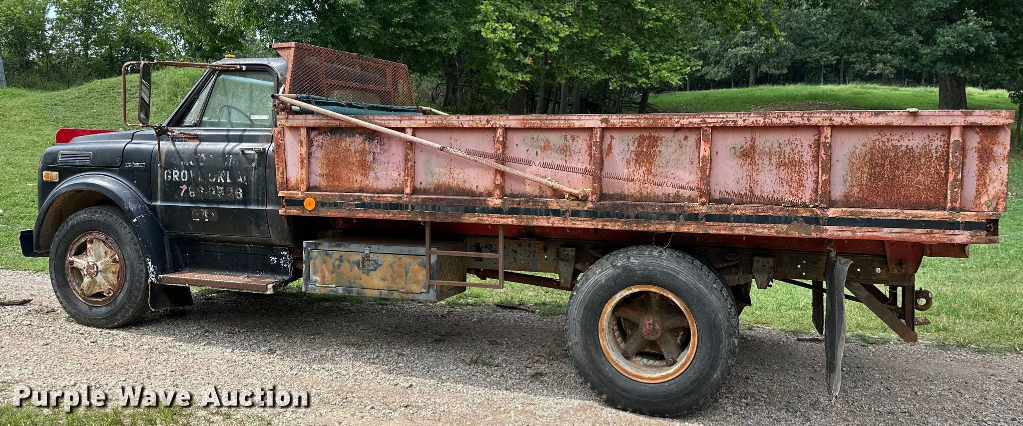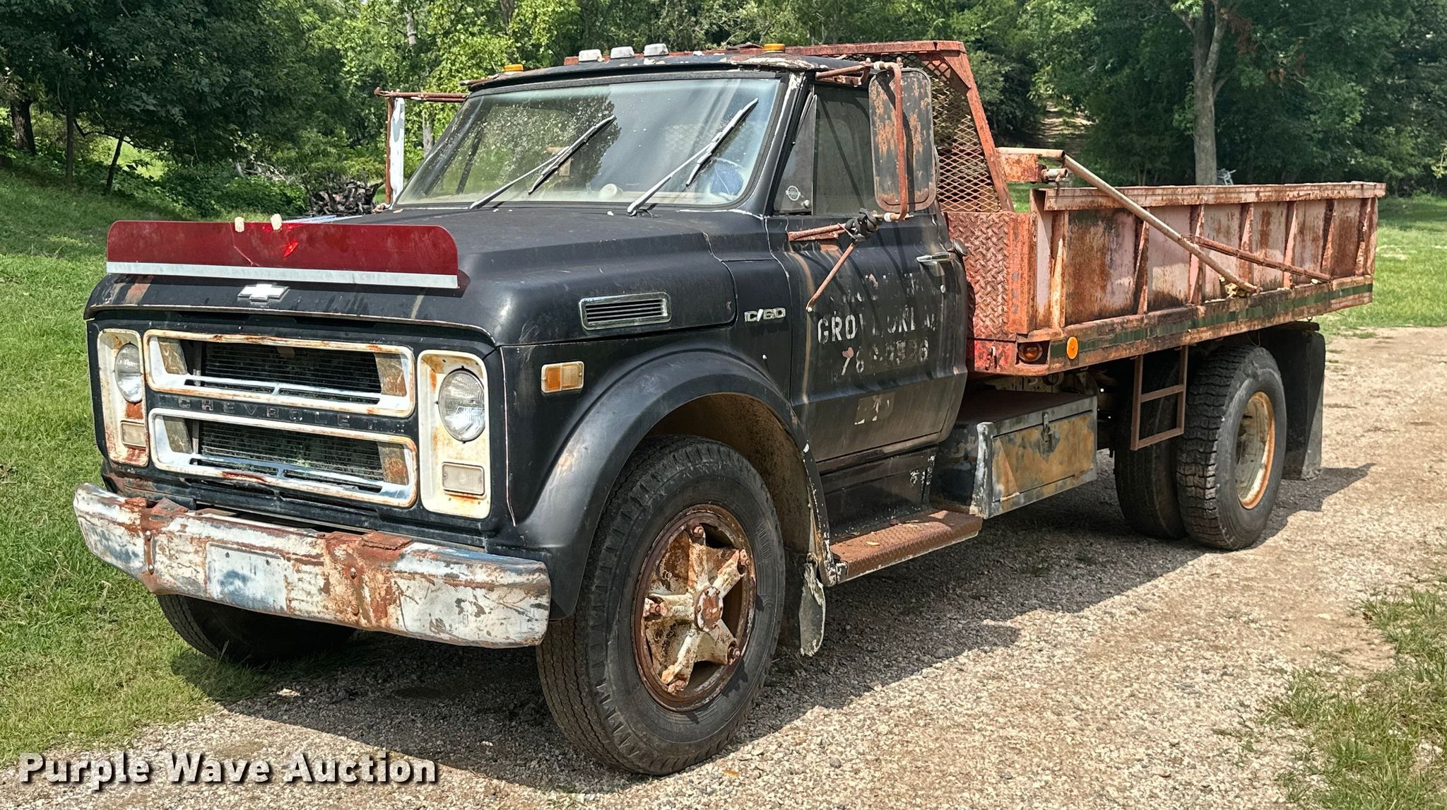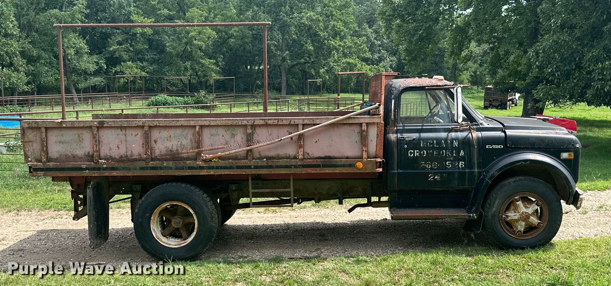 Purple Wave is selling a used Flat Bed Truck in Oklahoma. This item is a 1969 Chevrolet C60 dump flatbed truck with the following: Miles: 5,895 on odometer, VIN: CE639P873375
