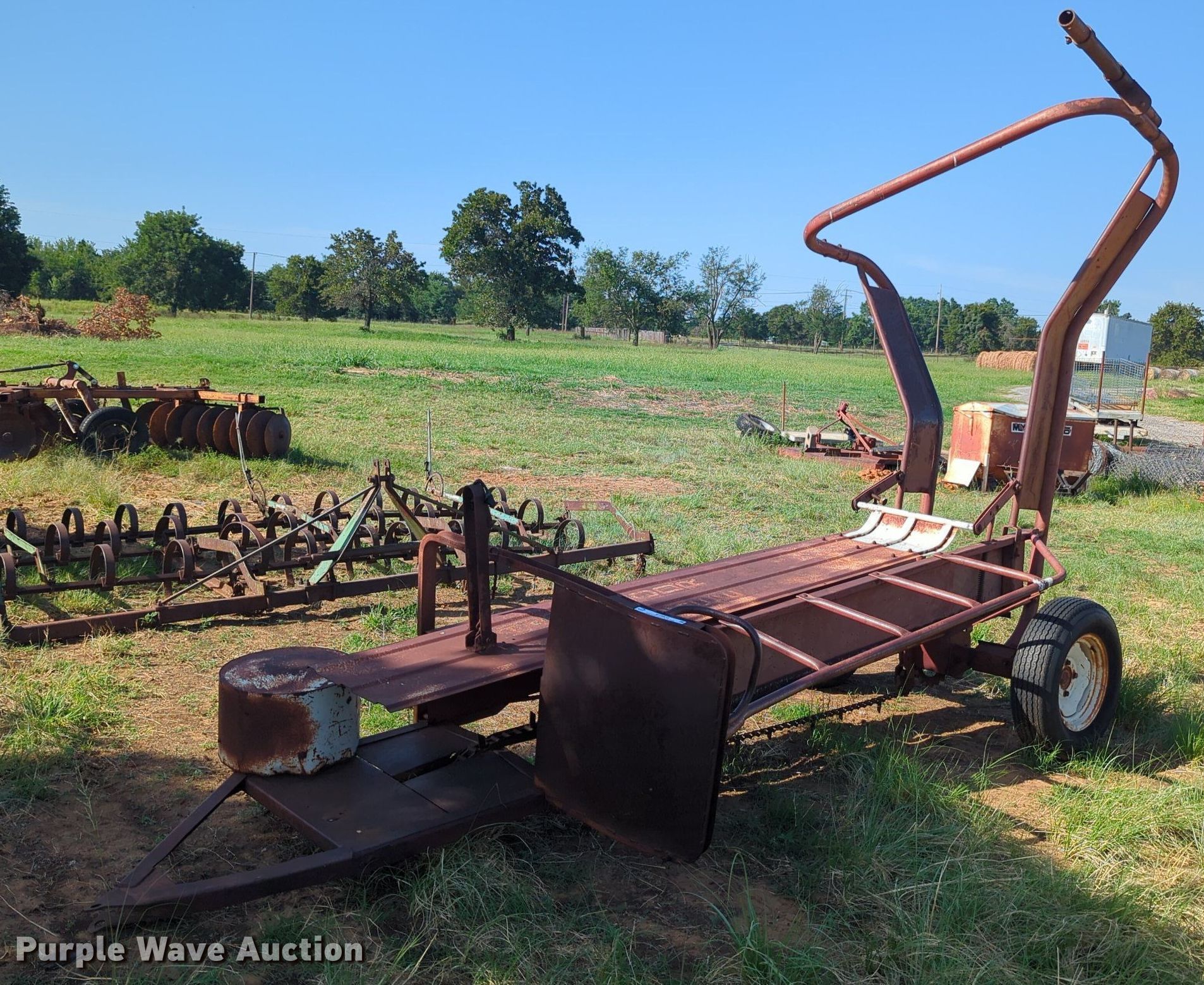 Purple Wave is selling a used Hay Handling in Oklahoma. This item is a Cherokee pop-up bale loader with the following: Chain driven