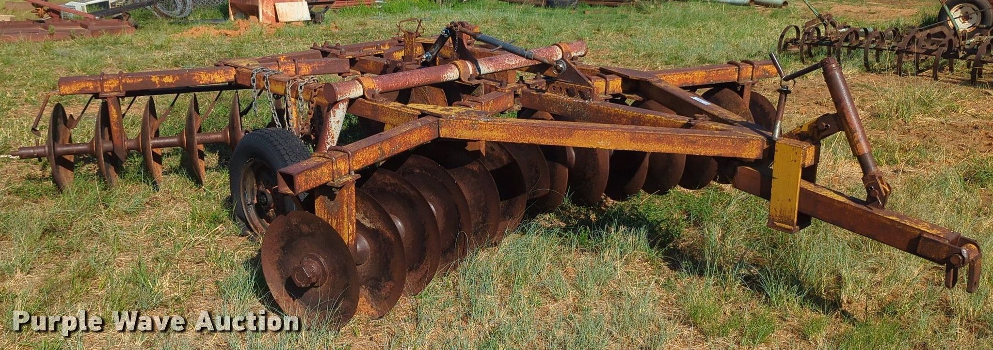 Purple Wave is selling a used Disk in Oklahoma. This item is a Schafer 709 tandem disk with the following: Overall width: 10'