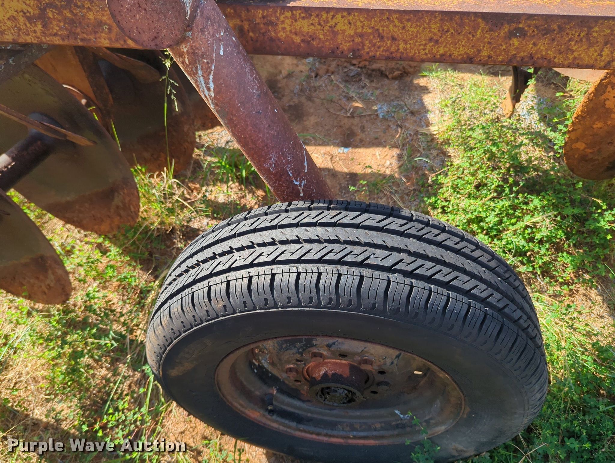 Schafer 709 tandem disk. Overall width: 10'. Features Front blades Diameter: 20", Spacing: 9", Rear blades Diameter: 20", Spacing: 9", Disk scrapers, Operation Hydraulic lift. Tires Tire size: 195.70R14. Spencer, OK 73084
