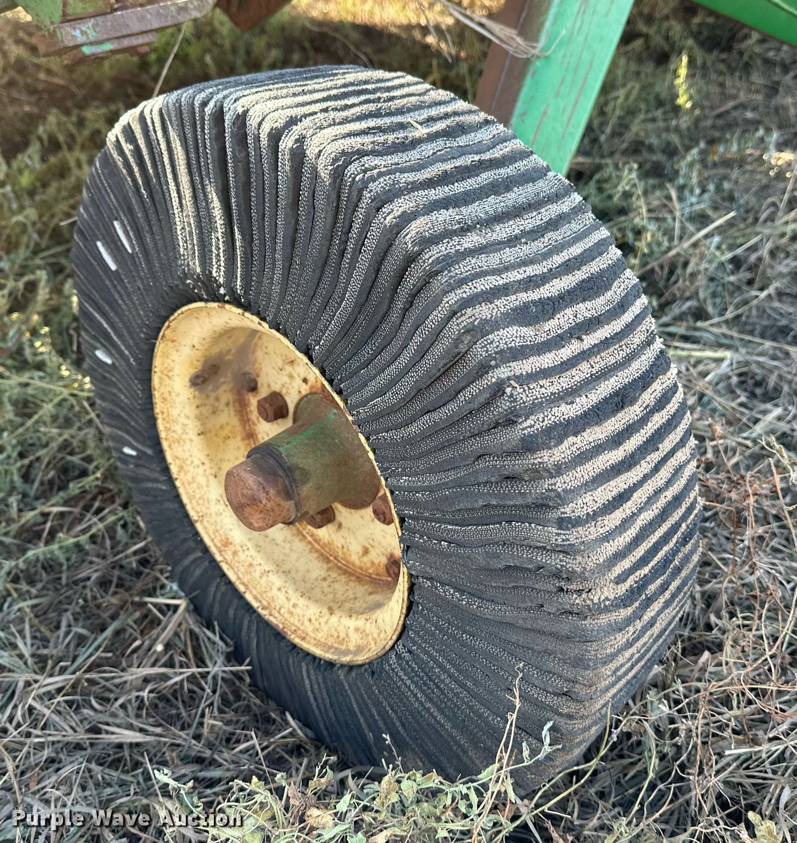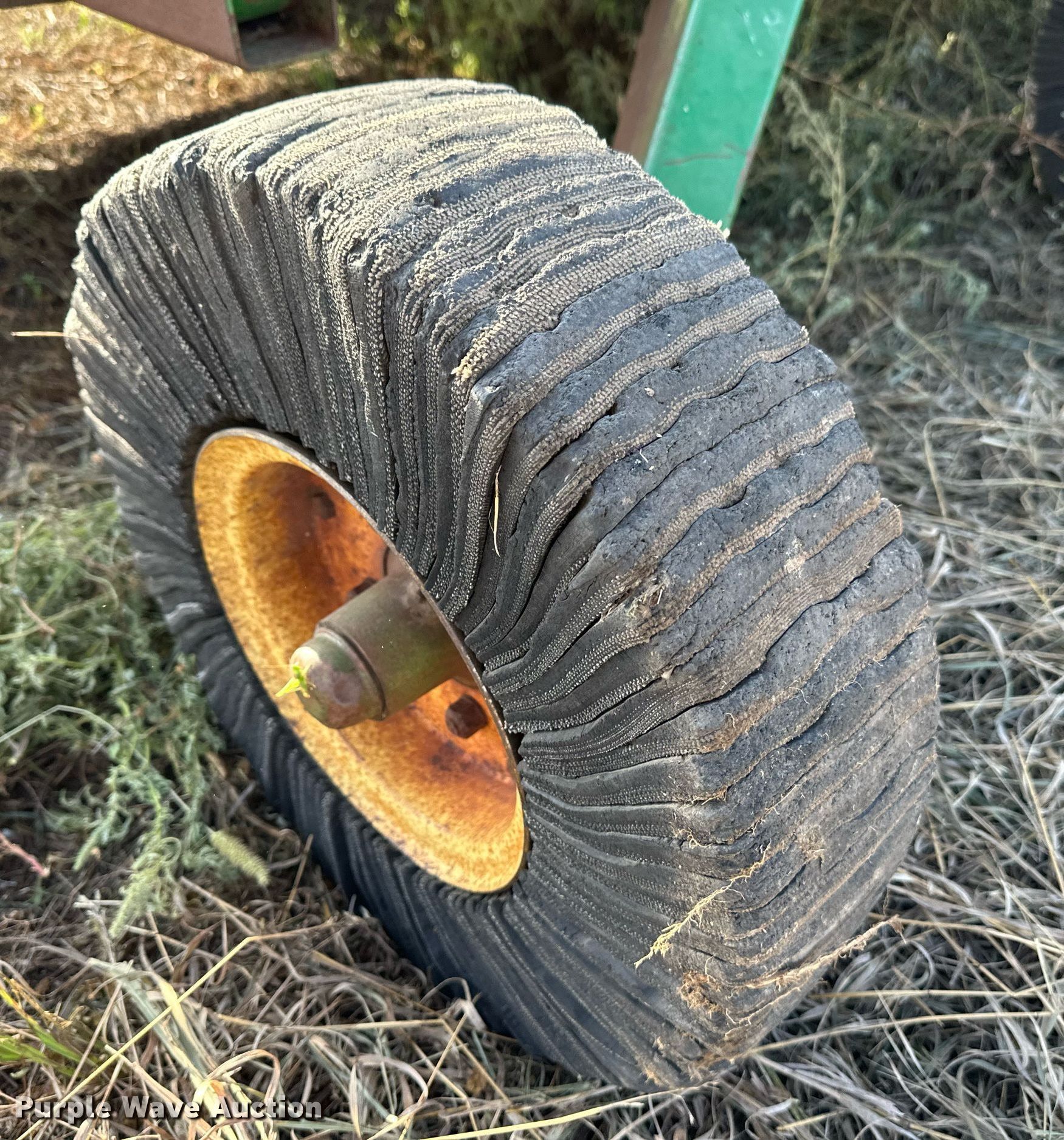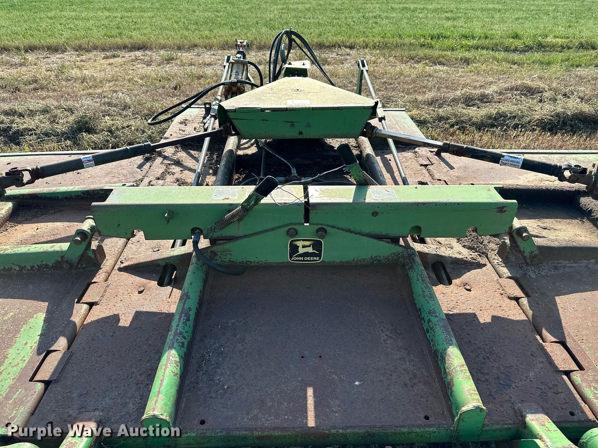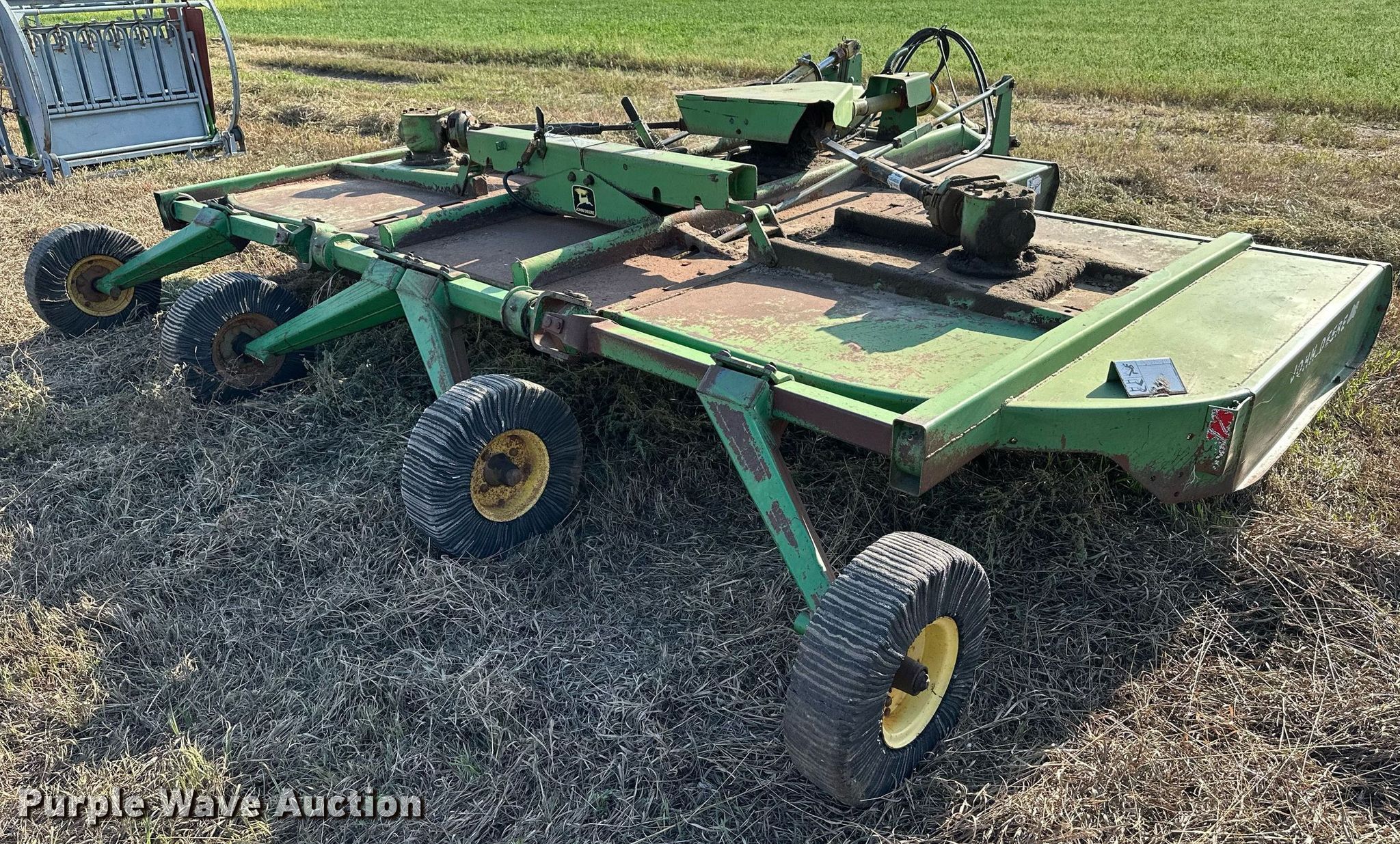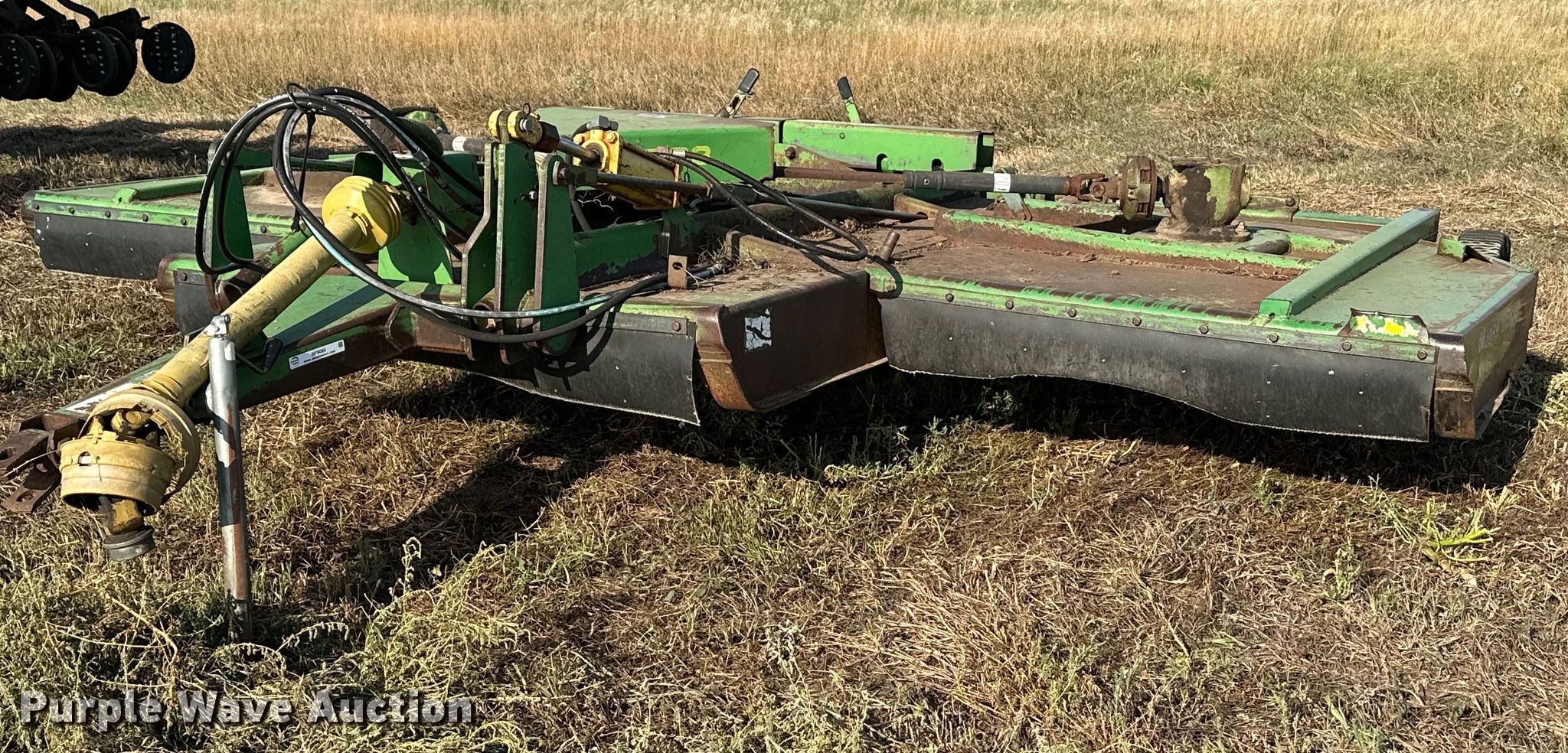 John Deere 1508 rotary mower. Serial: W01508F027486. Features Width: 15', Hydraulic lift, Hydraulic fold, PTO: 1000. Tires Solid. Geneseo, KS 67444