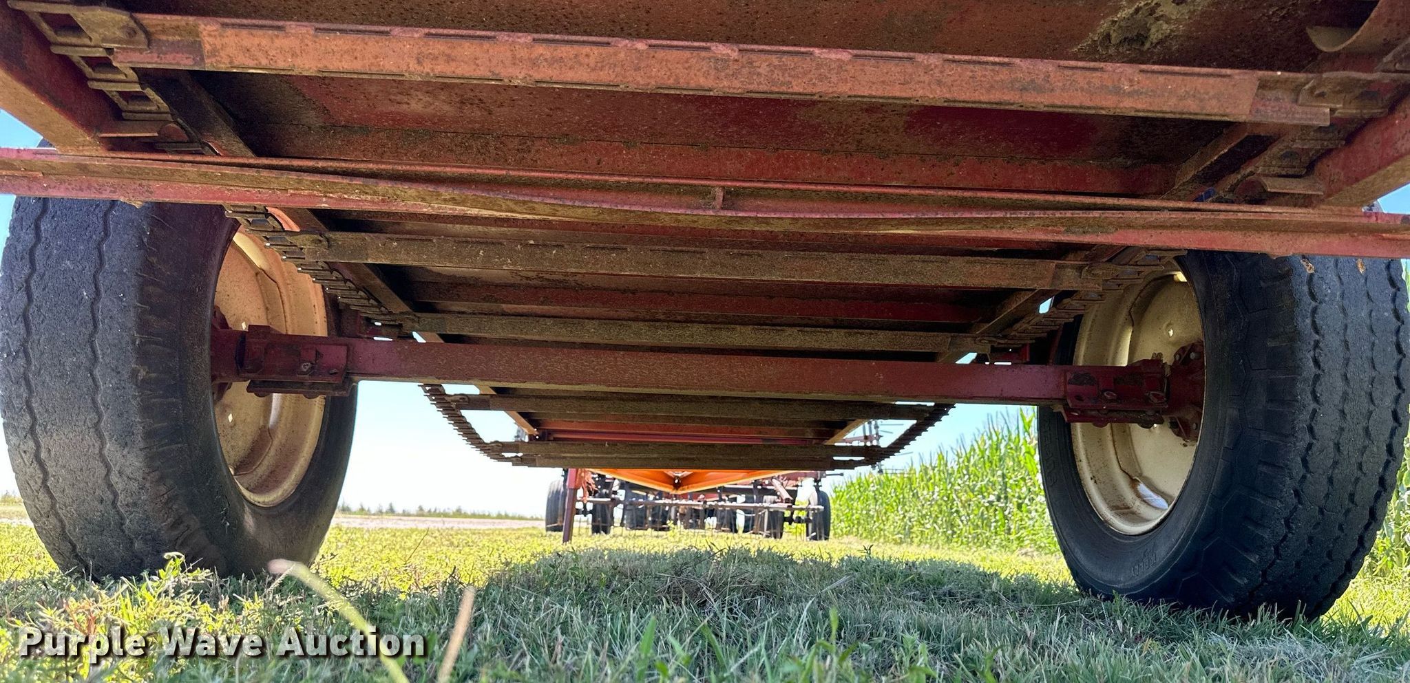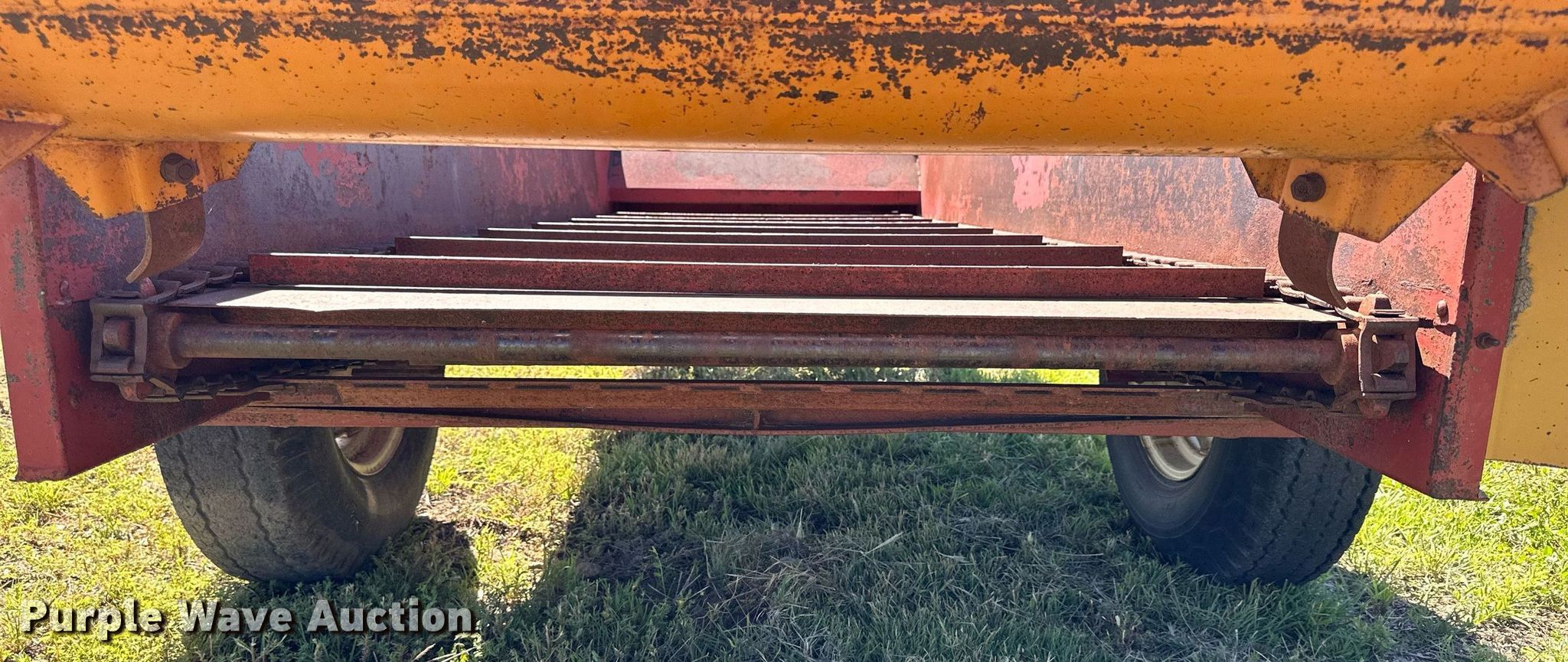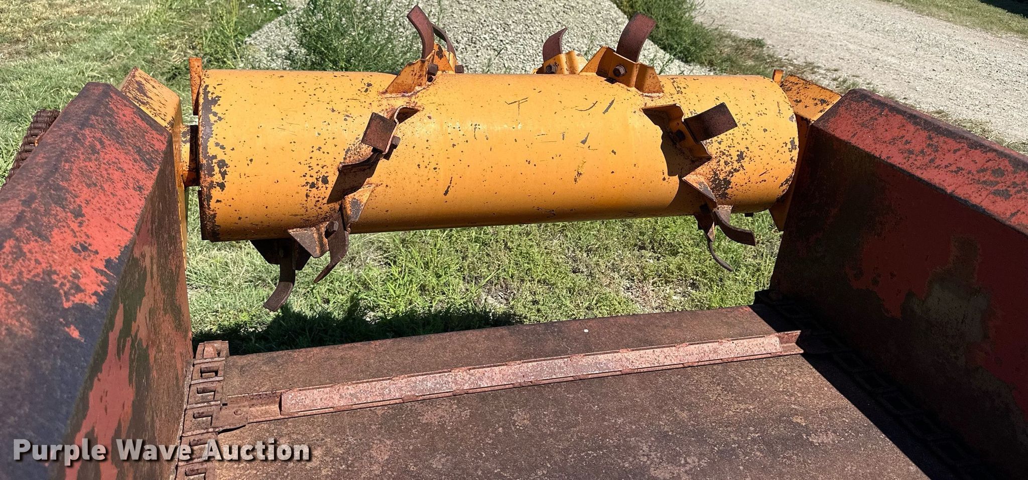 Kelly-Ryan manure spreader. Serial: 5455. Features 13' L x 77" W, Side height: 22", Chain driven floor, Rear beaters: Horizontal Quantity: 1, PTO: 540. Tires Size: 9.00-20. 9700 J Road. Norton, KS 67654