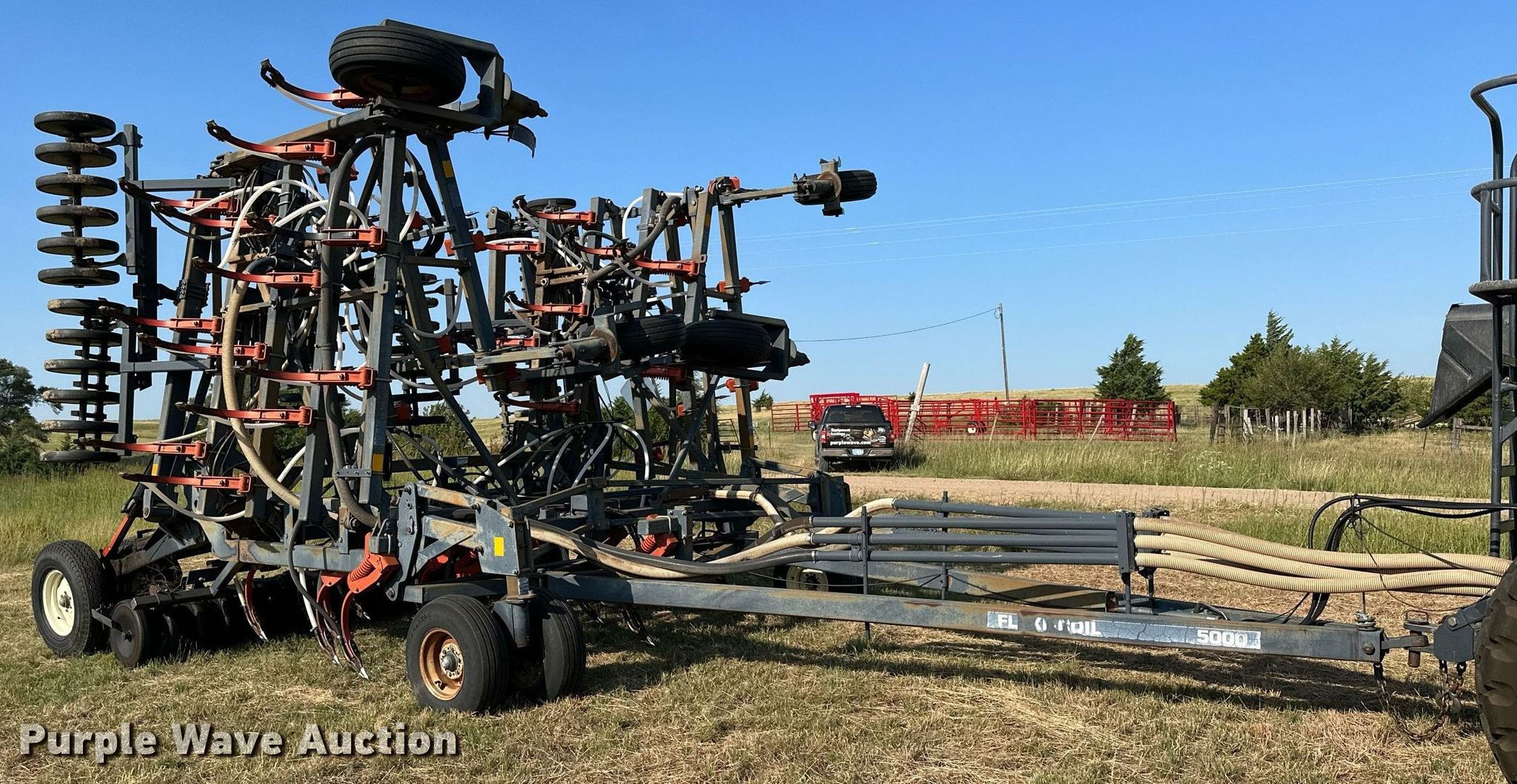 Purple Wave is selling a used Air Seeder in Kansas. This item is a Flex-coil 5000 air seeder with the following: Width: 45', Row units: 60, Row spacing: 9", Serial: S071974