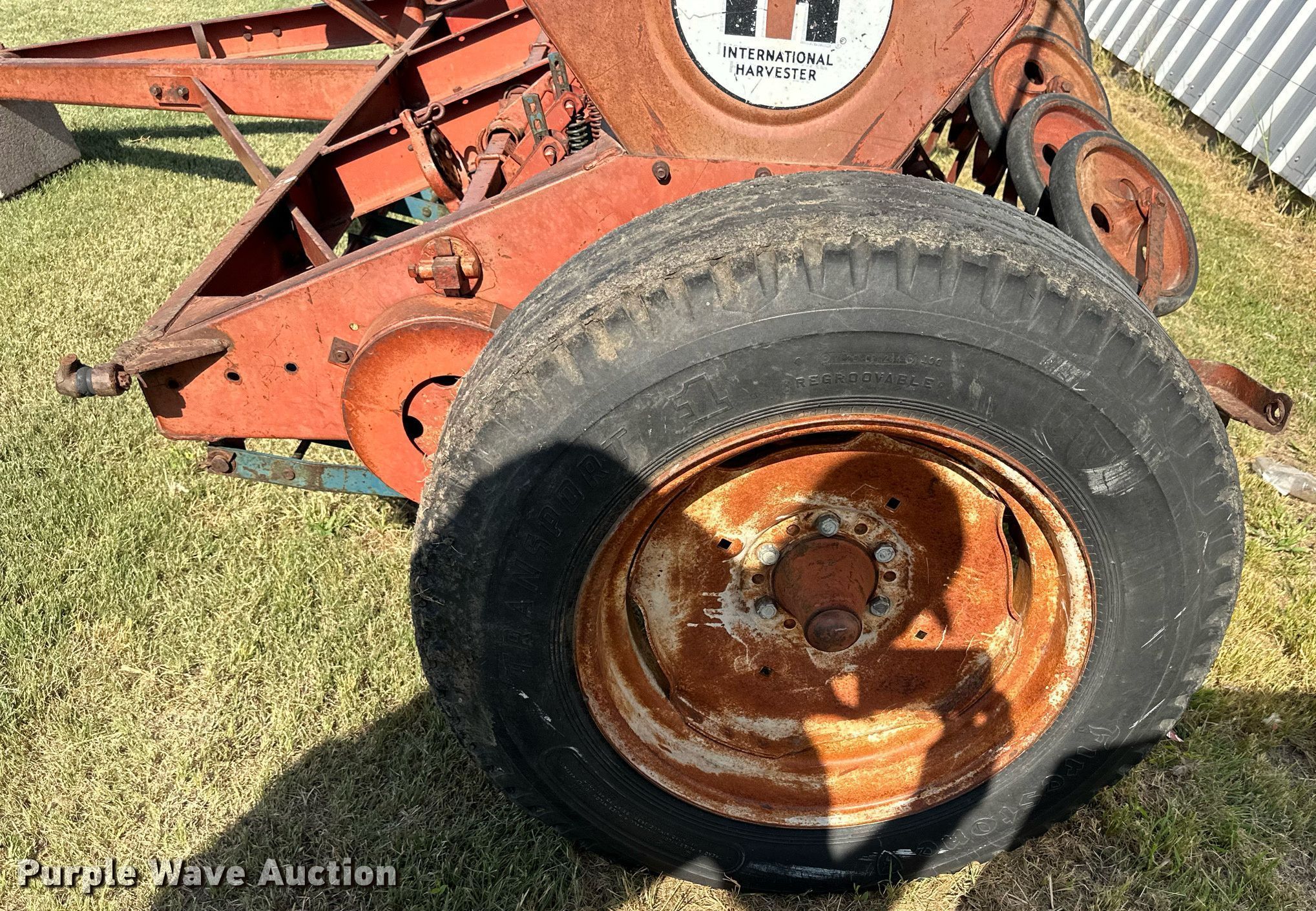 McCormick grain drill. Width: 14', Row units: 16, Row spacing: 11". Features Seed delivery Bulk fill system, Row units Meter drive: Ground, Down pressure: Spring, Row cleaners, Disk openers: Single , Closing system: Single Type: Rubber.. Tires Drive/ outside tire size: 7.50-20. 670 Northwest 60 Avenue. Olmitz, KS 67564