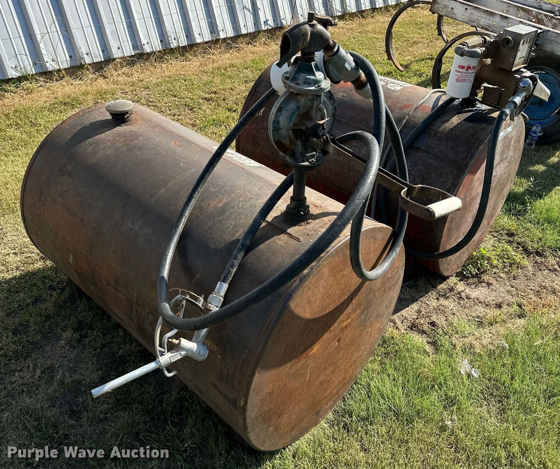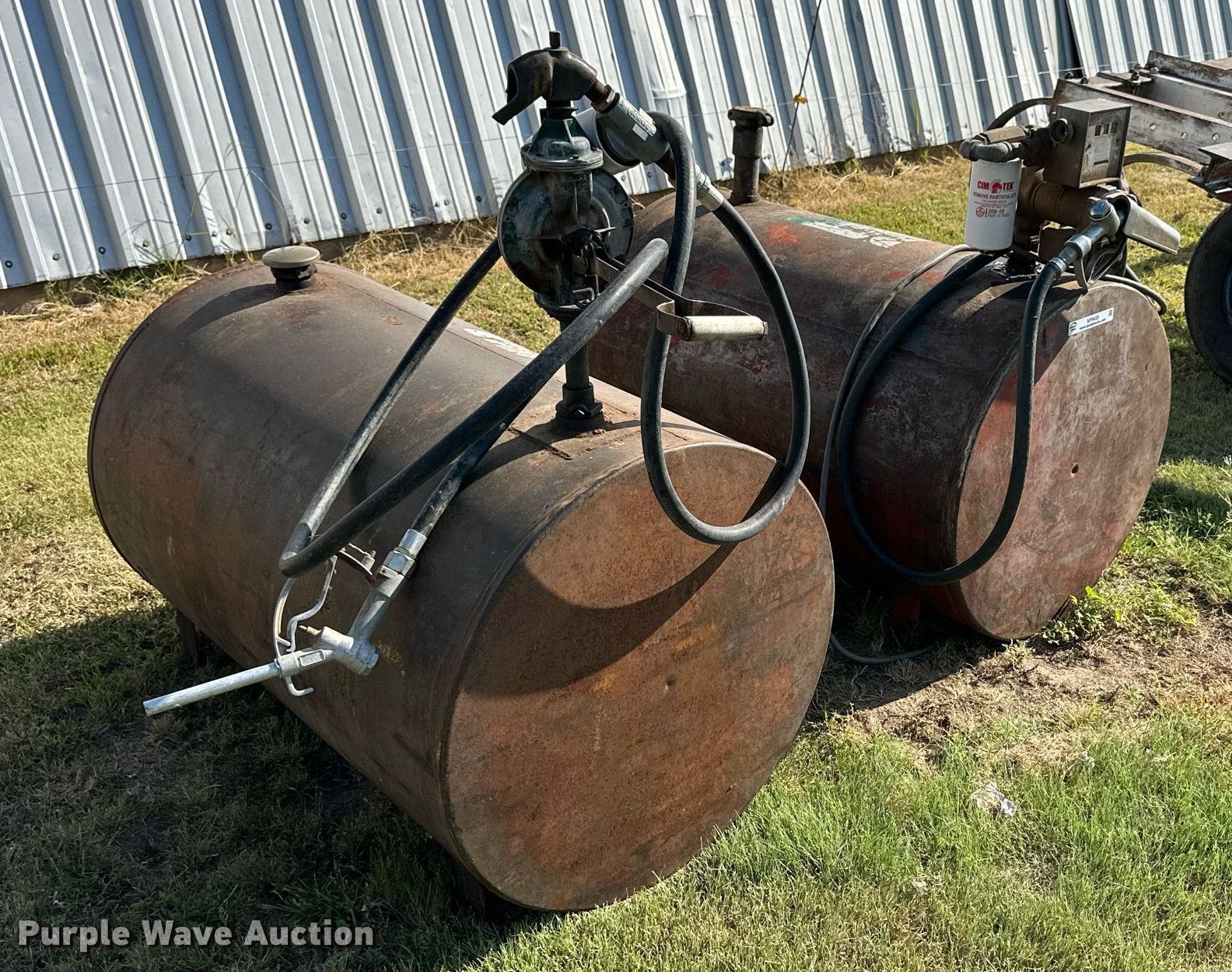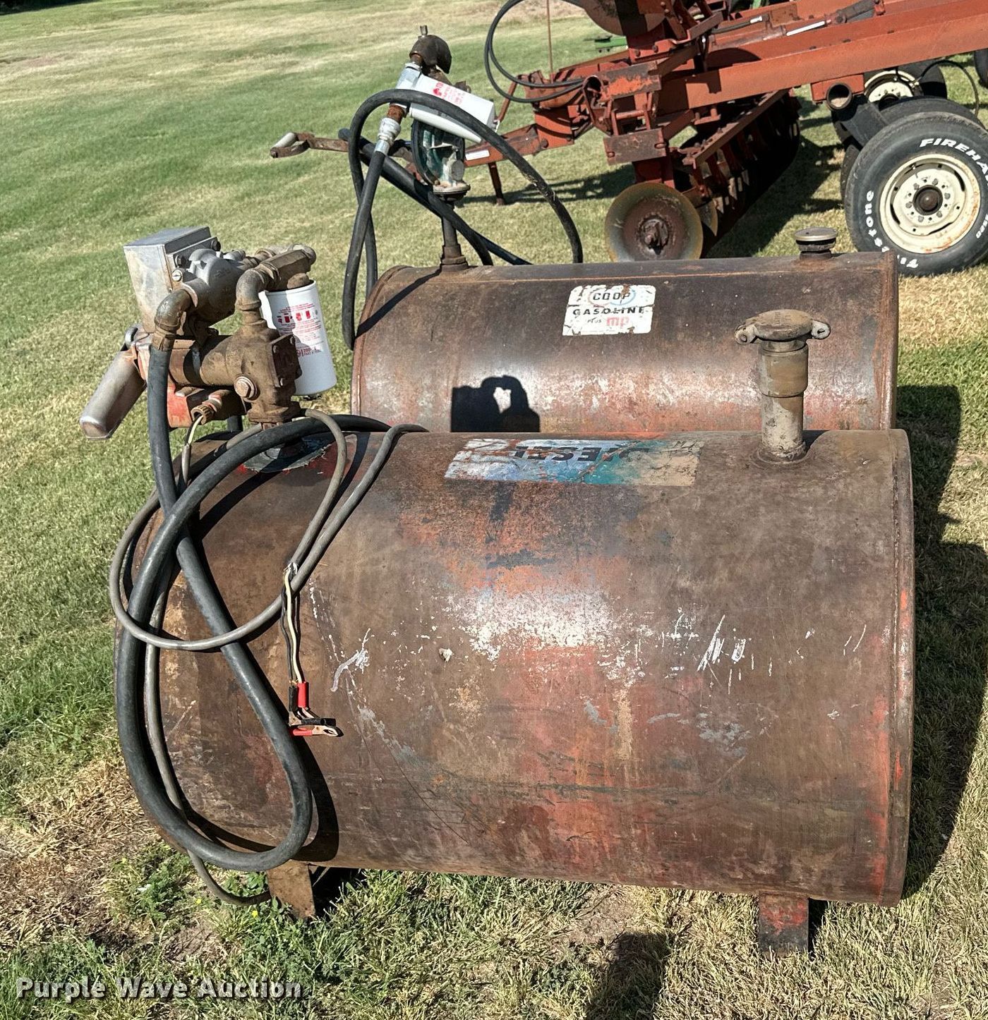(2) Fuel tanks. 4' diesel Tuthill electric pump, 4' gas Lever pump. 670 Northwest 60 Avenue. Olmitz, KS 67564