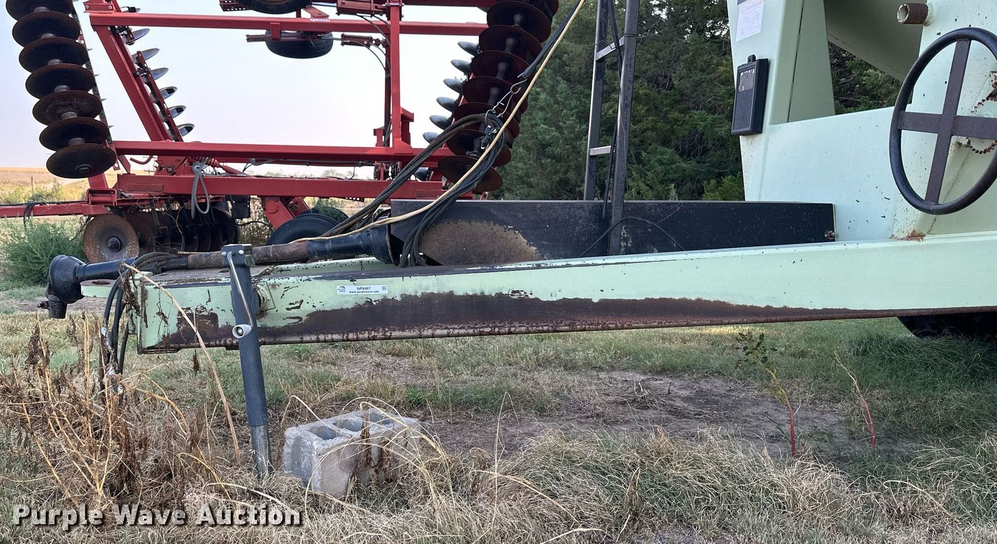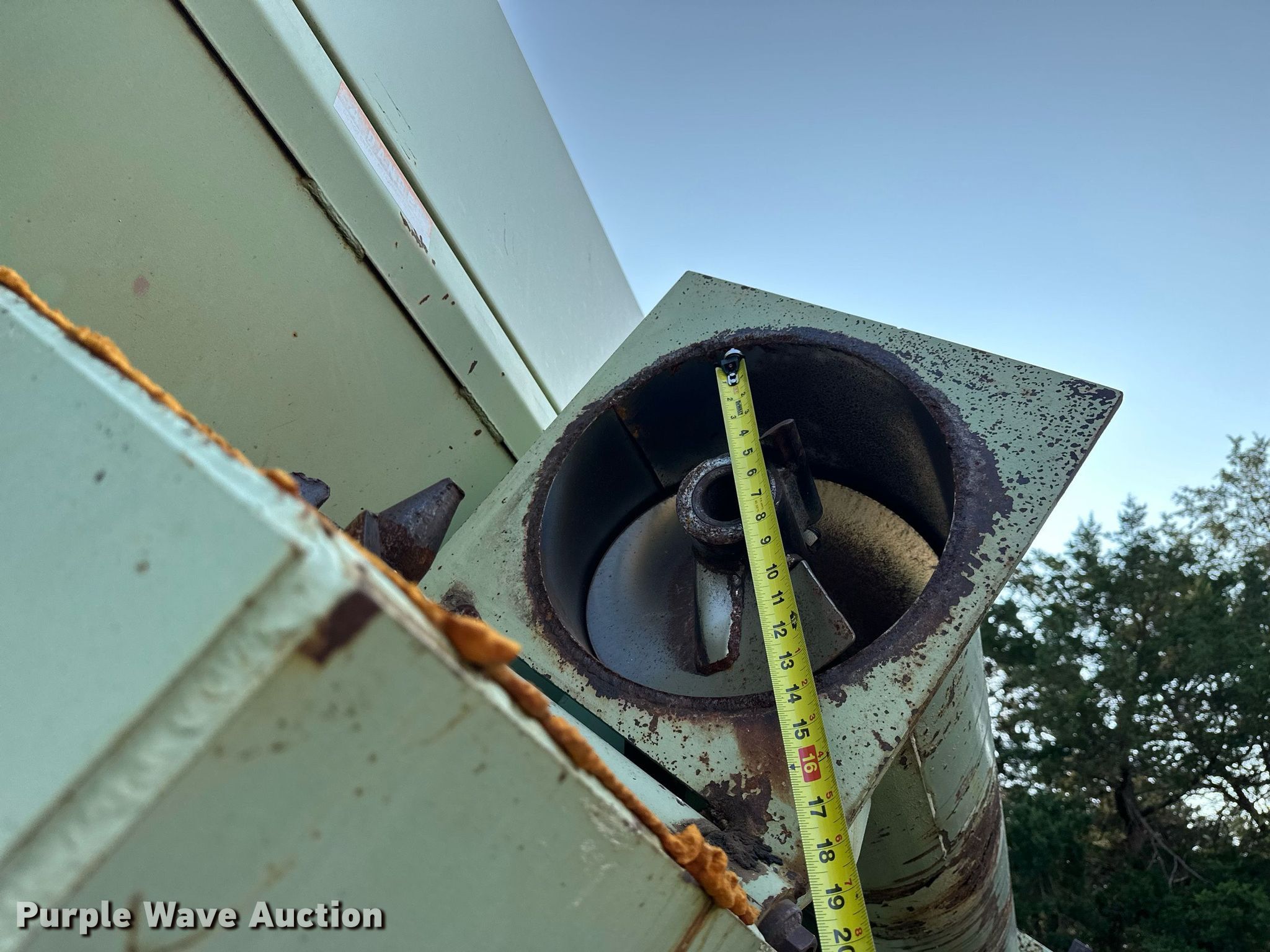 Orthman 608-00 grain cart. Serial: 2689-6. Features Capacity: 600 bushels, Auger diameter: 14", Shut-off gate: Manual, Sight glass, PTO: 1 3/4" 1000. Tires Size: 24.5-32. 3040 CR 64. Park, KS 67751